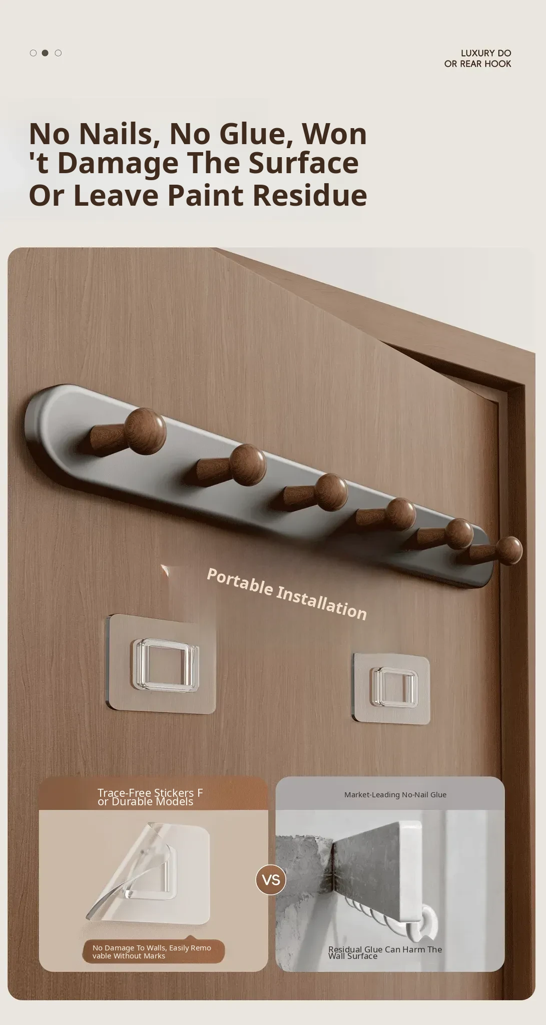 ❤️Walnut 7-Hook Rack [No Drilling/Door-Friendly] - Free if It Falls!