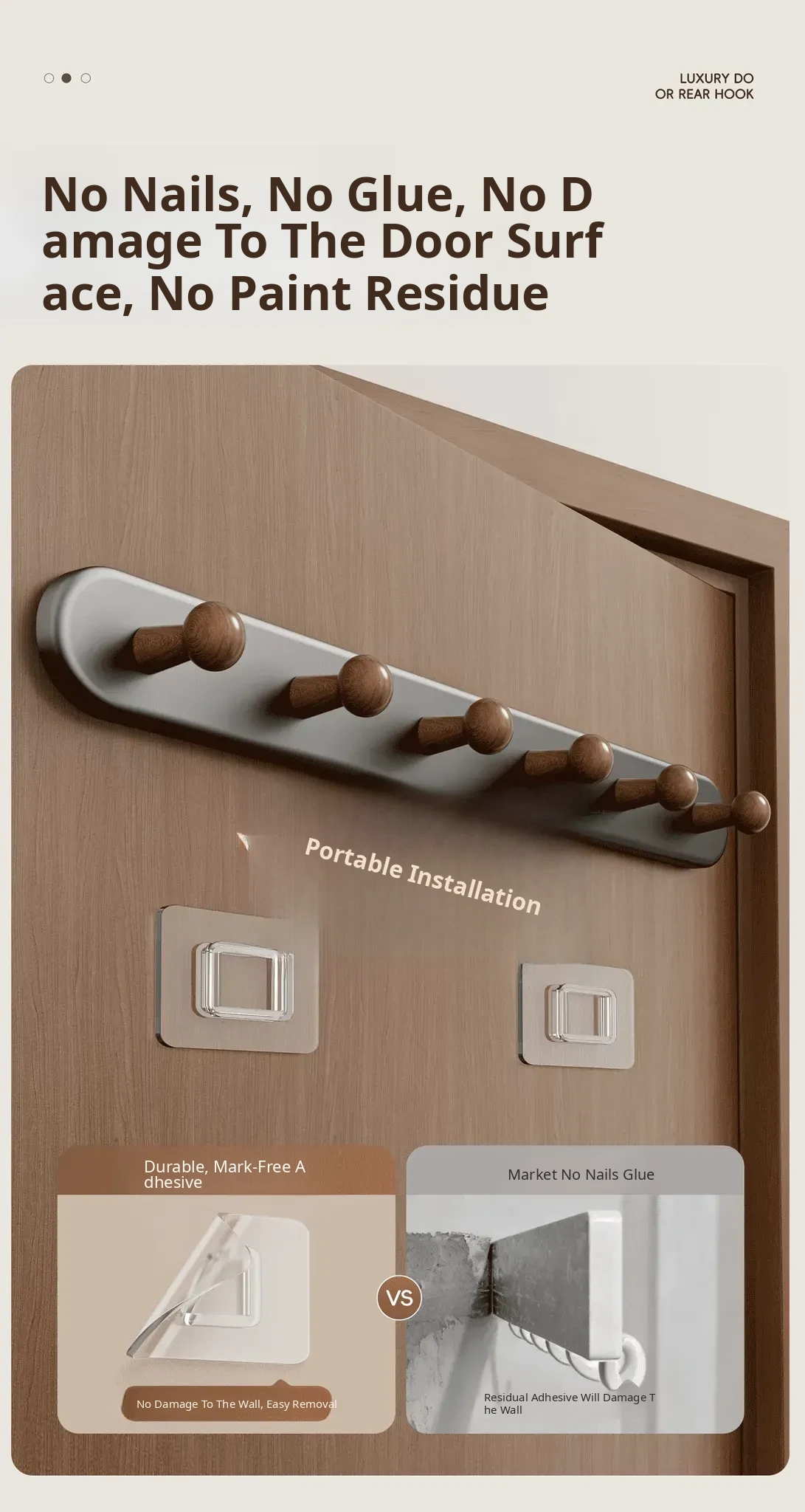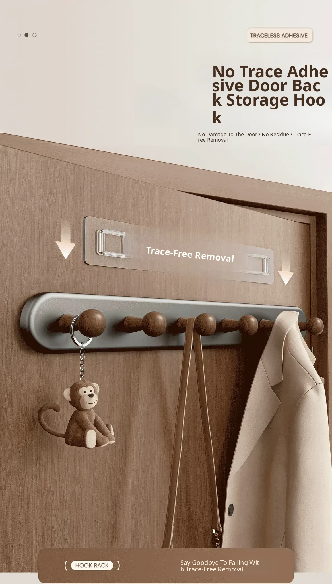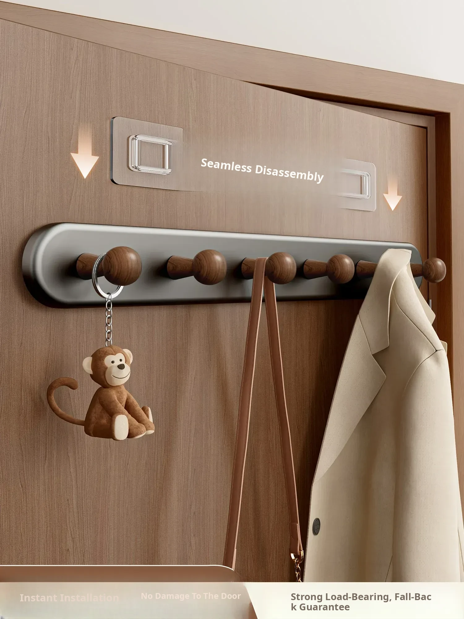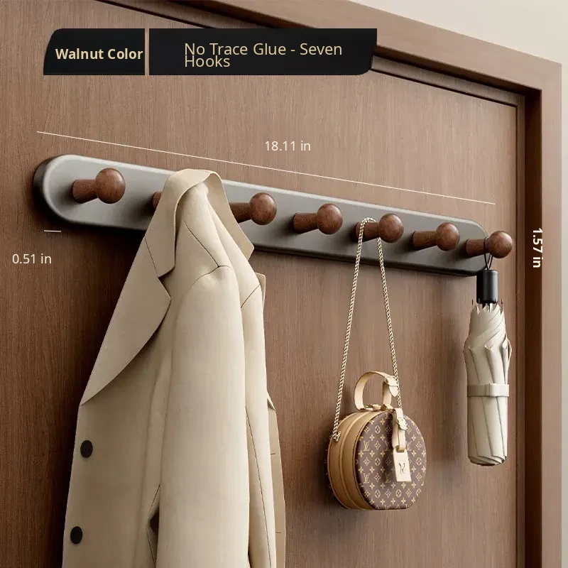 Walnut 7-Hook Rack [No Drilling/Door-Friendly] - Free if It Falls!