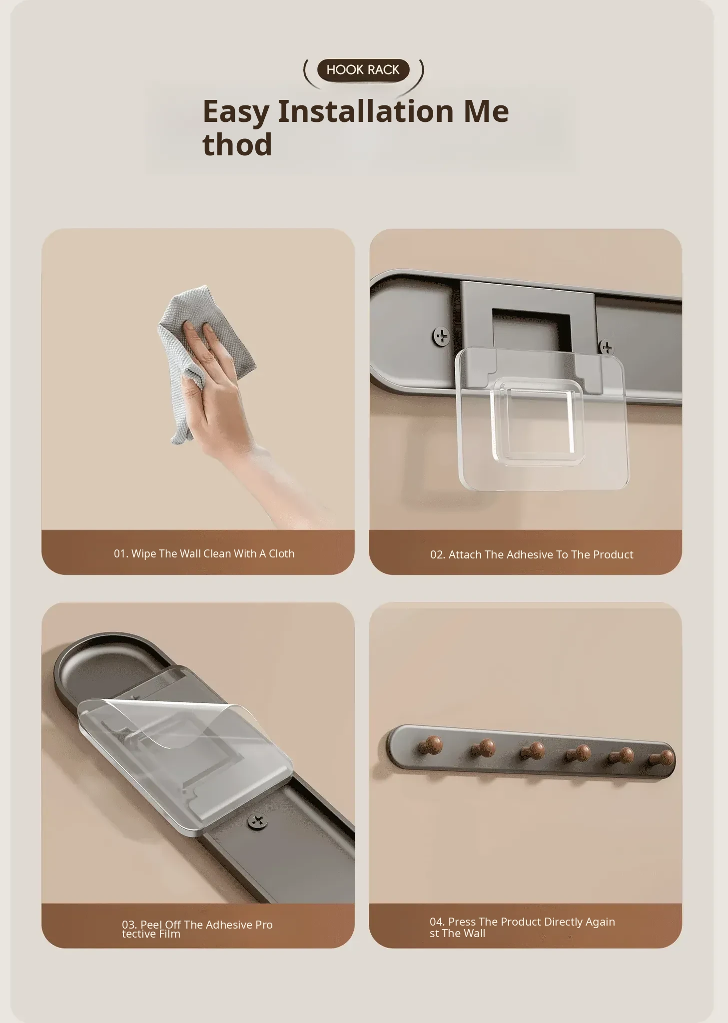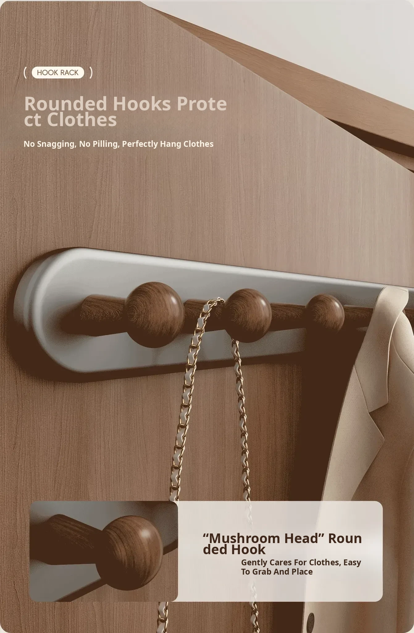 Walnut Color 5-Hook [Heavy-Duty/Long-Lasting] - Free if It Falls!