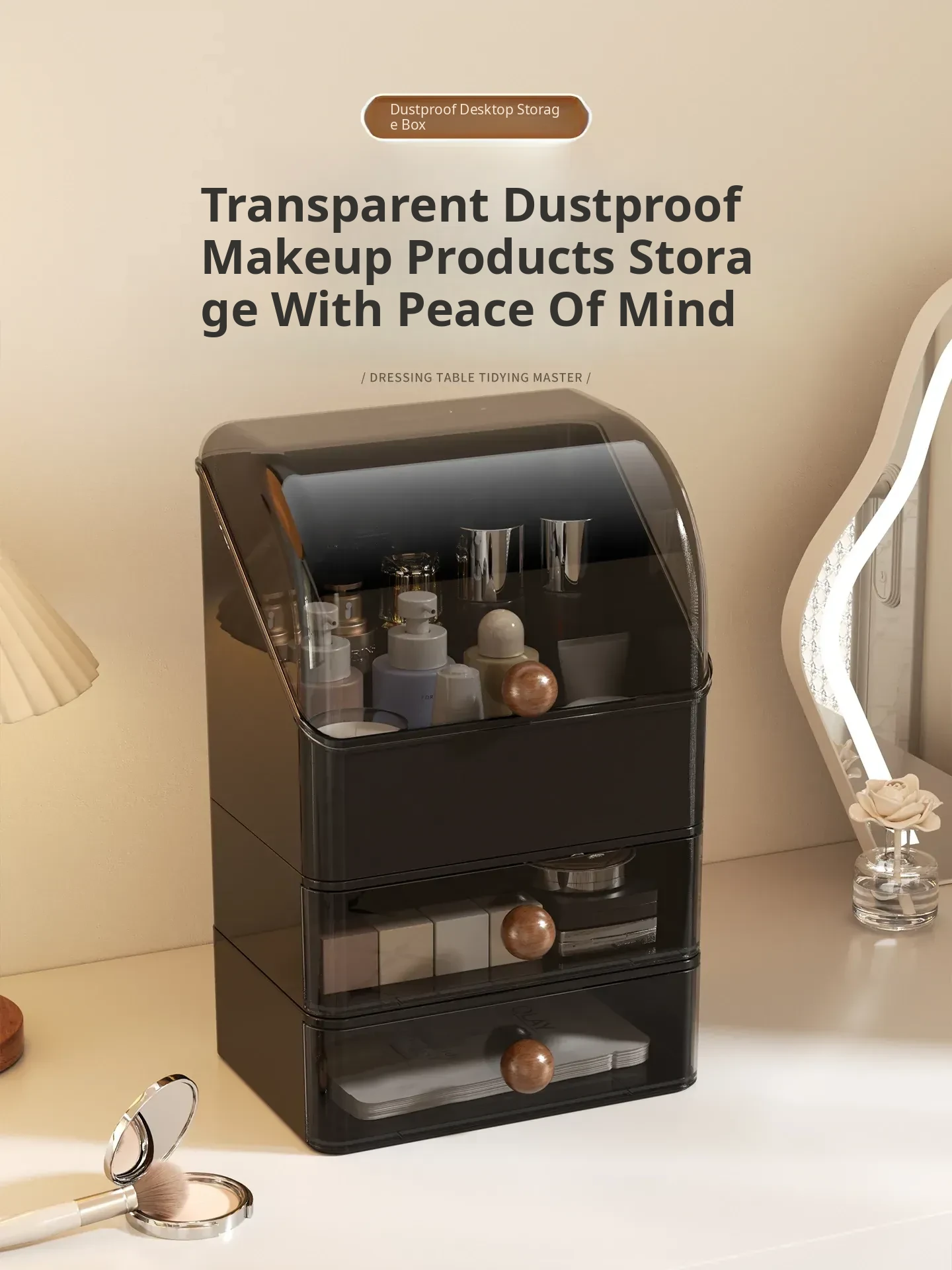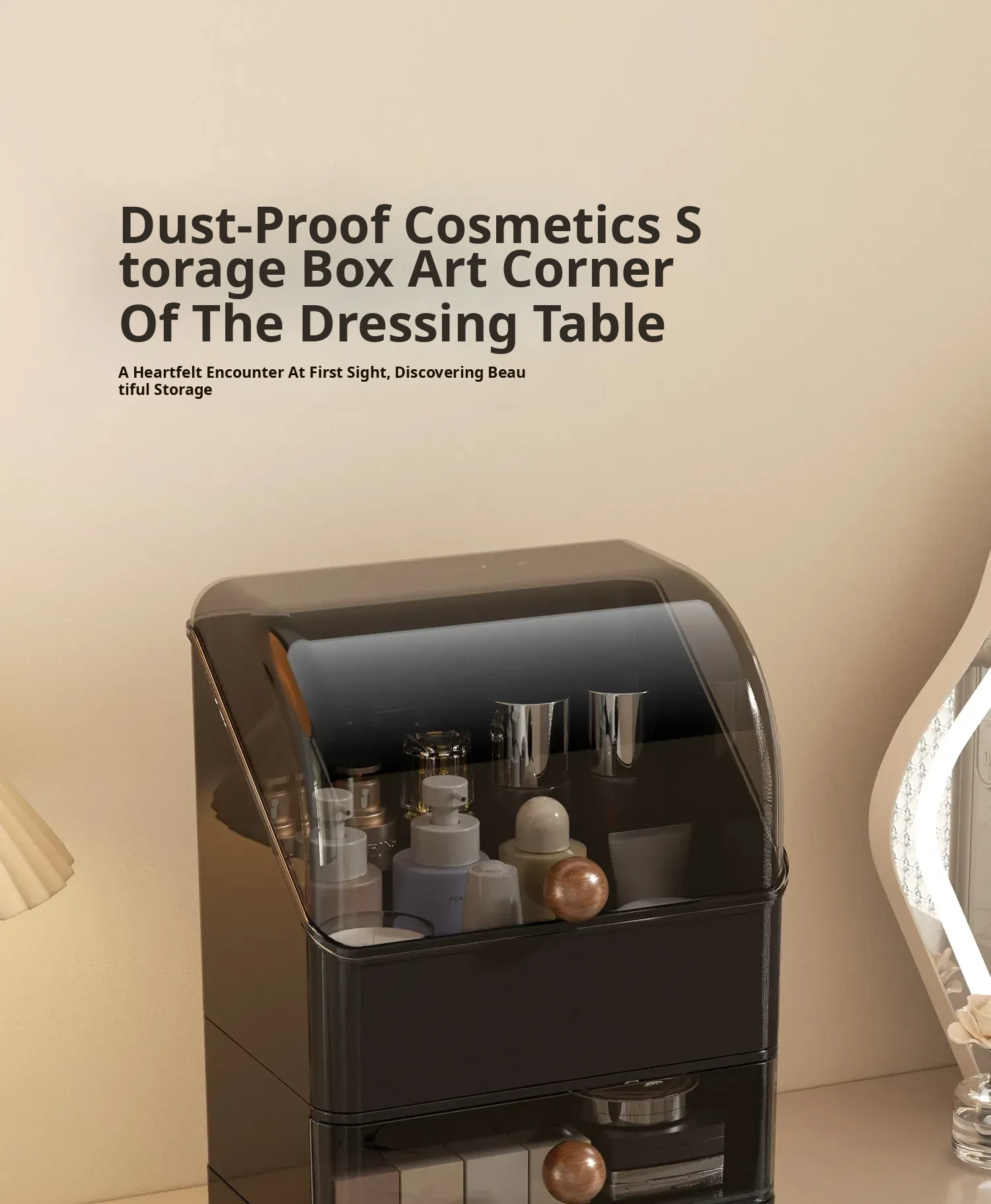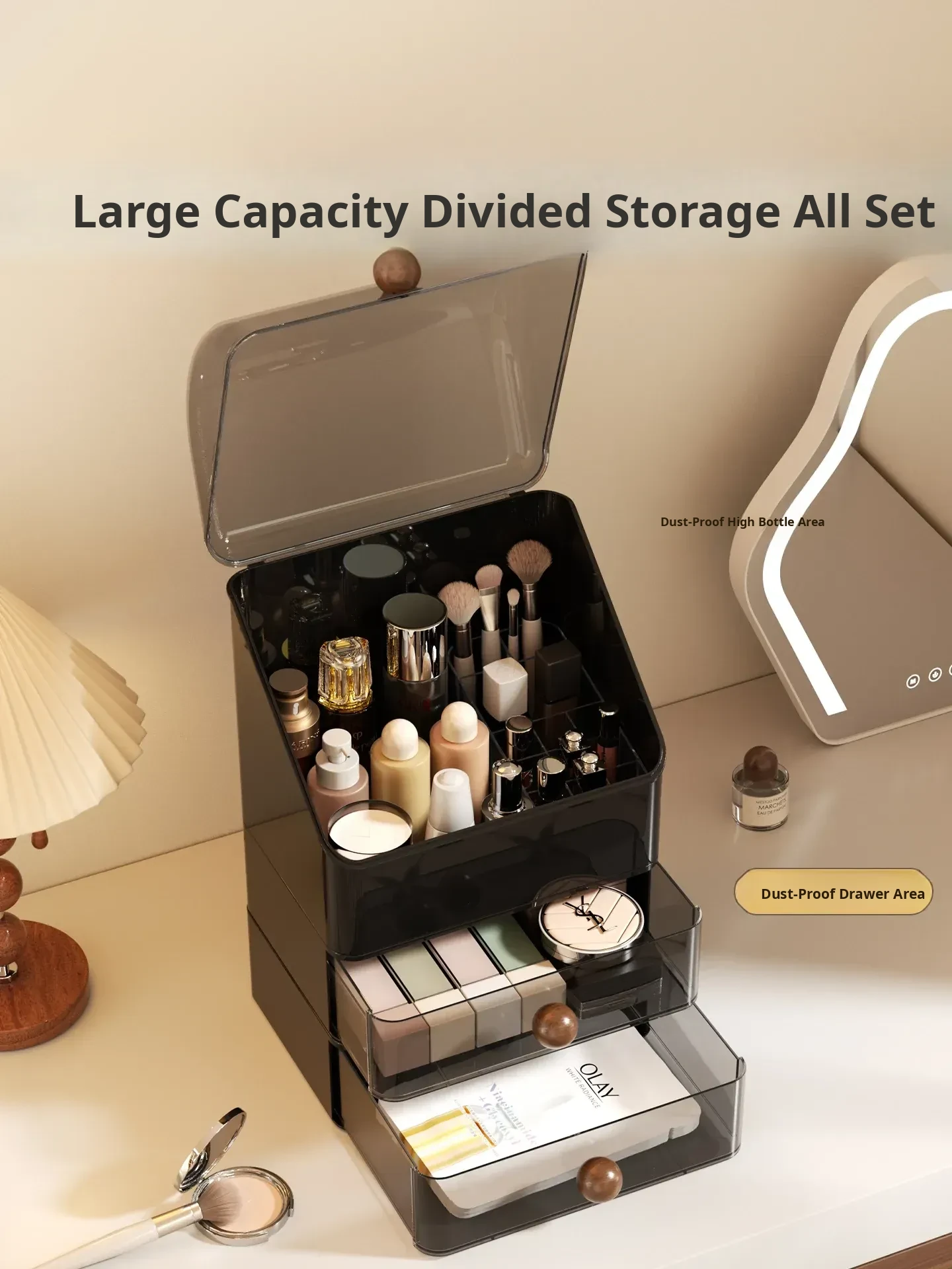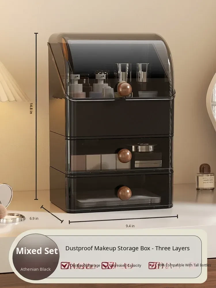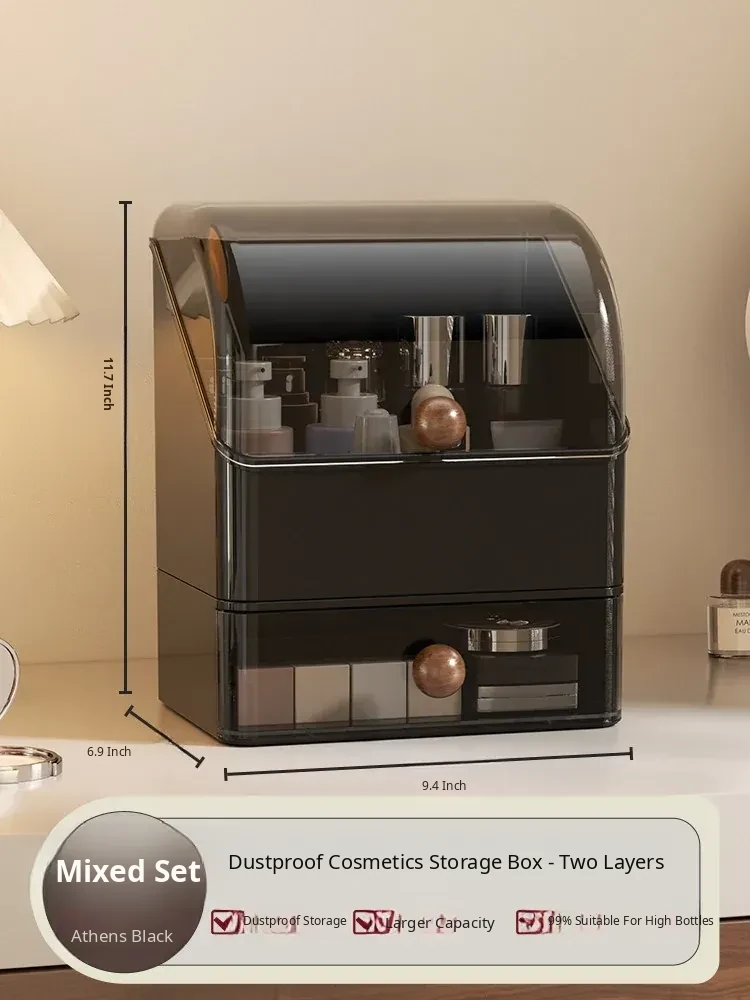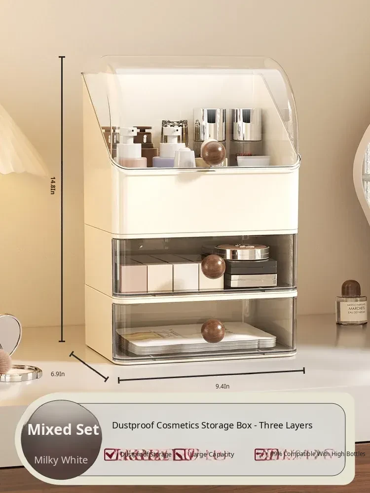 Premium Large Capacity Dustproof Cosmetic Storage Box with Divided Drawers - Elegant Makeup Organizer for Skincare Products and Vanity Essentials