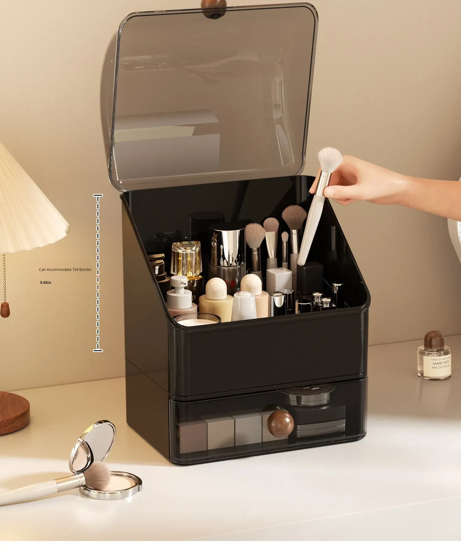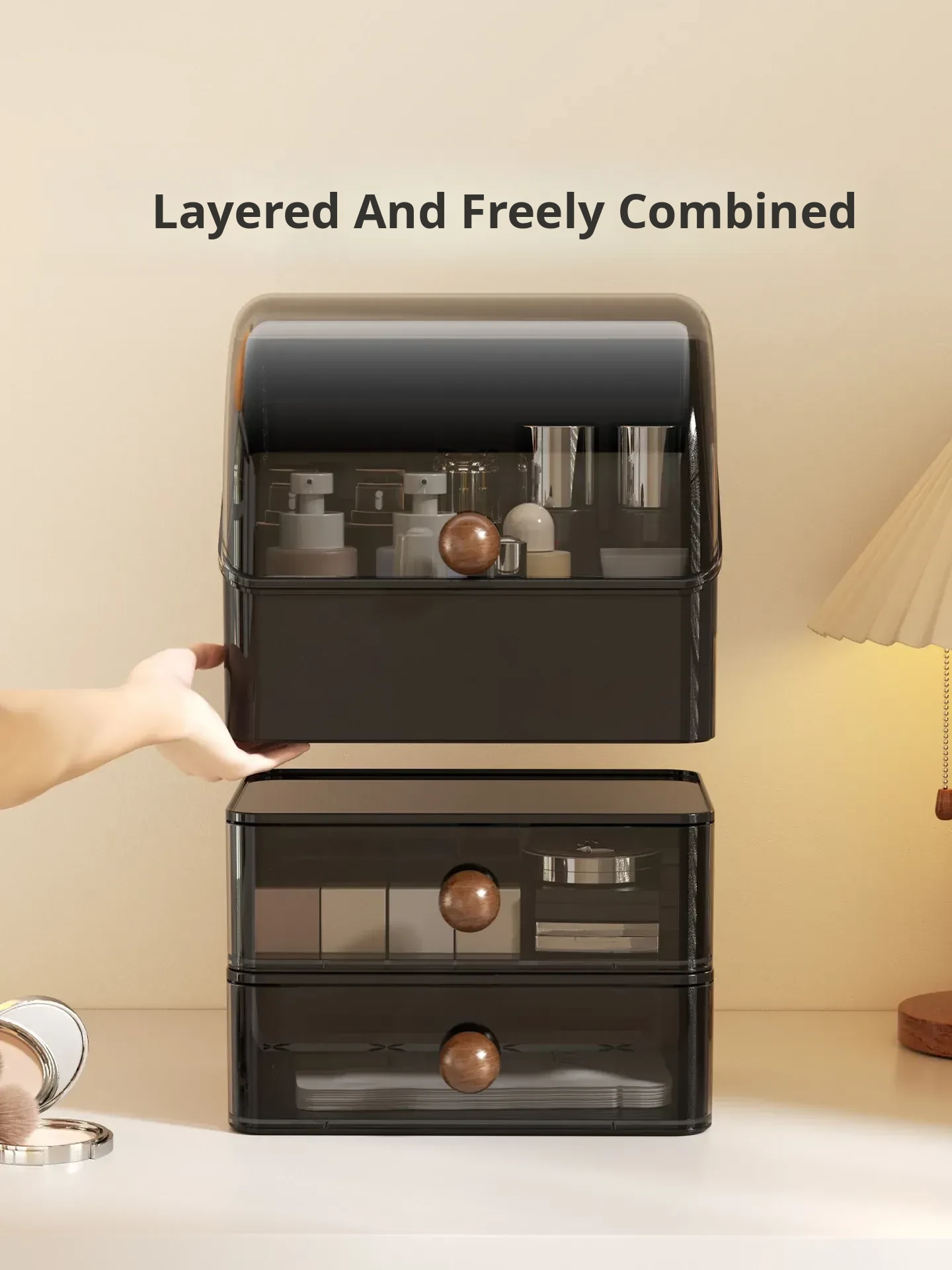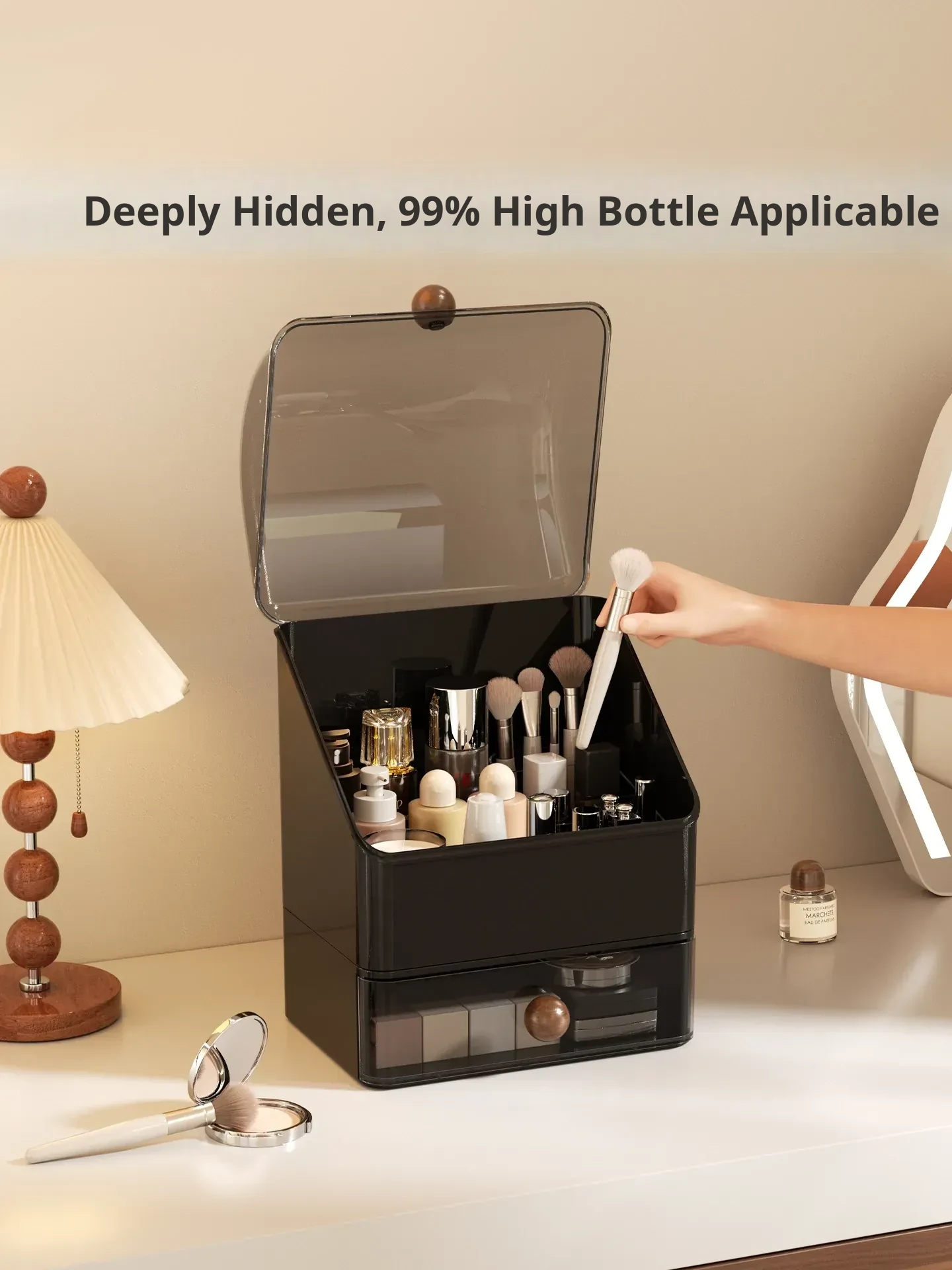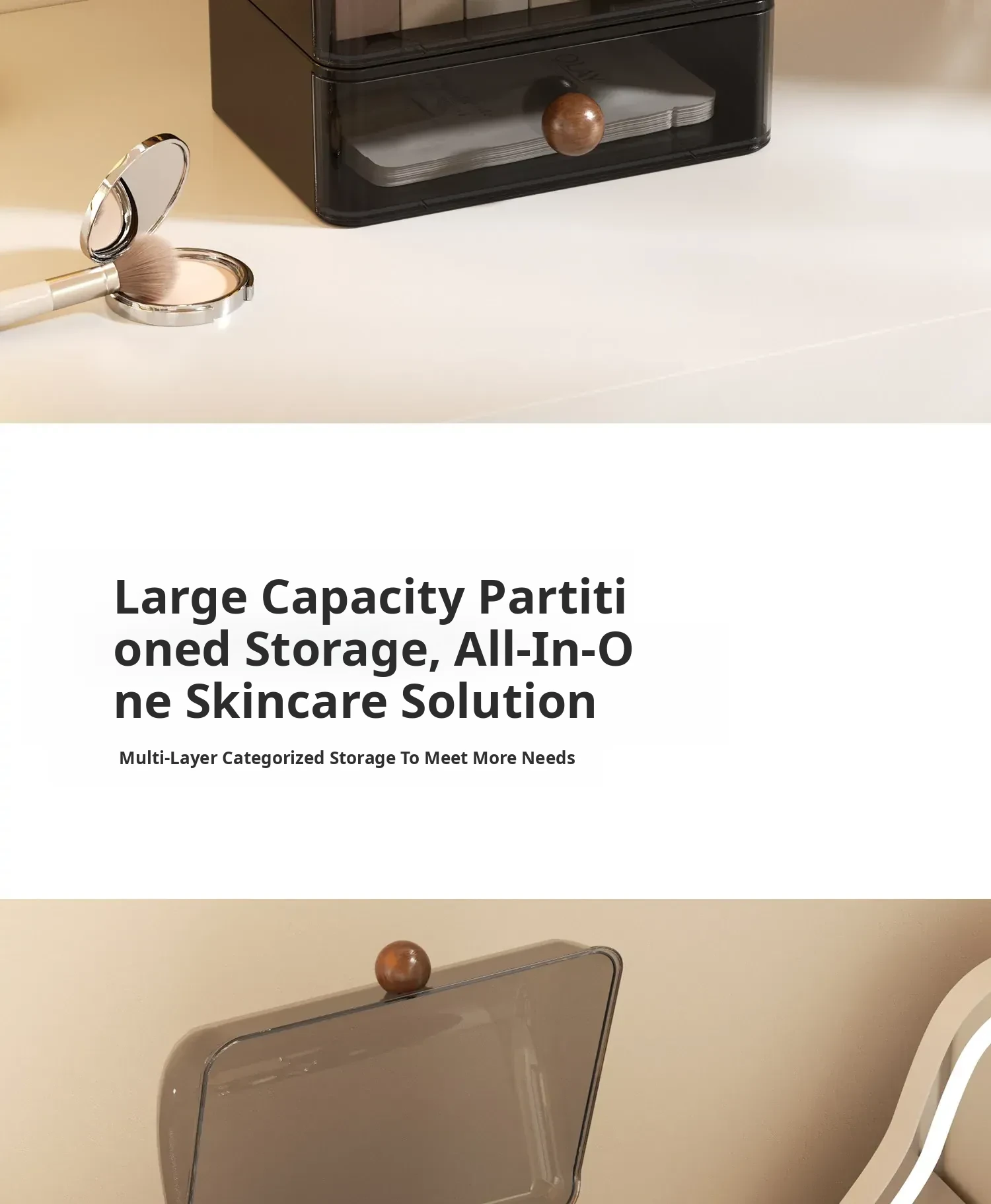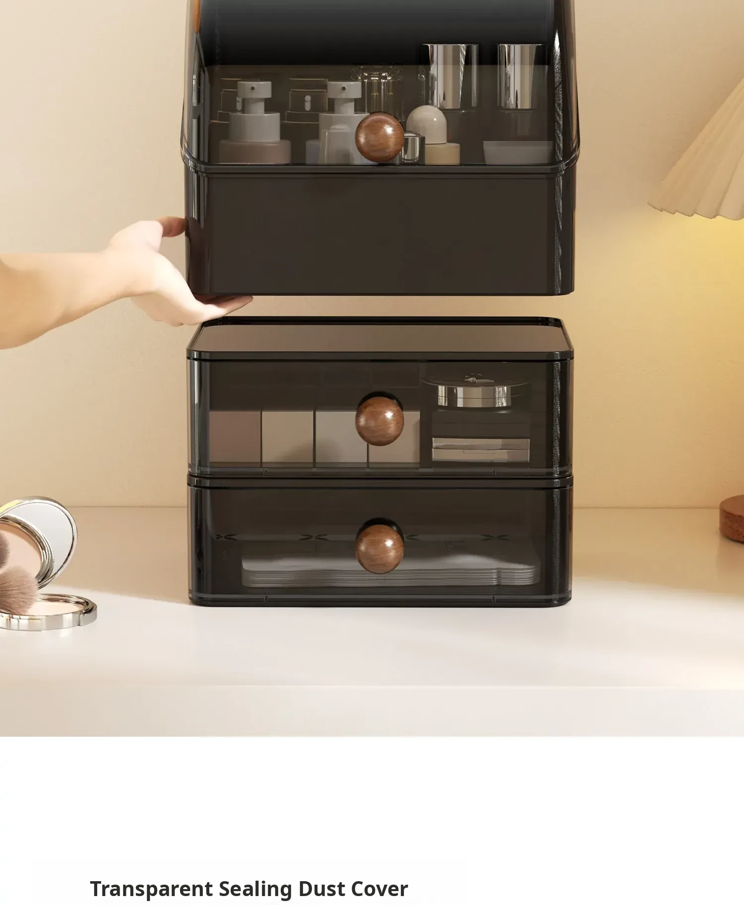 Premium Large Capacity Dustproof Cosmetic Storage Box with Divided Drawers - Elegant Makeup Organizer for Skincare Products and Vanity Essentials