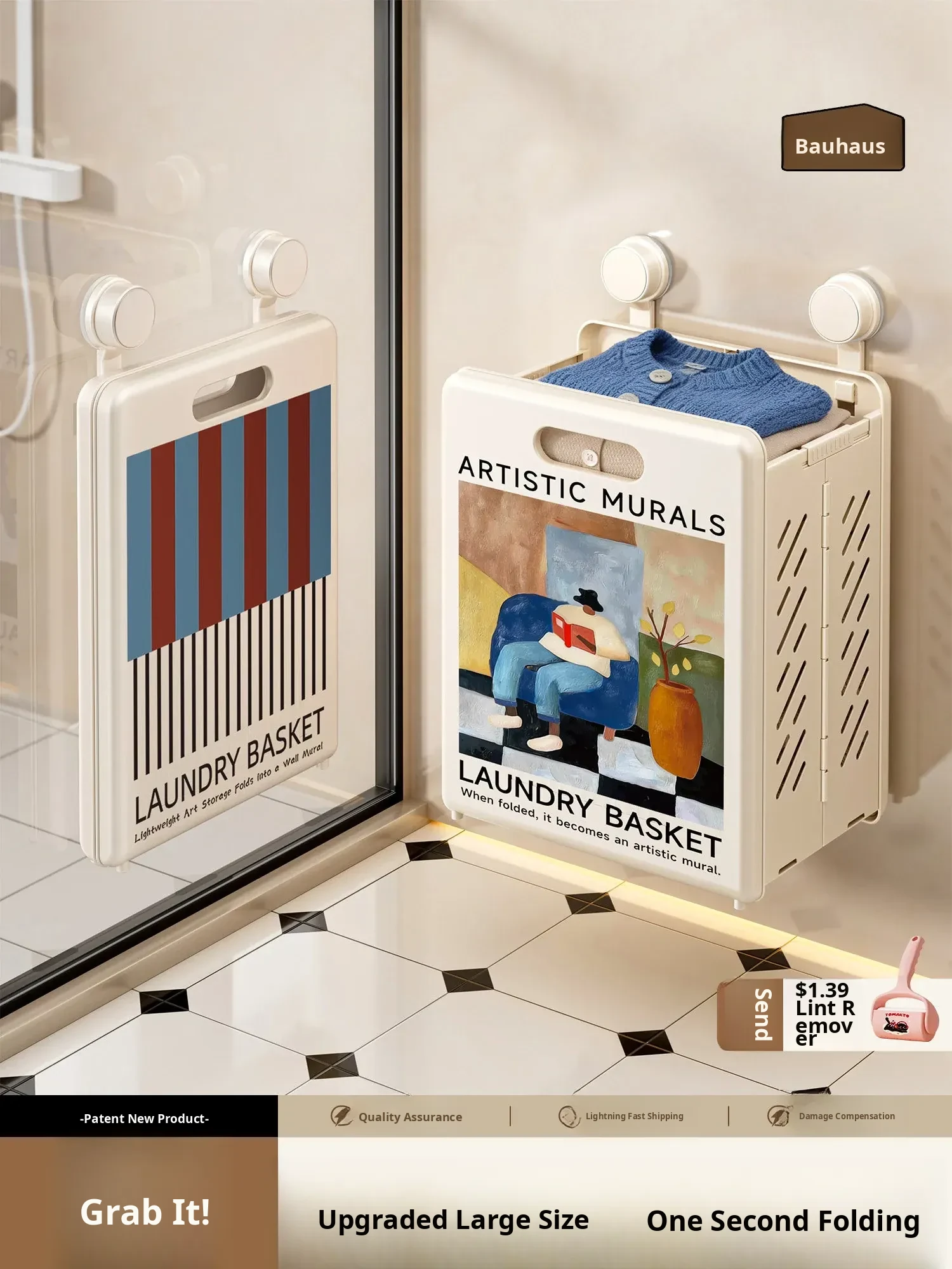 Stylish Foldable Wall-Mounted Laundry Basket - Chic Home Storage Solution for Dirty Clothes, Perfect for Modern Bathrooms and Space-Saving Needs