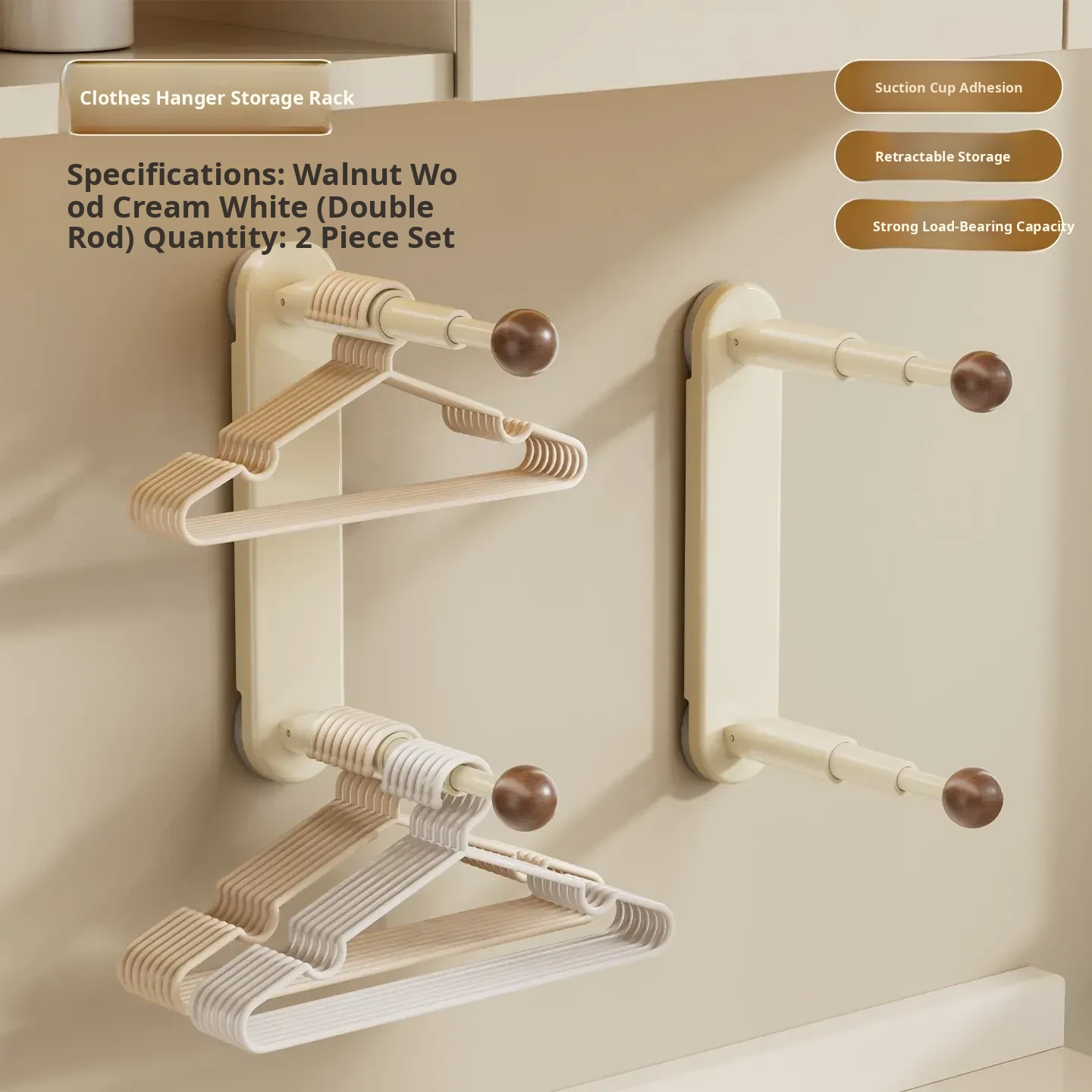 【Walnut Milk White】Double Rod, Single Pack ⭐ Foldable/Retractable