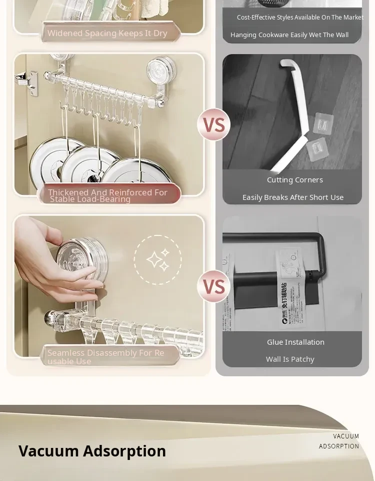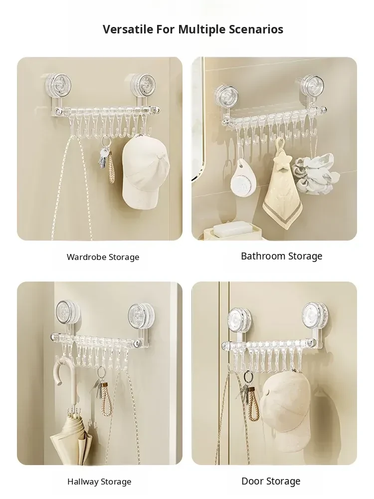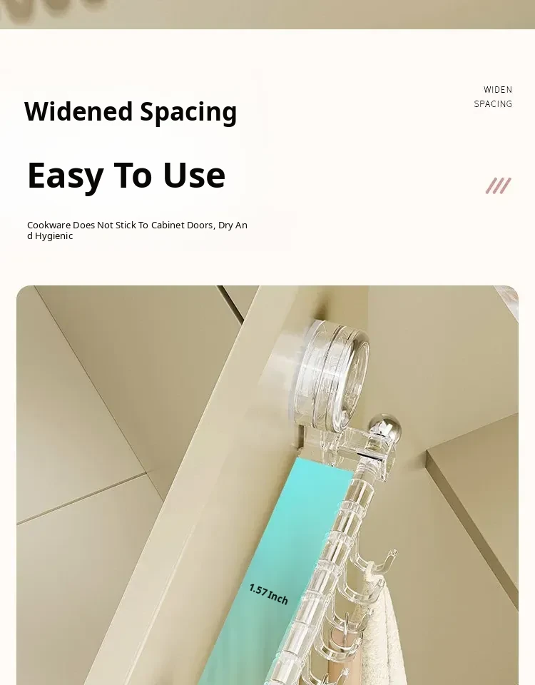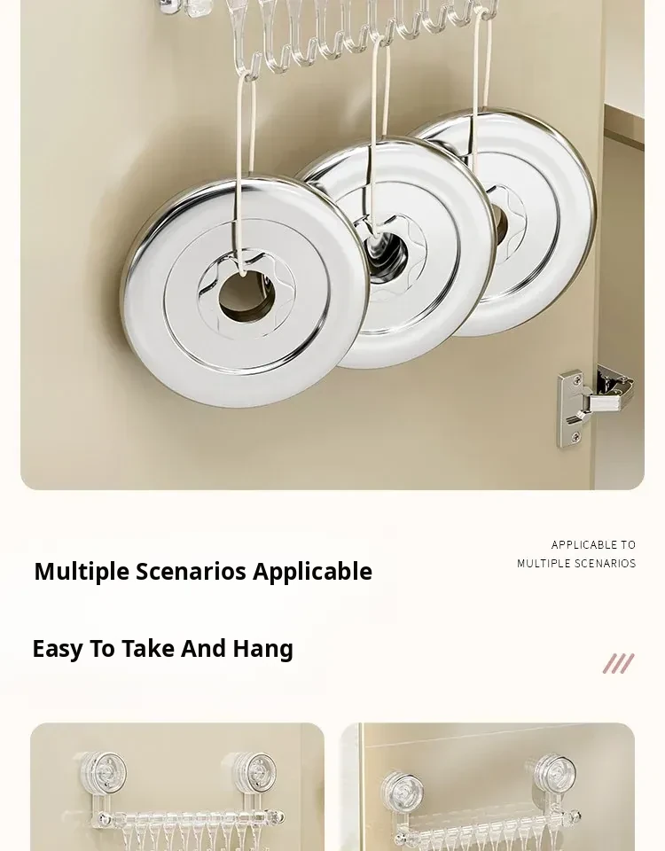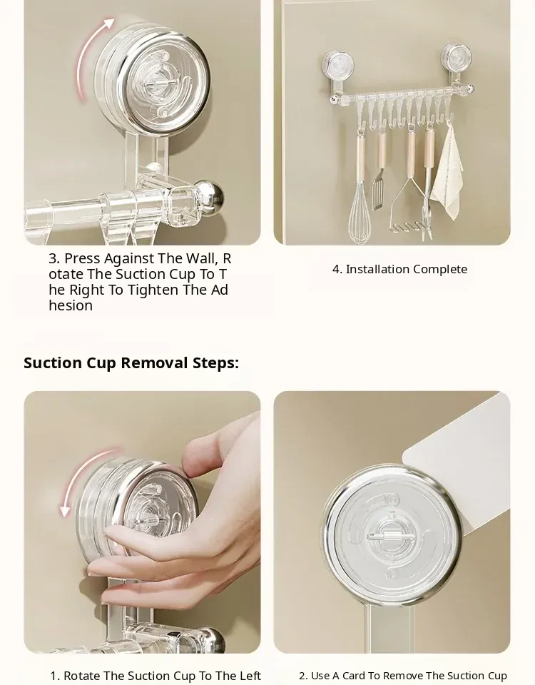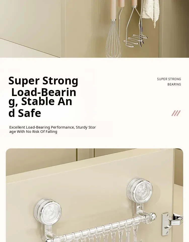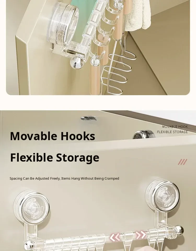 Suction Cup Kitchen Hooks - Wall-Mounted, No Drilling Required, Sliding Rail Rack for Cabinet Door, Ideal for Hanging Spoons and Spatulas, Space-Saving Organizer.