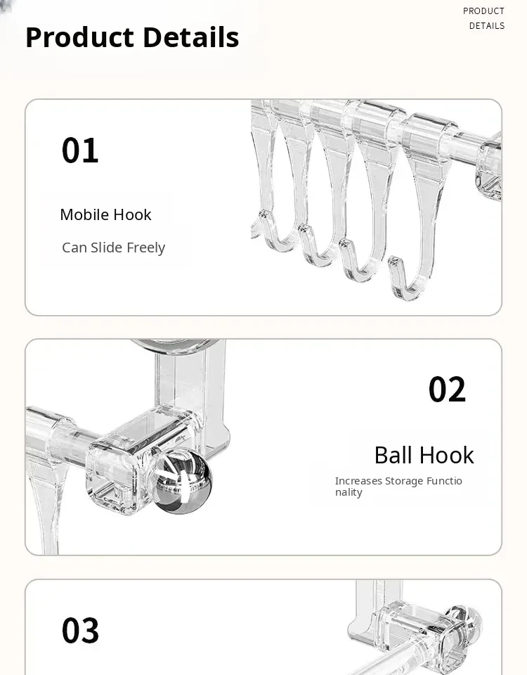 [Transparent Silver] Acrylic 11.81in+10 Hooks⭐Good Looks