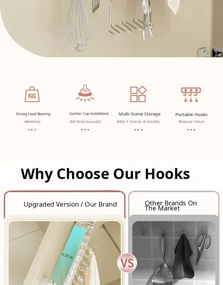 [Black Gray Silver] Stainless Steel 9.84in+10 Hooks⭐Rotatable