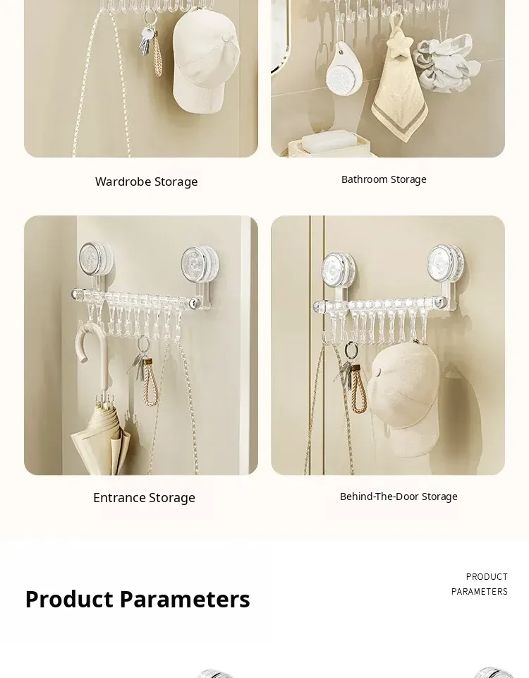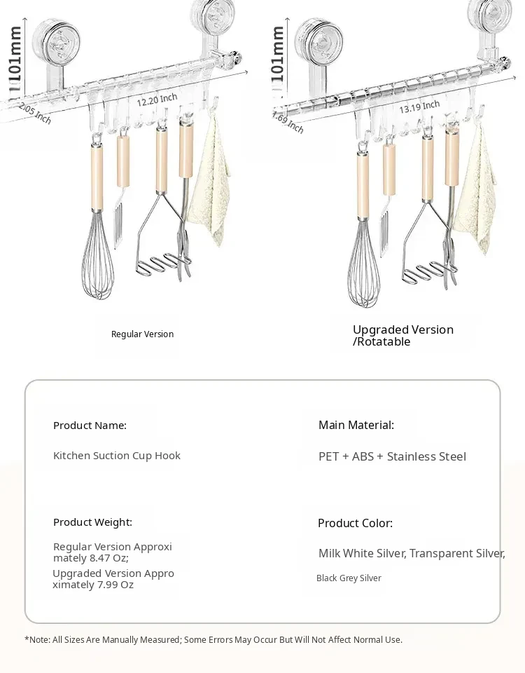 [Transparent Silver] Stainless Steel 9.84in+10 Hooks⭐Rotatable