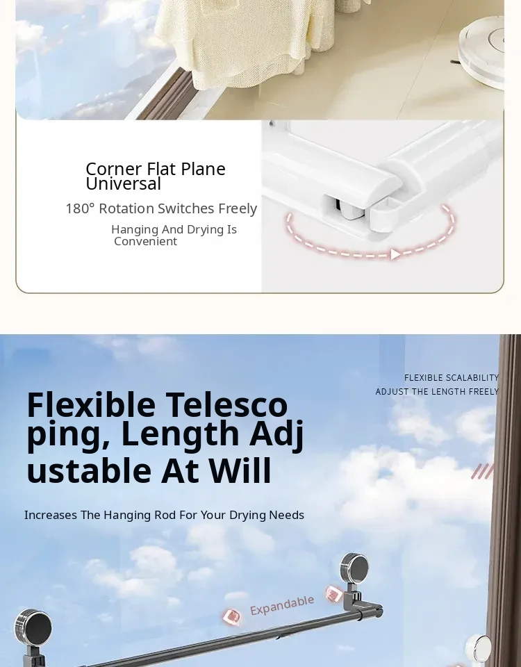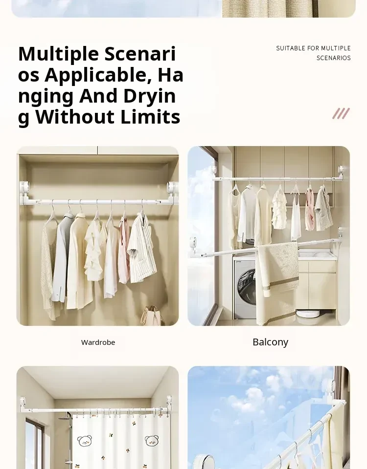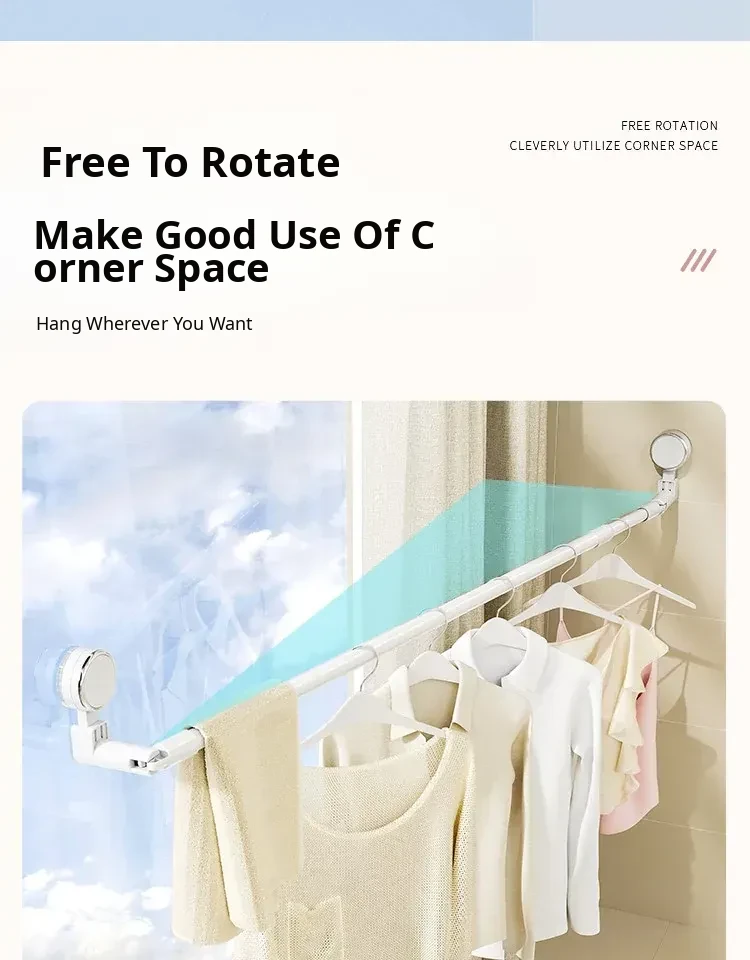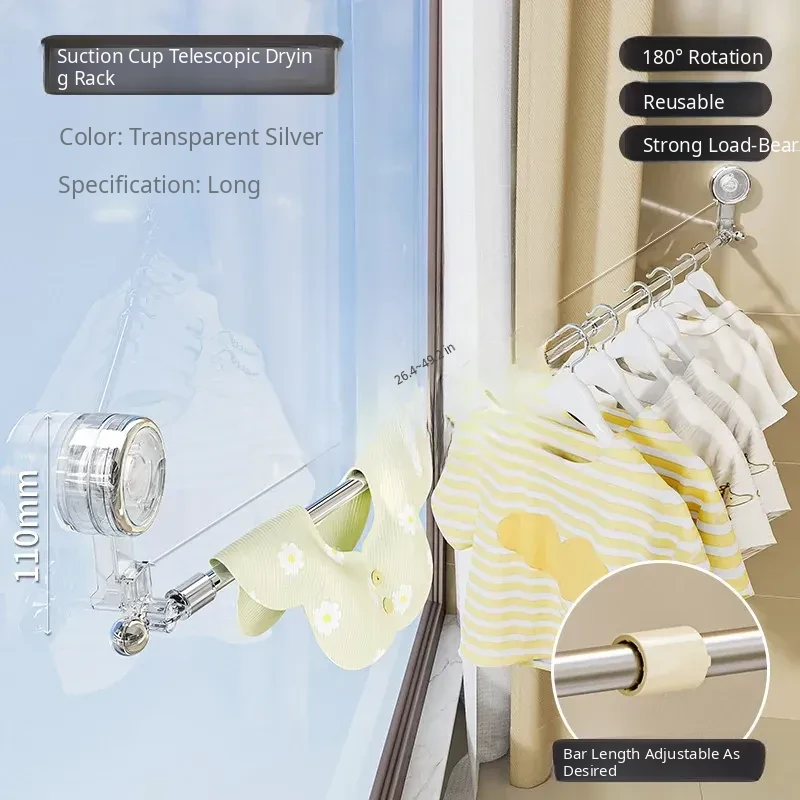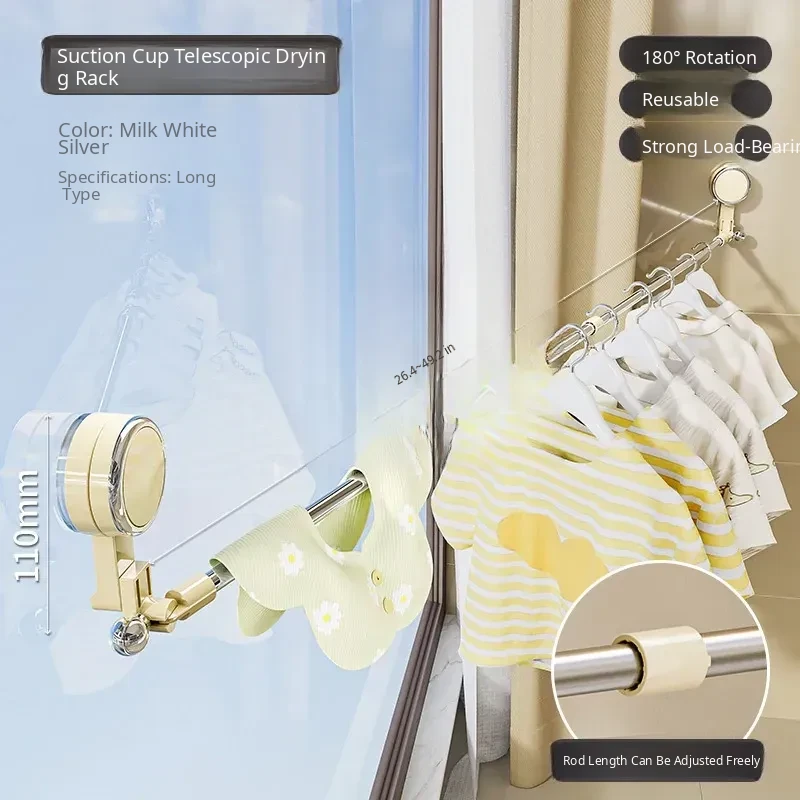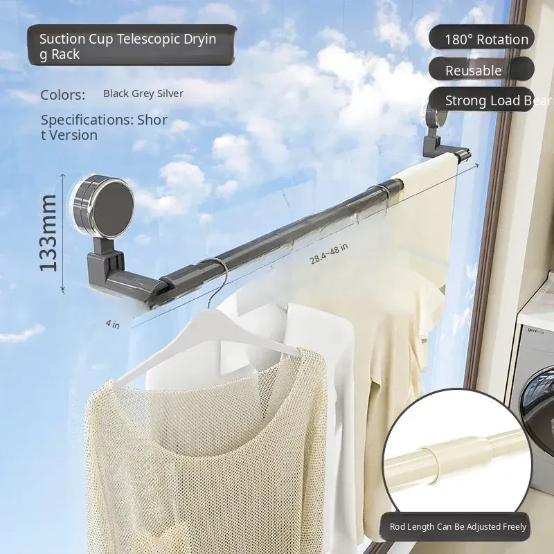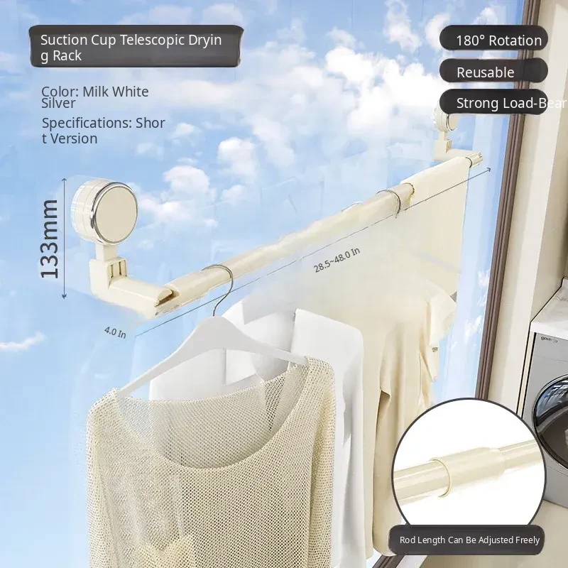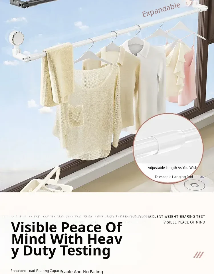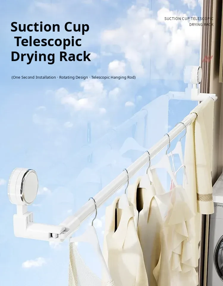 Telescopic Suction Clothes Drying Rack - No Drilling Required, Perfect for Balcony and Window Use, Ideal for Drying Bedding and Clothes, Space-Saving Design for Home Use.
