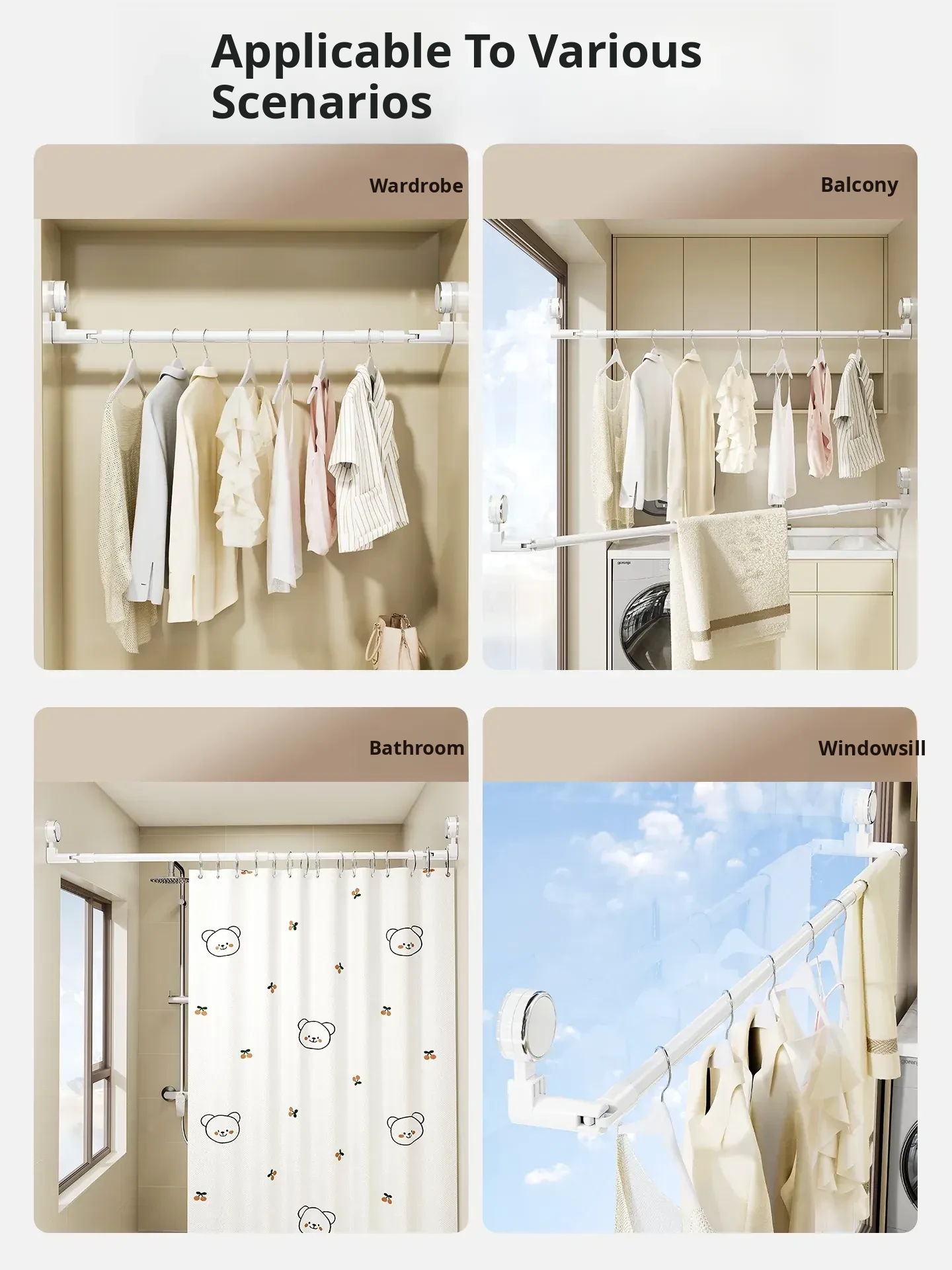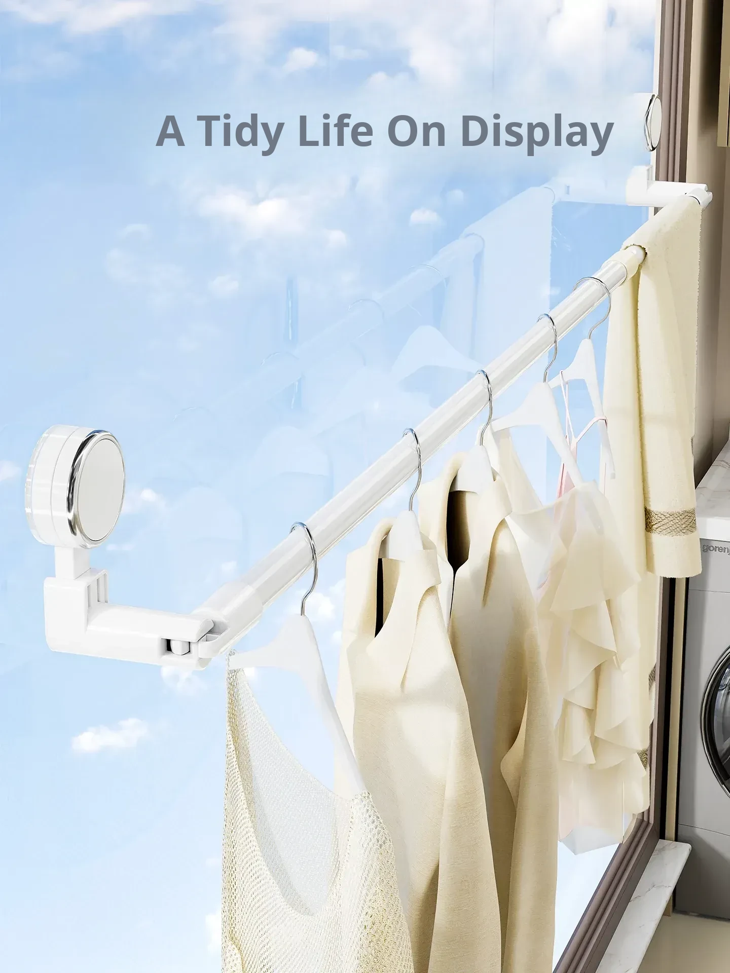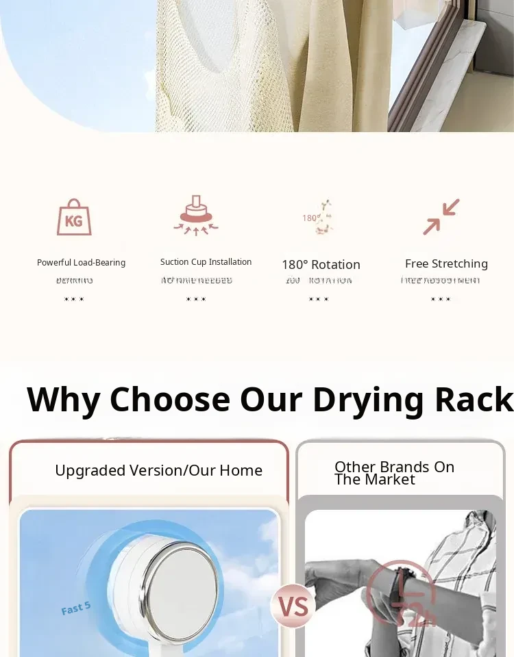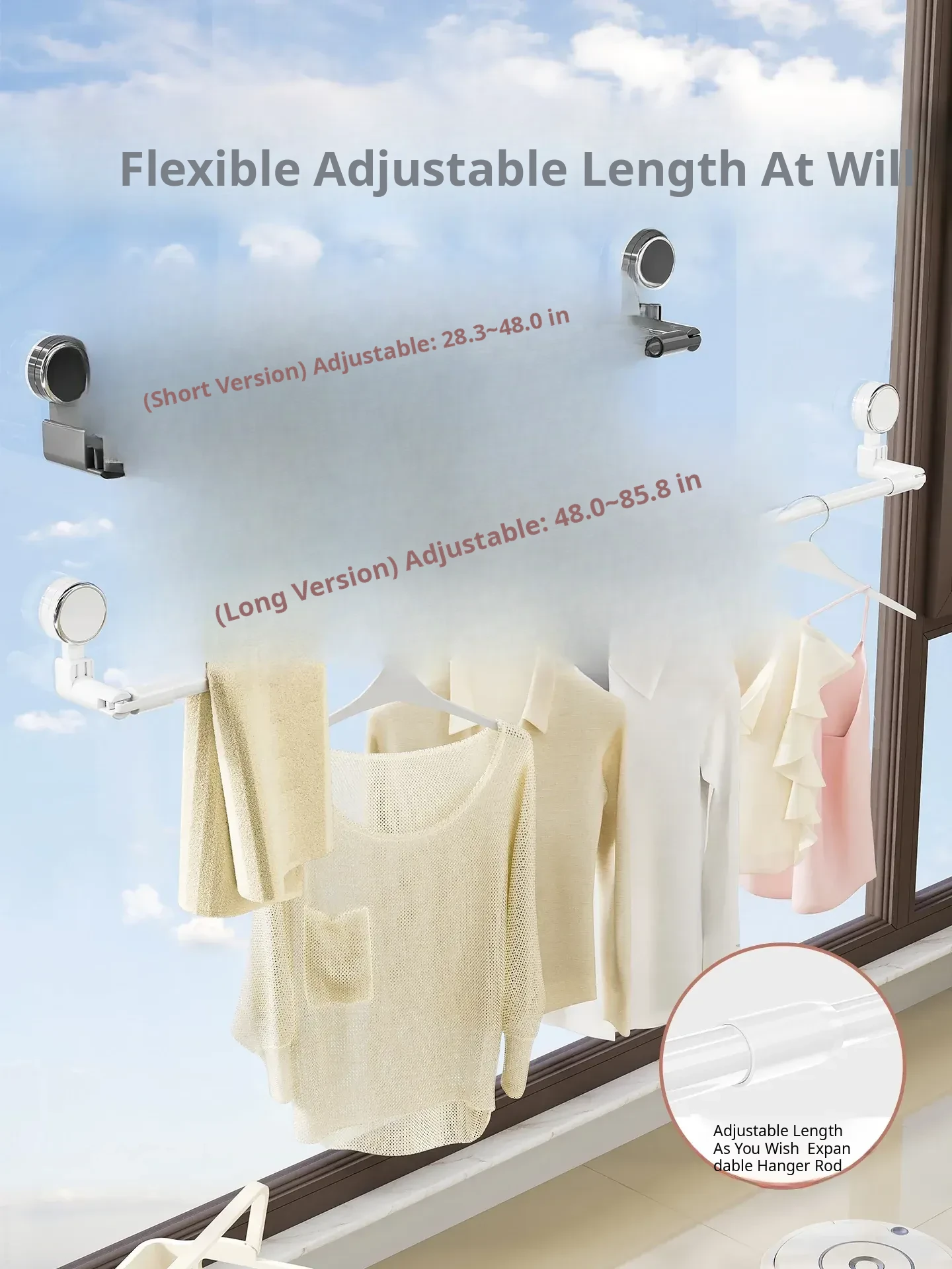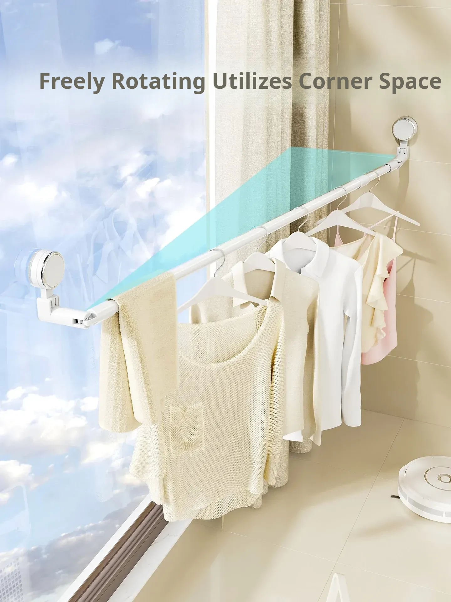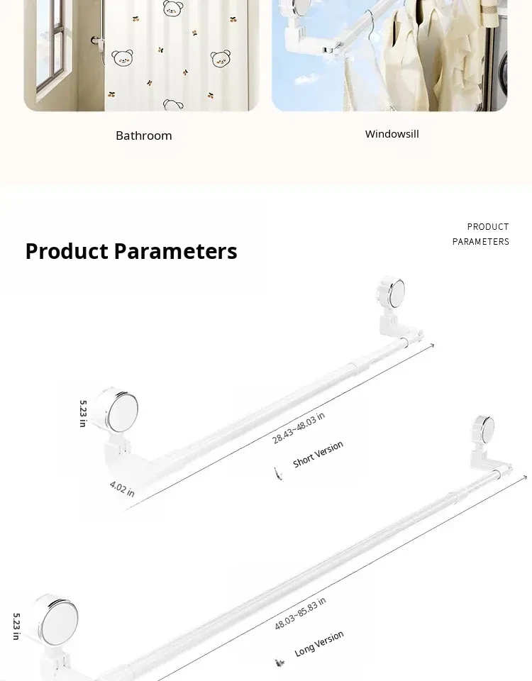 Telescopic Suction Clothes Drying Rack - No Drilling Required, Perfect for Balcony and Window Use, Ideal for Drying Bedding and Clothes, Space-Saving Design for Home Use.