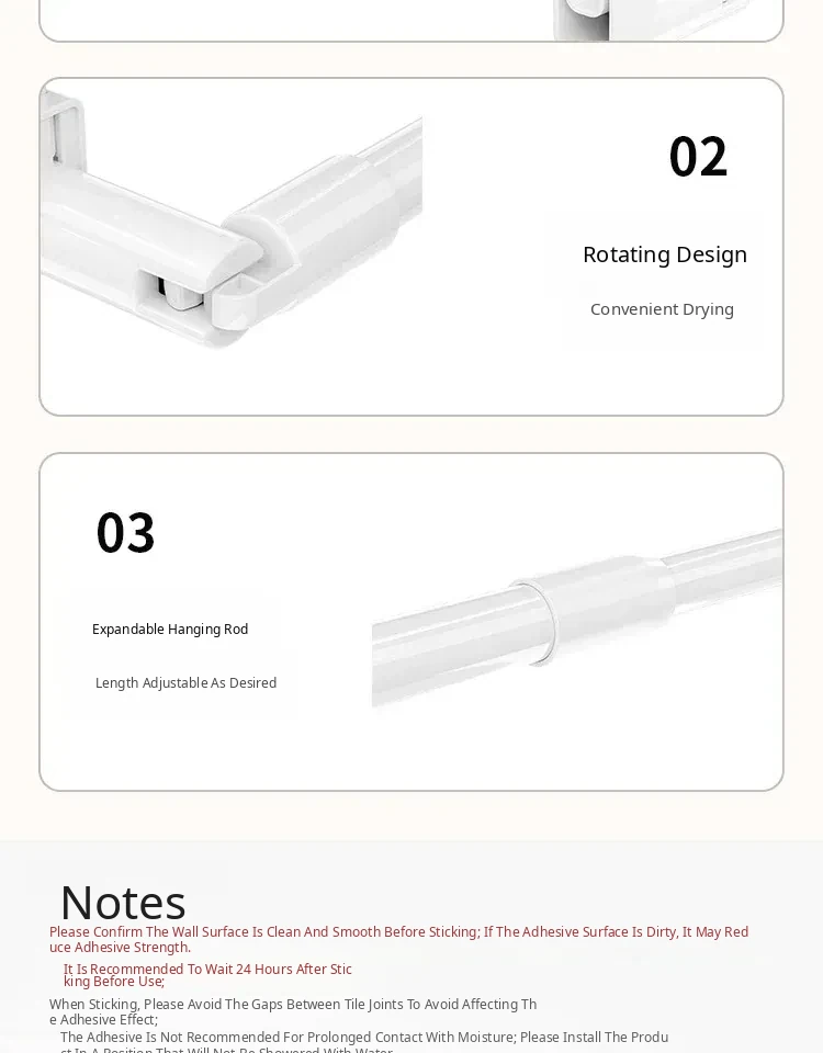 [Milk White] Thin Rod Trumpet⭐Telescopic 26.38in-49.21in (Small Clothes/Towel Rack)