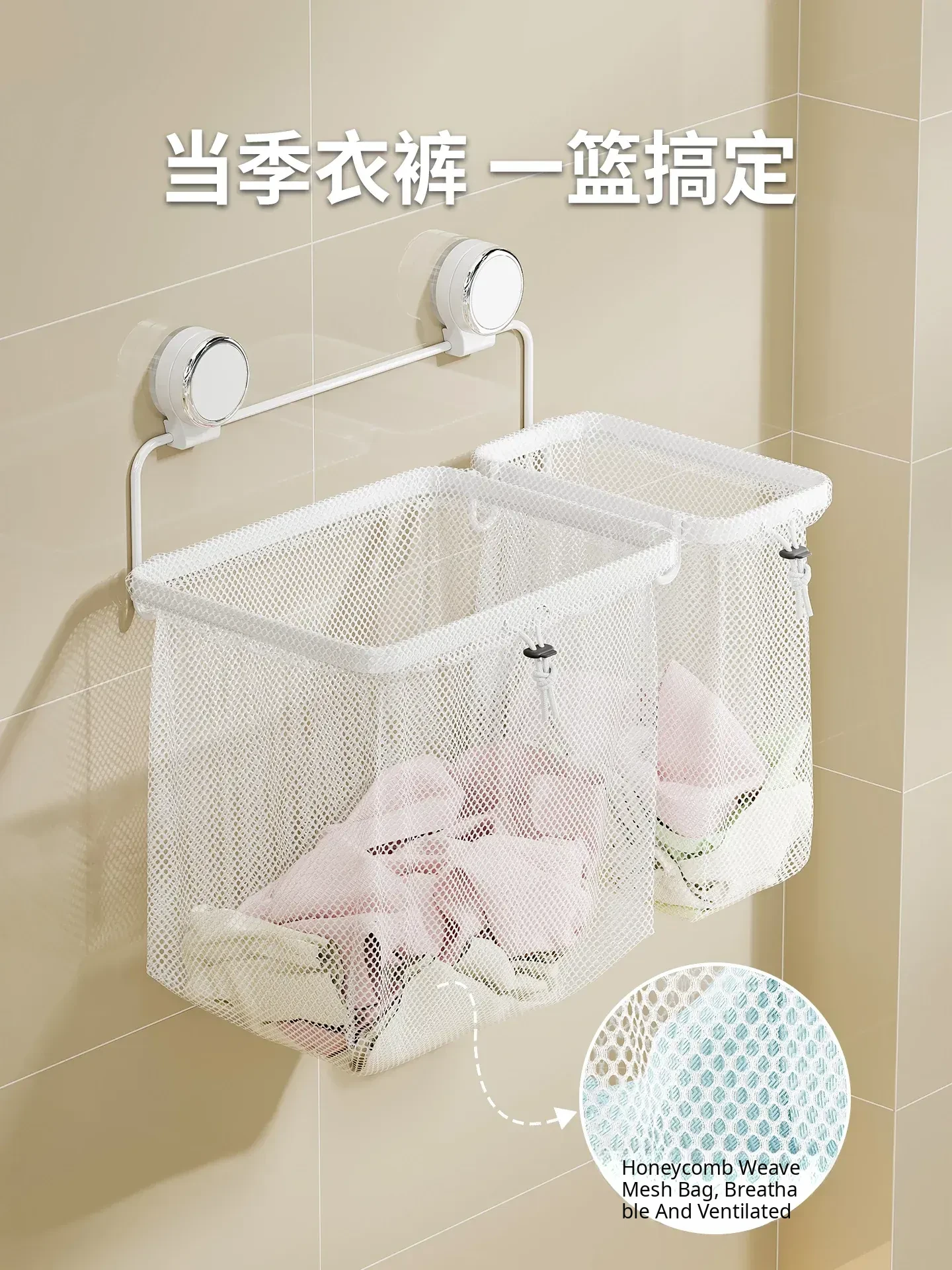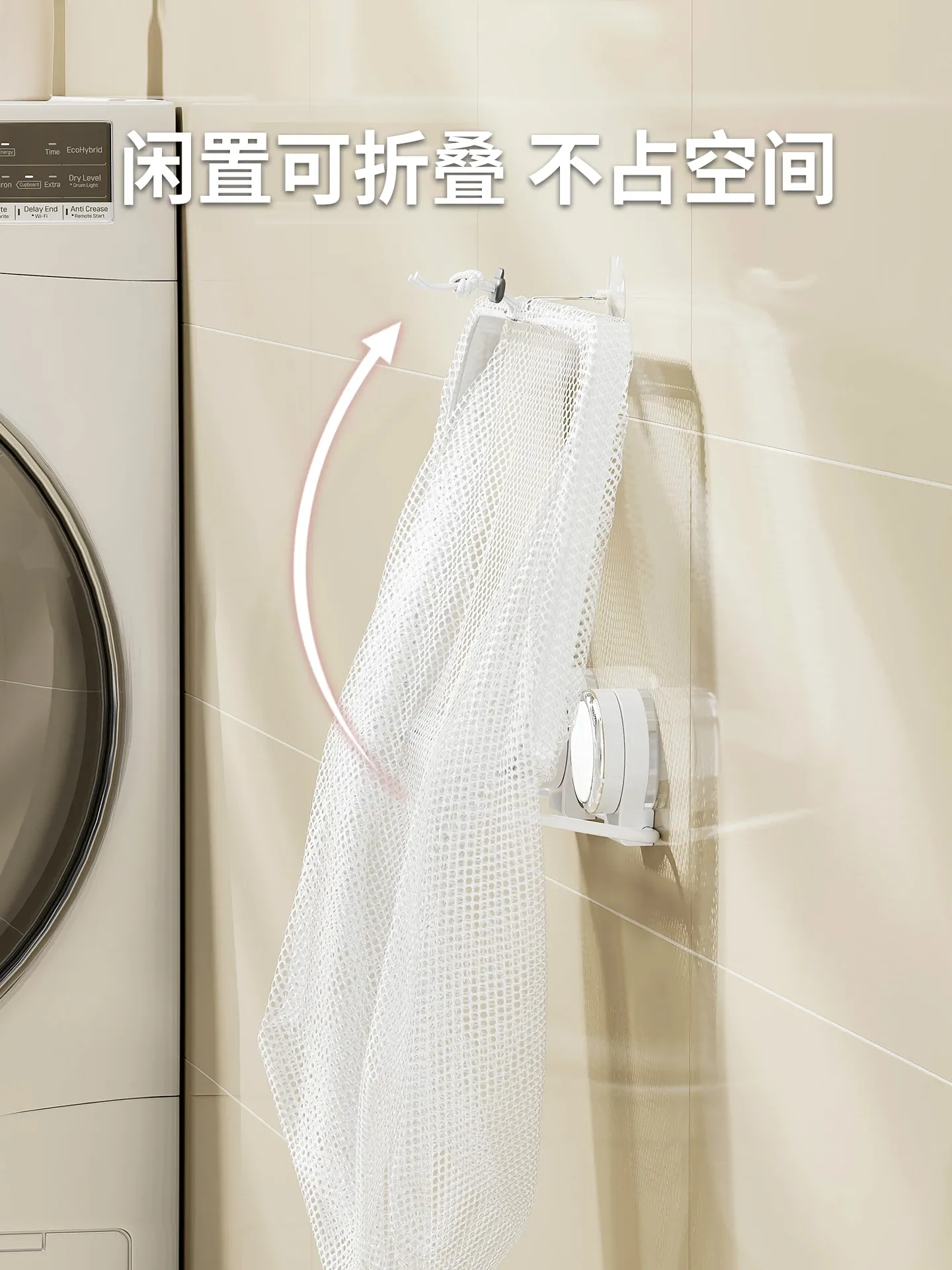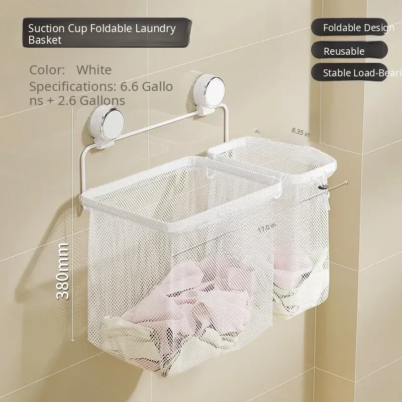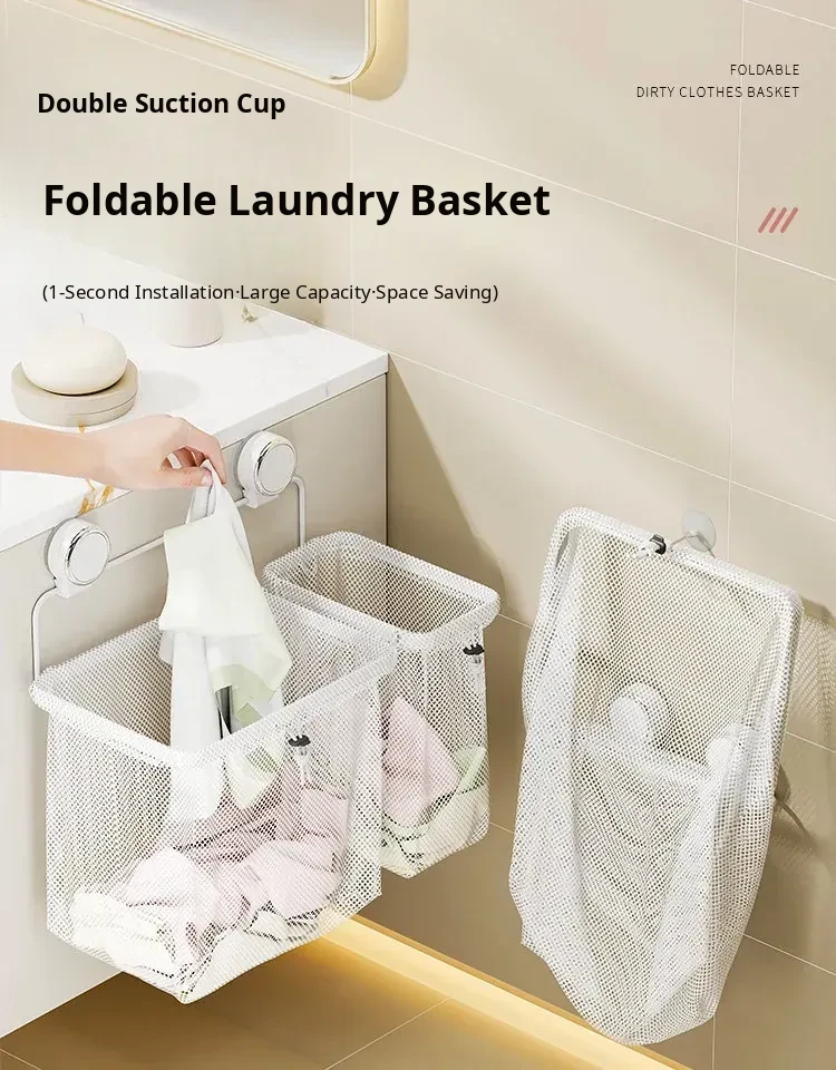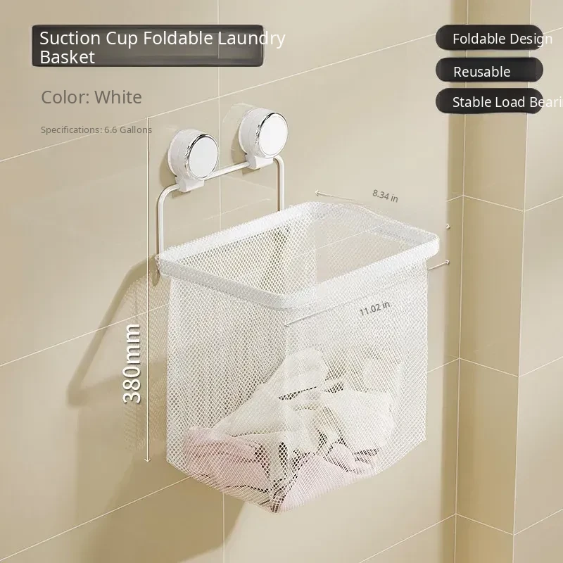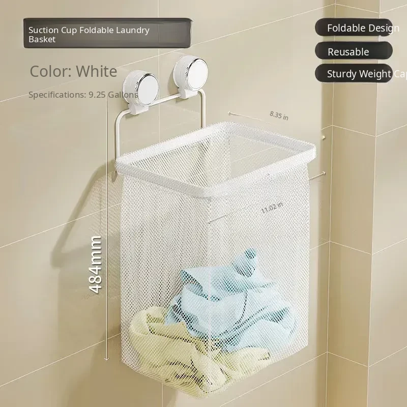 Wall-Mounted Suction Cup Laundry Basket - Space-Saving Foldable Dirty Clothes Bin for Bathroom, Perfect for Home Organization and Easy Storage!