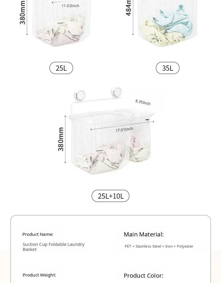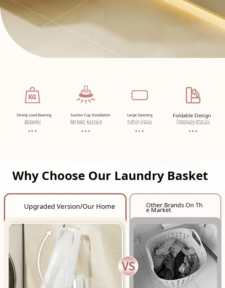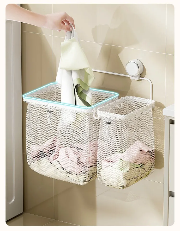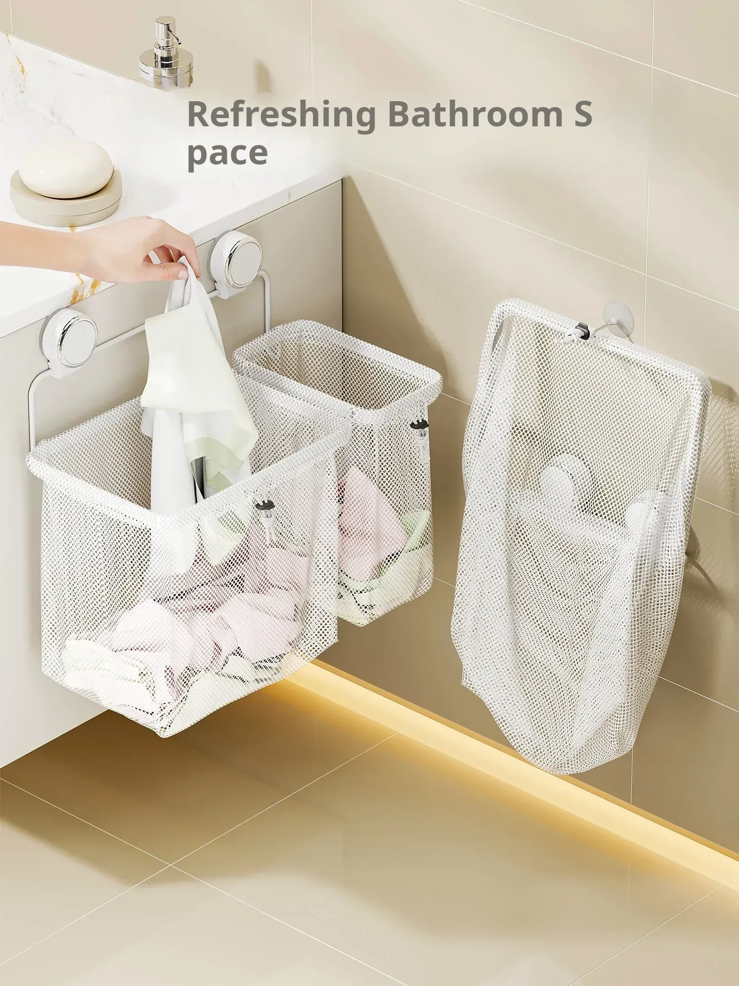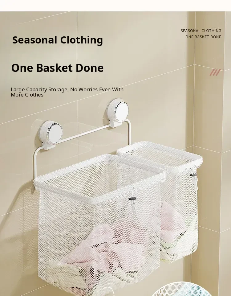 Wall-Mounted Suction Cup Laundry Basket - Space-Saving Foldable Dirty Clothes Bin for Bathroom, Perfect for Home Organization and Easy Storage!