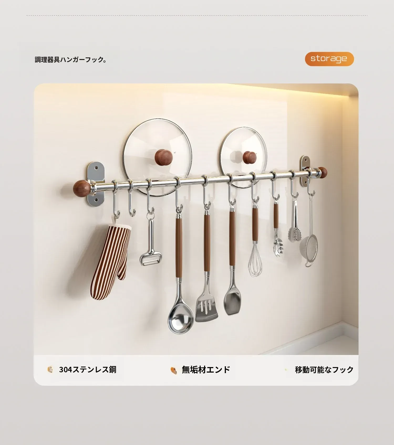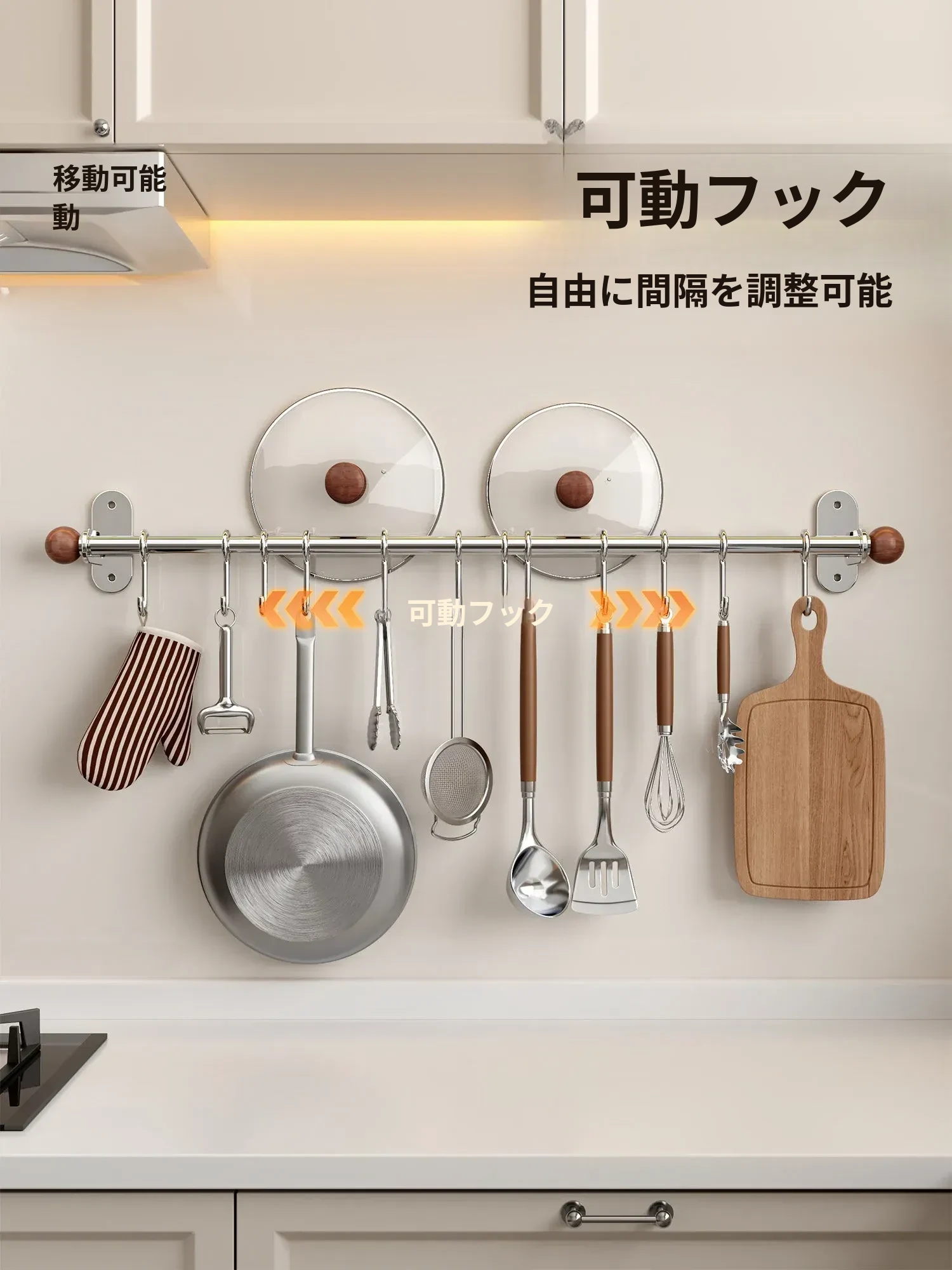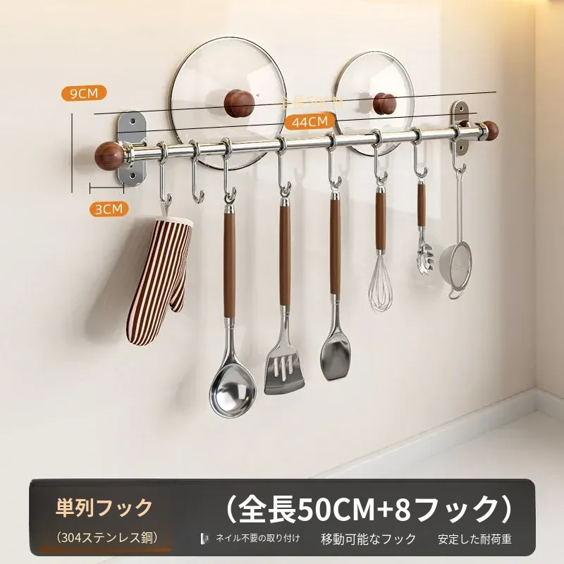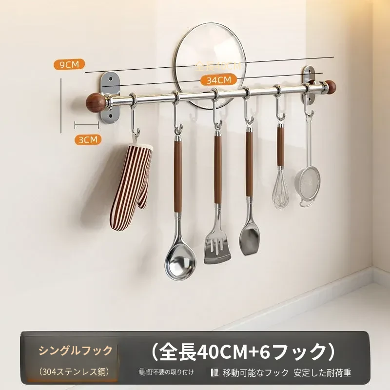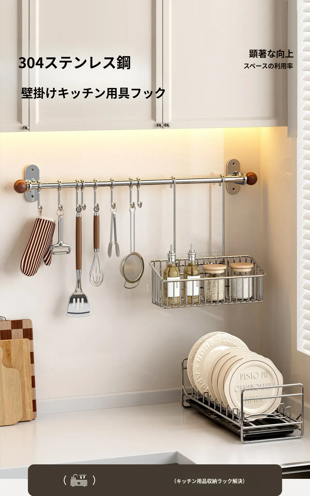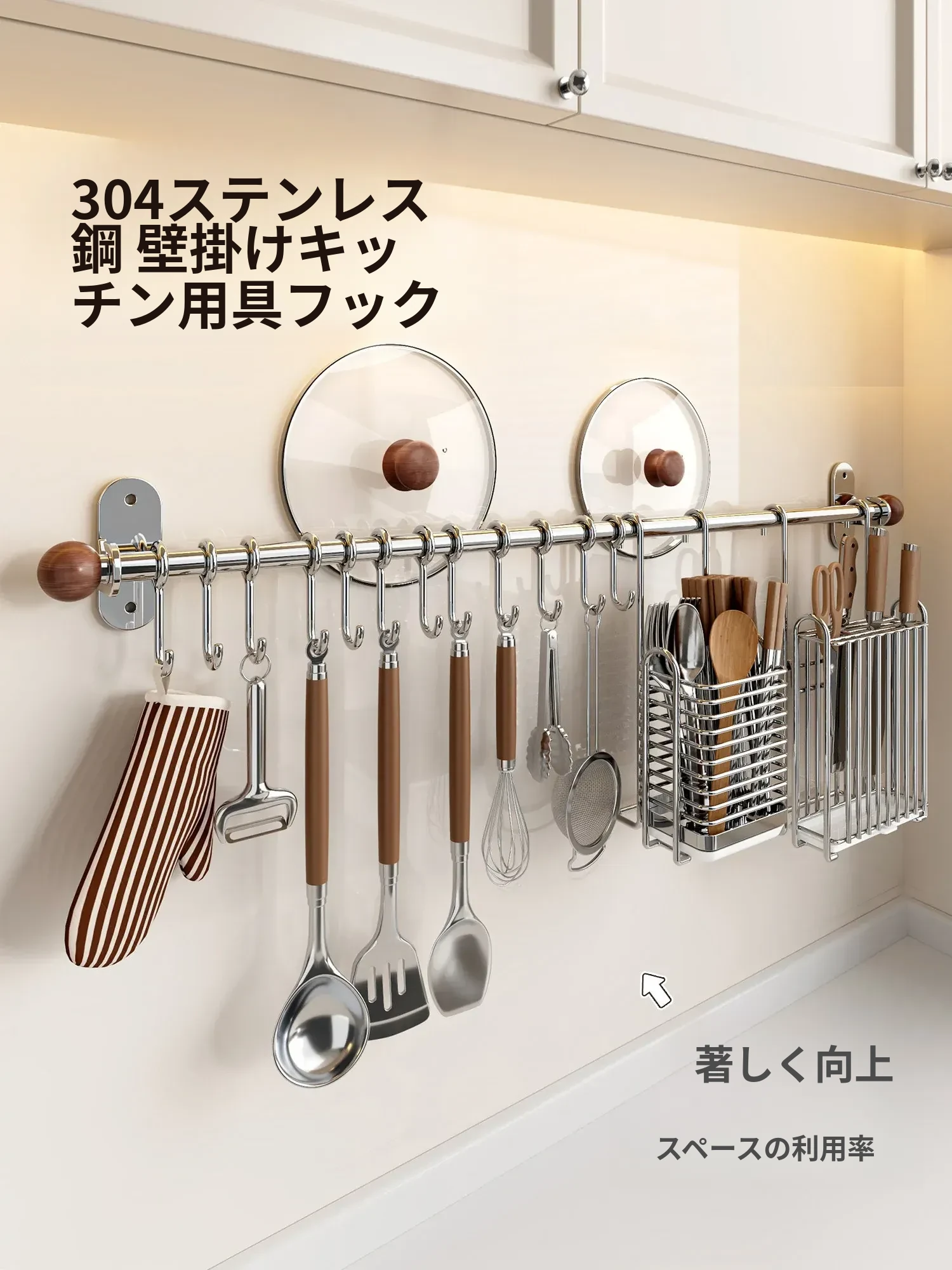 304ステンレス製キッチンハンガーバー - 簡単取り付けの壁掛け収納ラック、フライ返しや箸、スプーン、ナイフをスッキリ整理!おしゃれで実用的なキッチンアイテムです。
