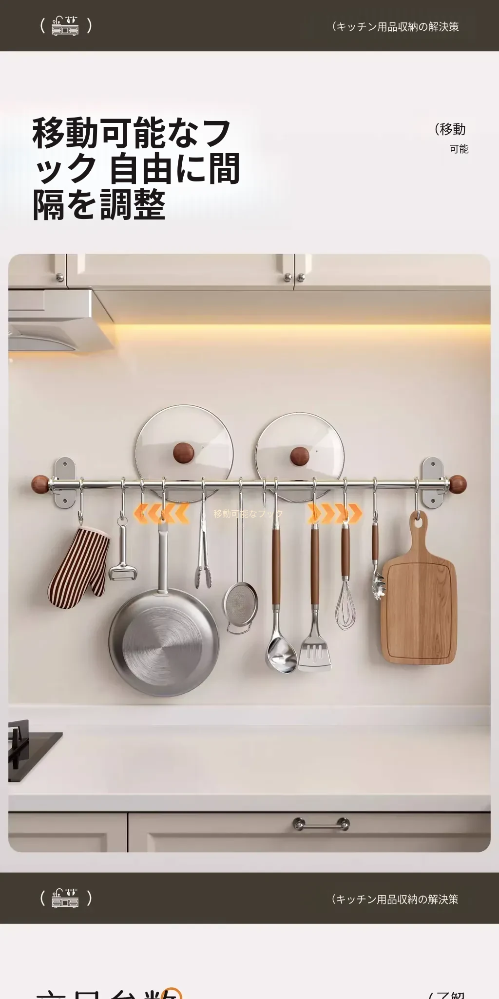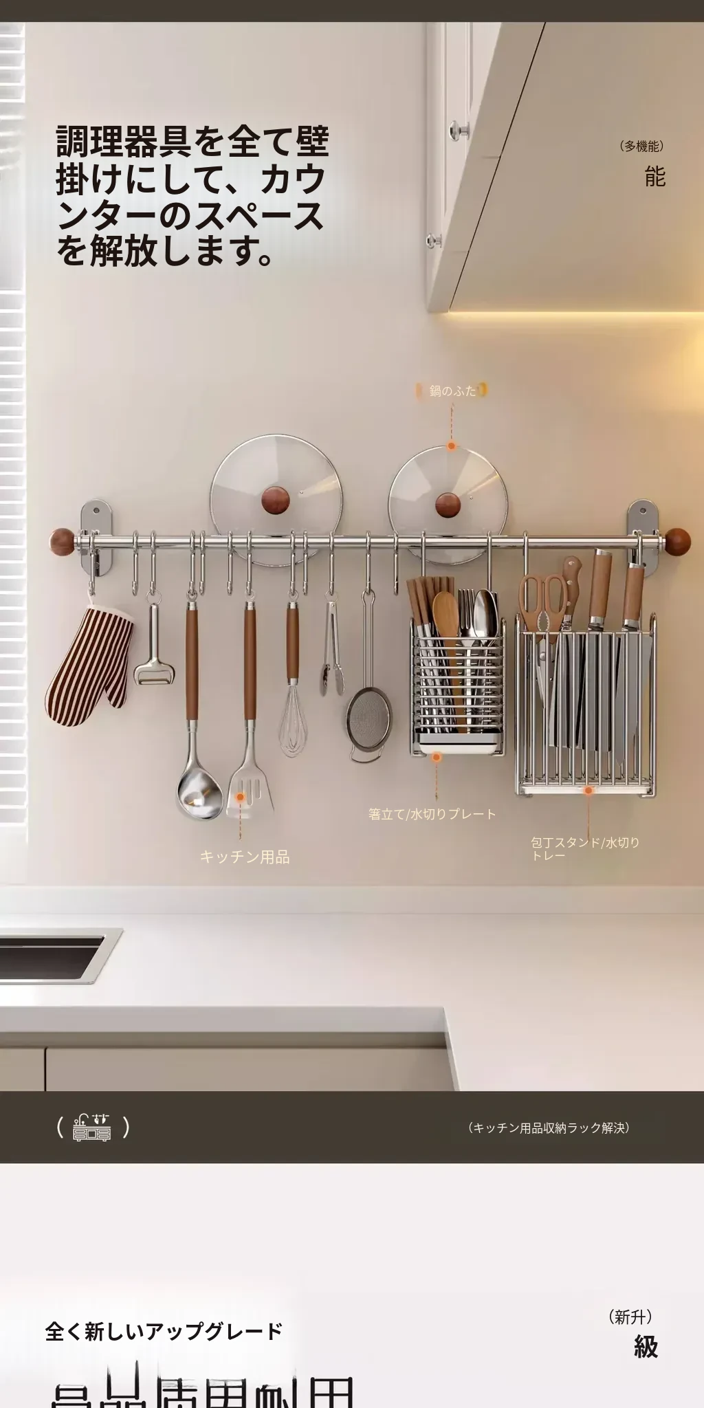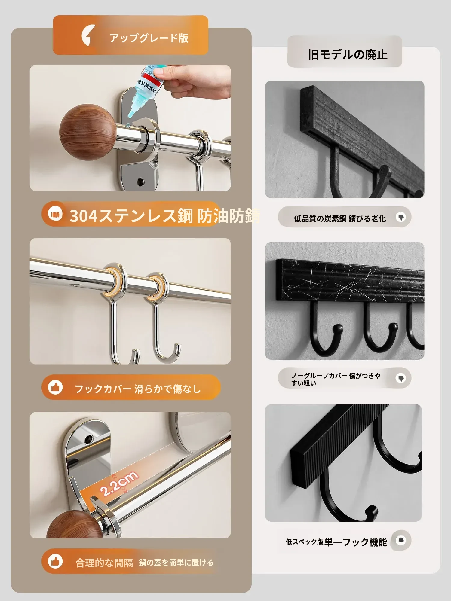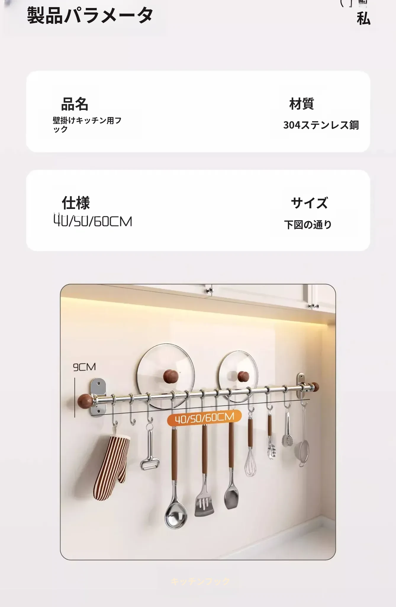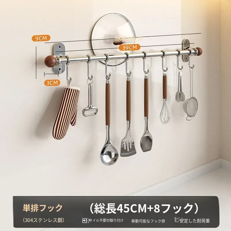 304ステンレス製キッチンハンガーバー - 簡単取り付けの壁掛け収納ラック、フライ返しや箸、スプーン、ナイフをスッキリ整理!おしゃれで実用的なキッチンアイテムです。