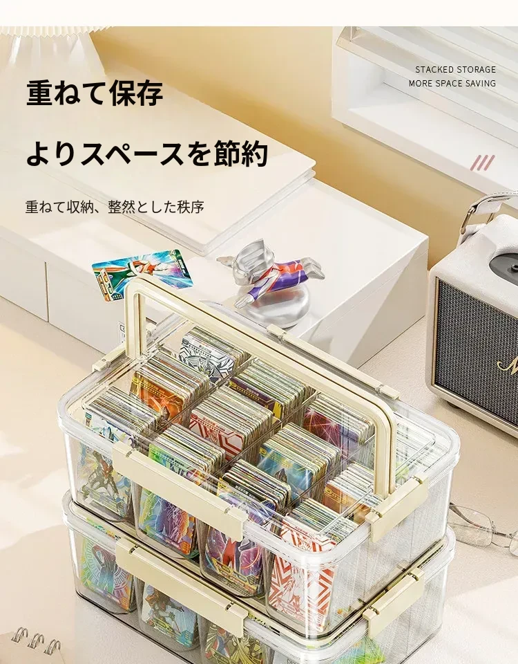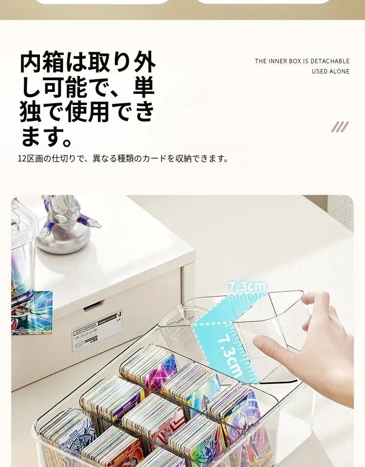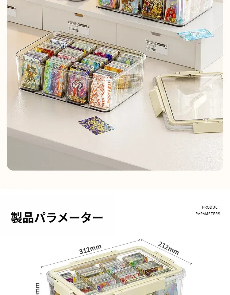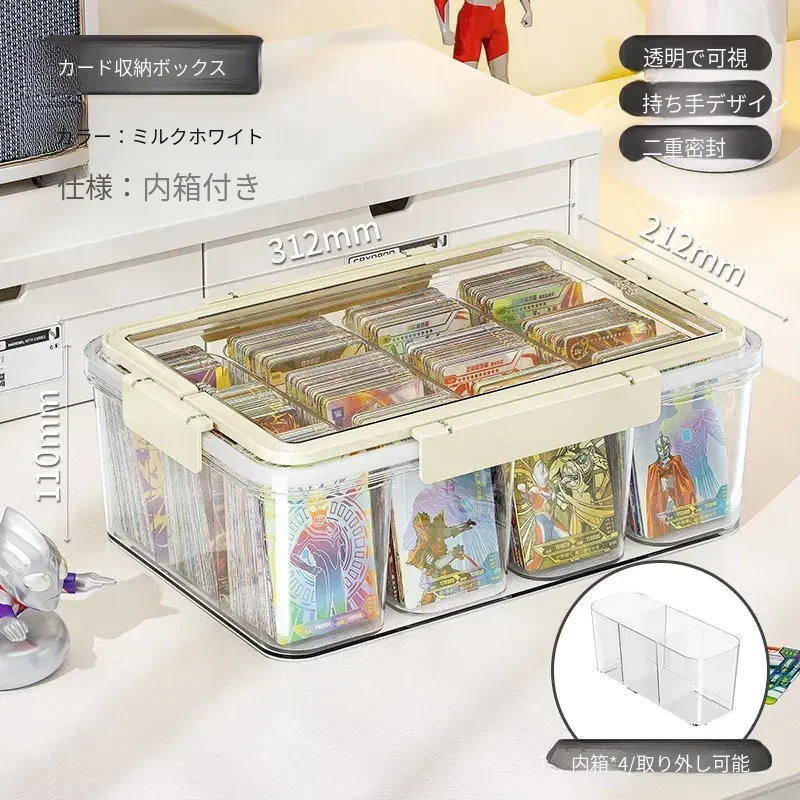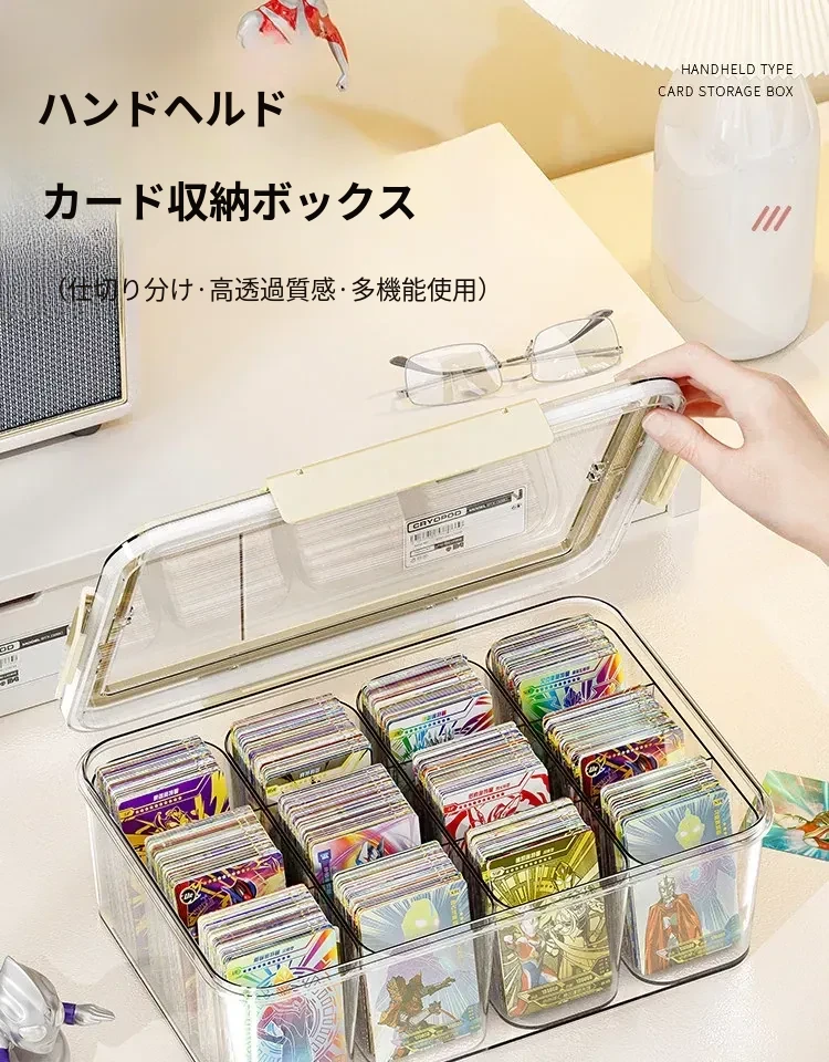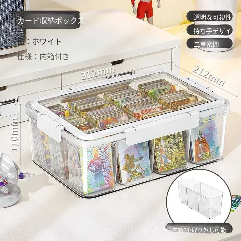 アクリル透明密封カード収納ボックス - 分格付きで、美しくカードを展示!ウルトラマンやマイリトルポニーのコレクションに最適なカードホルダー。あなたの大切なカードをスタイリッシュに保管!