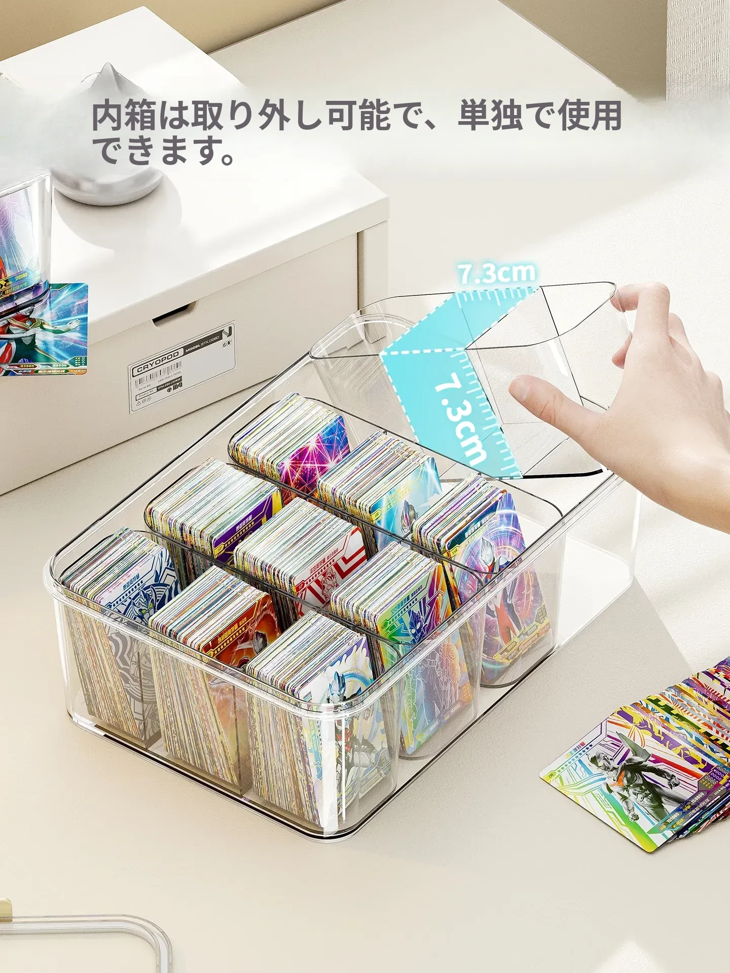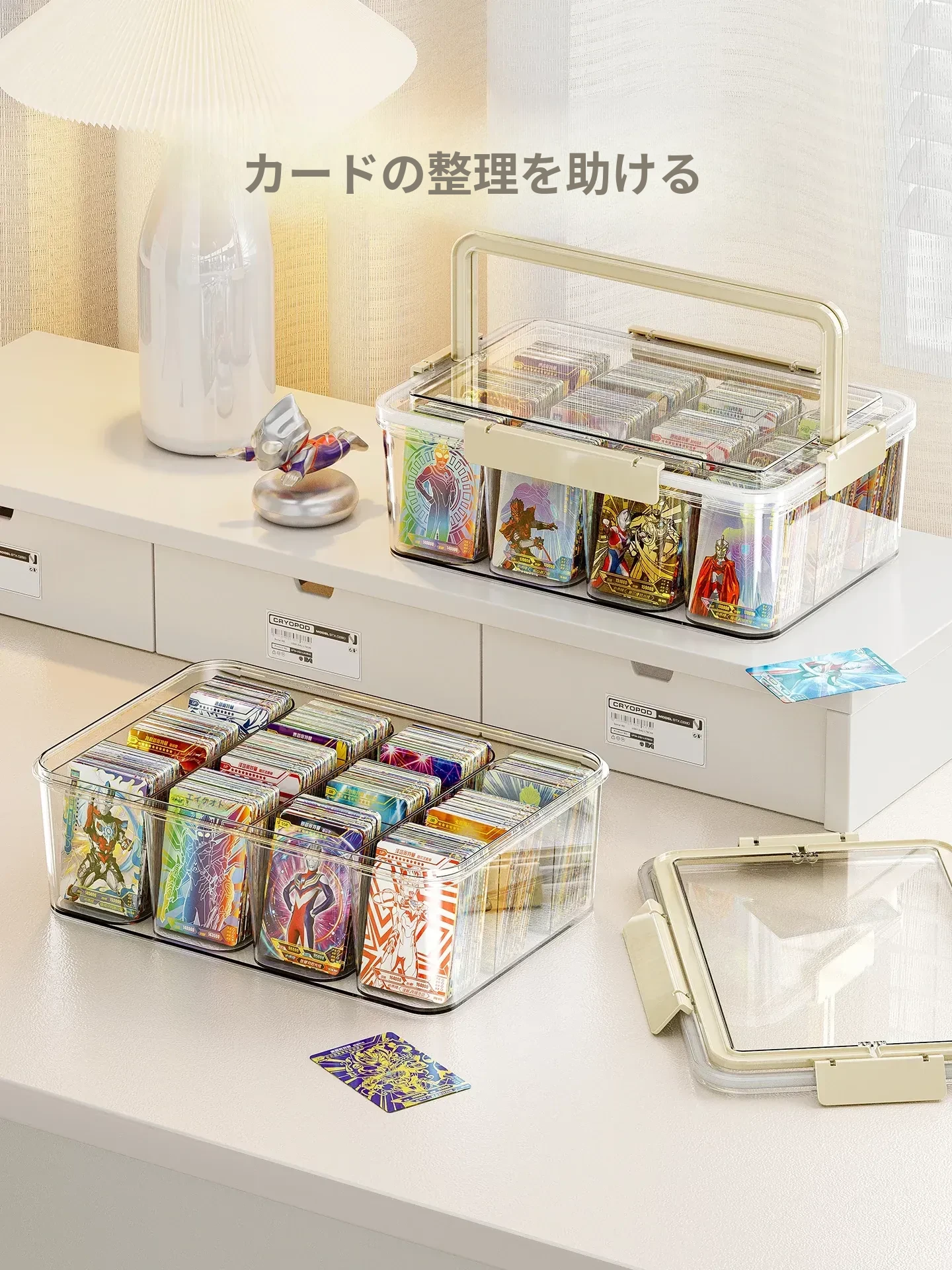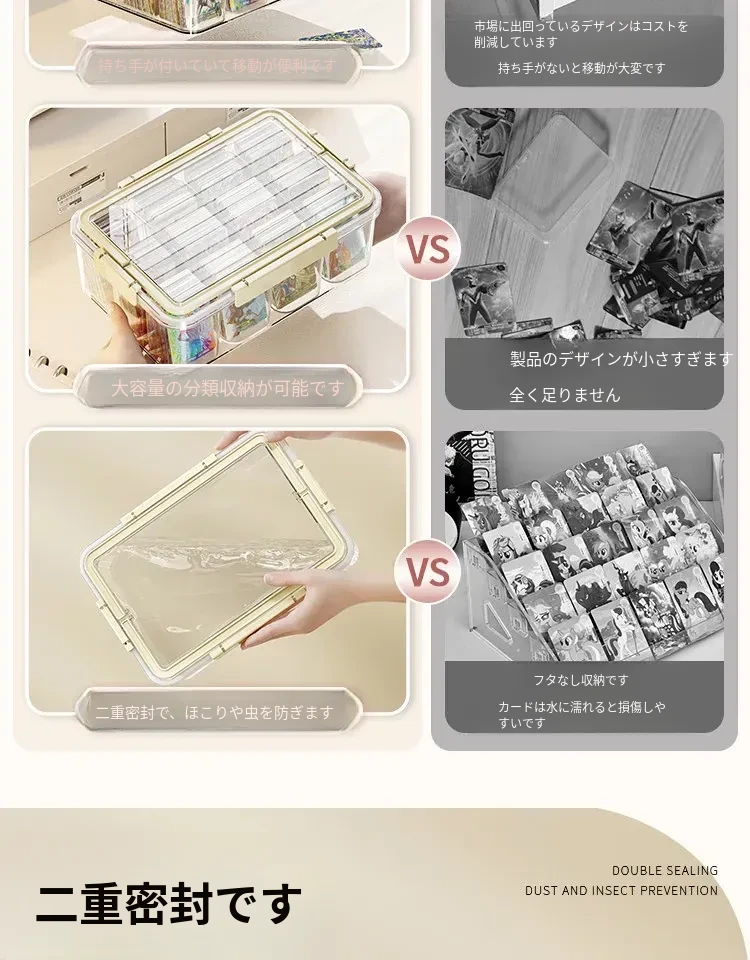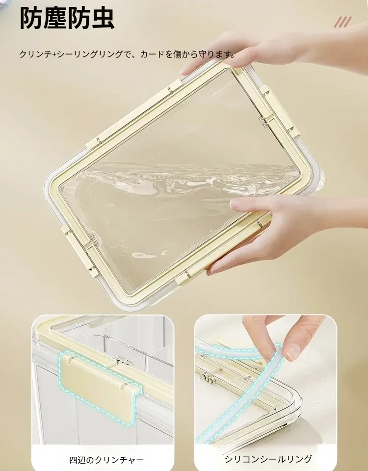 アクリル透明密封カード収納ボックス - 分格付きで、美しくカードを展示!ウルトラマンやマイリトルポニーのコレクションに最適なカードホルダー。あなたの大切なカードをスタイリッシュに保管!