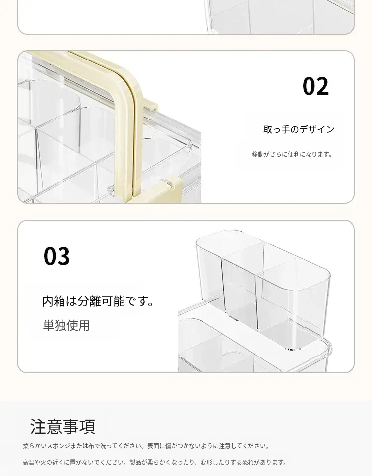 透明なハンドル付き仕切り付き✿3分仕切り/取り外し可能