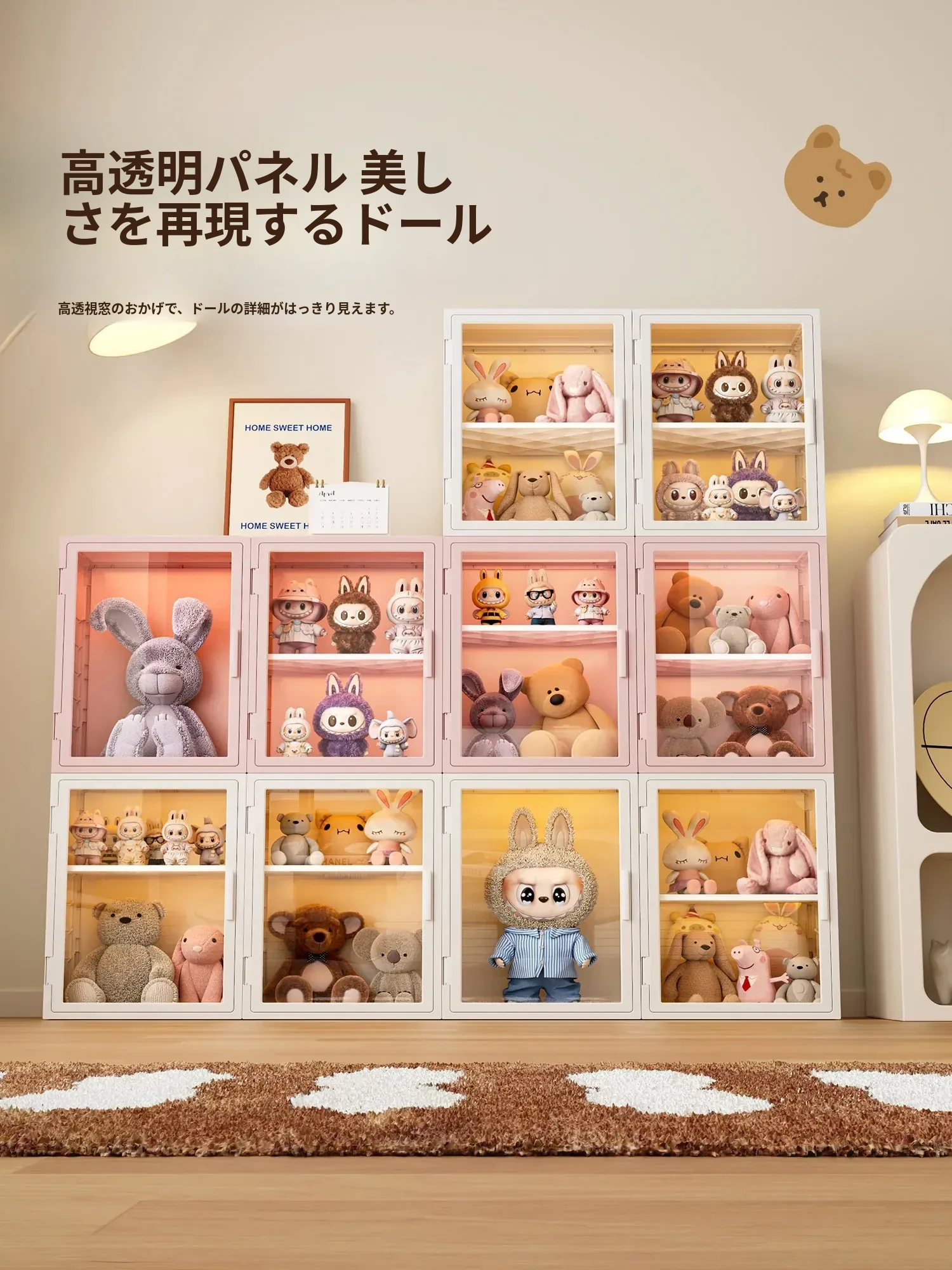 ポップマートのラブブー ブラインドボックス用収納ディスプレイケース - おしゃれなフィギュアやトレンドアイテムを美しく魅せる透明な収納棚!あなたのコレクションを引き立てる、必見のアイテムです!
