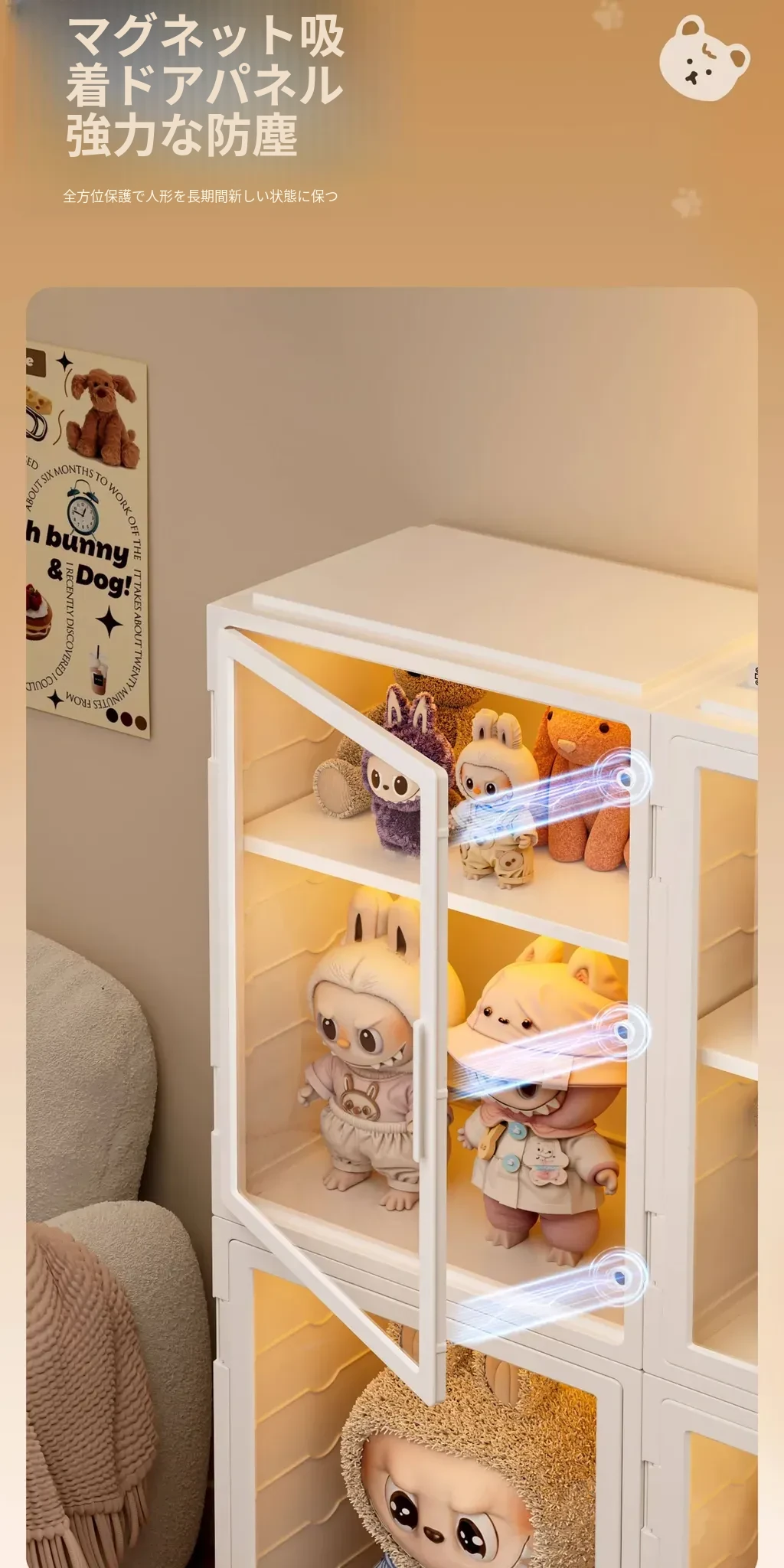 クリームホワイト-1個入り【マグネット吸着高透過ドアパネル】