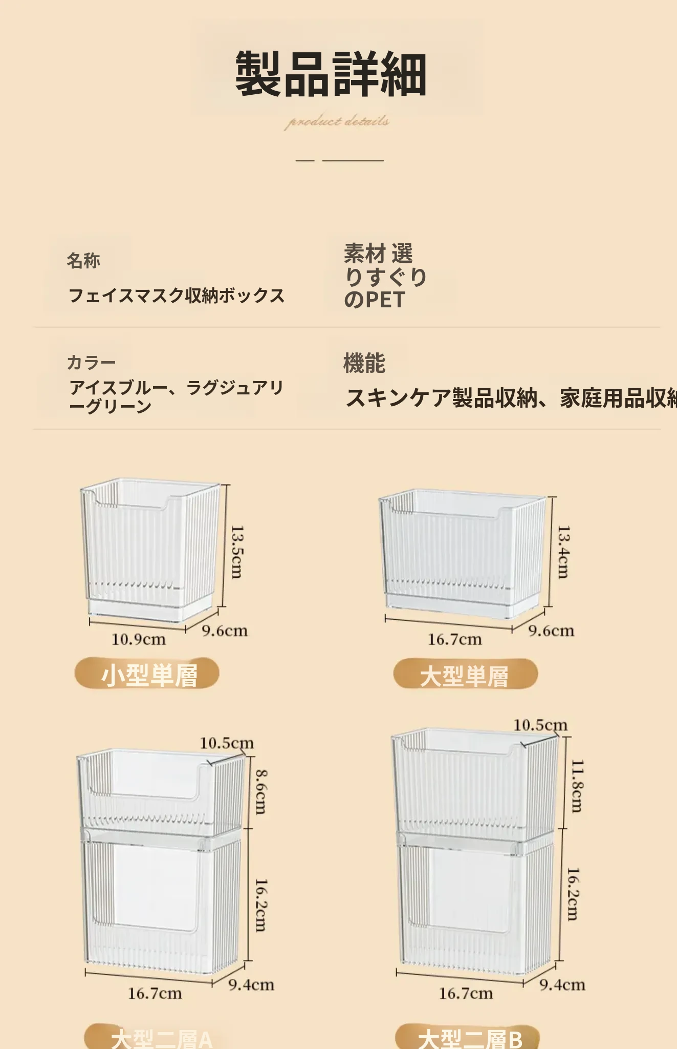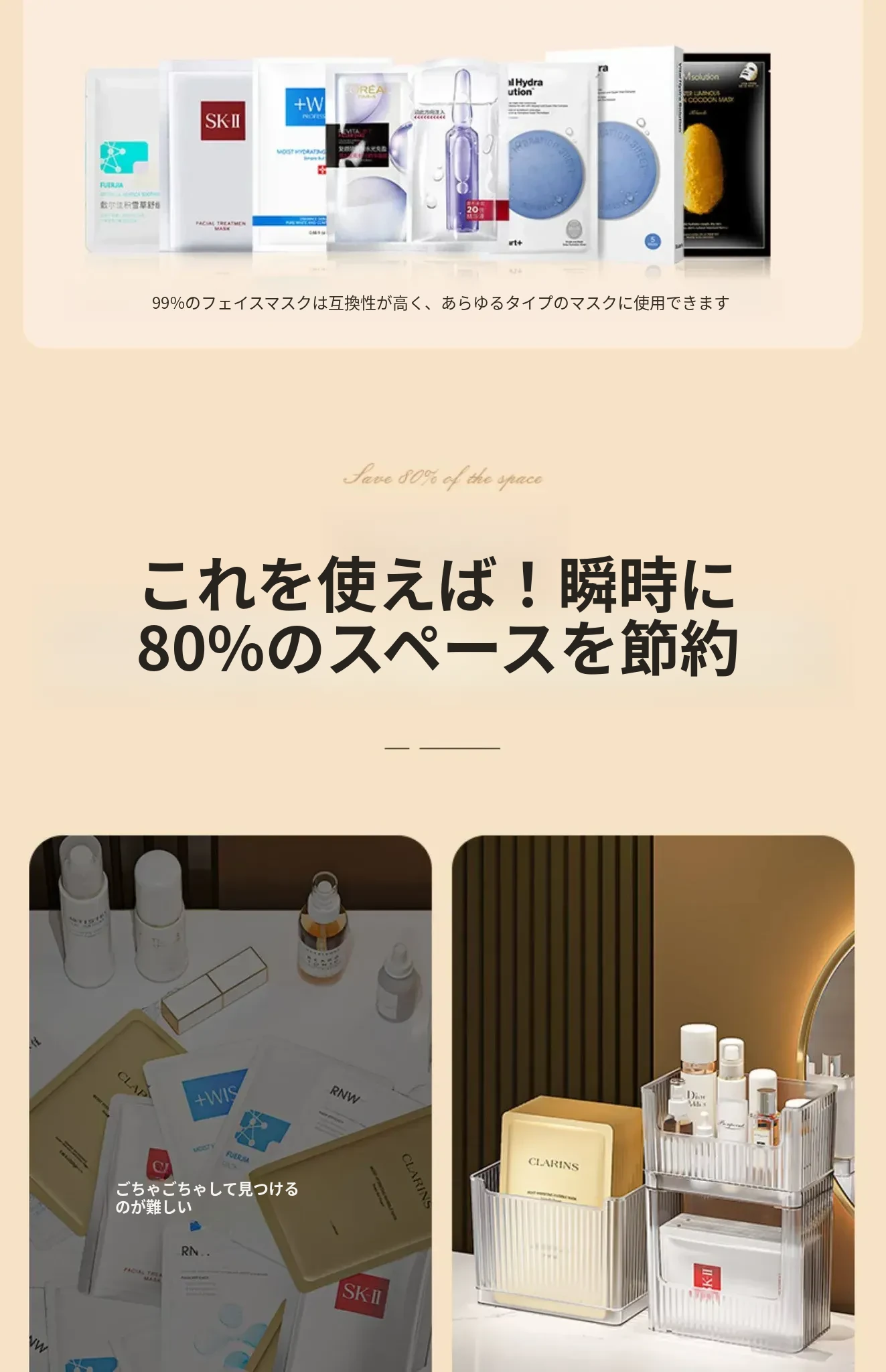 アイスクリスタルカラー二層B型❤化粧品、フェイスマスクを上下重ねて収納