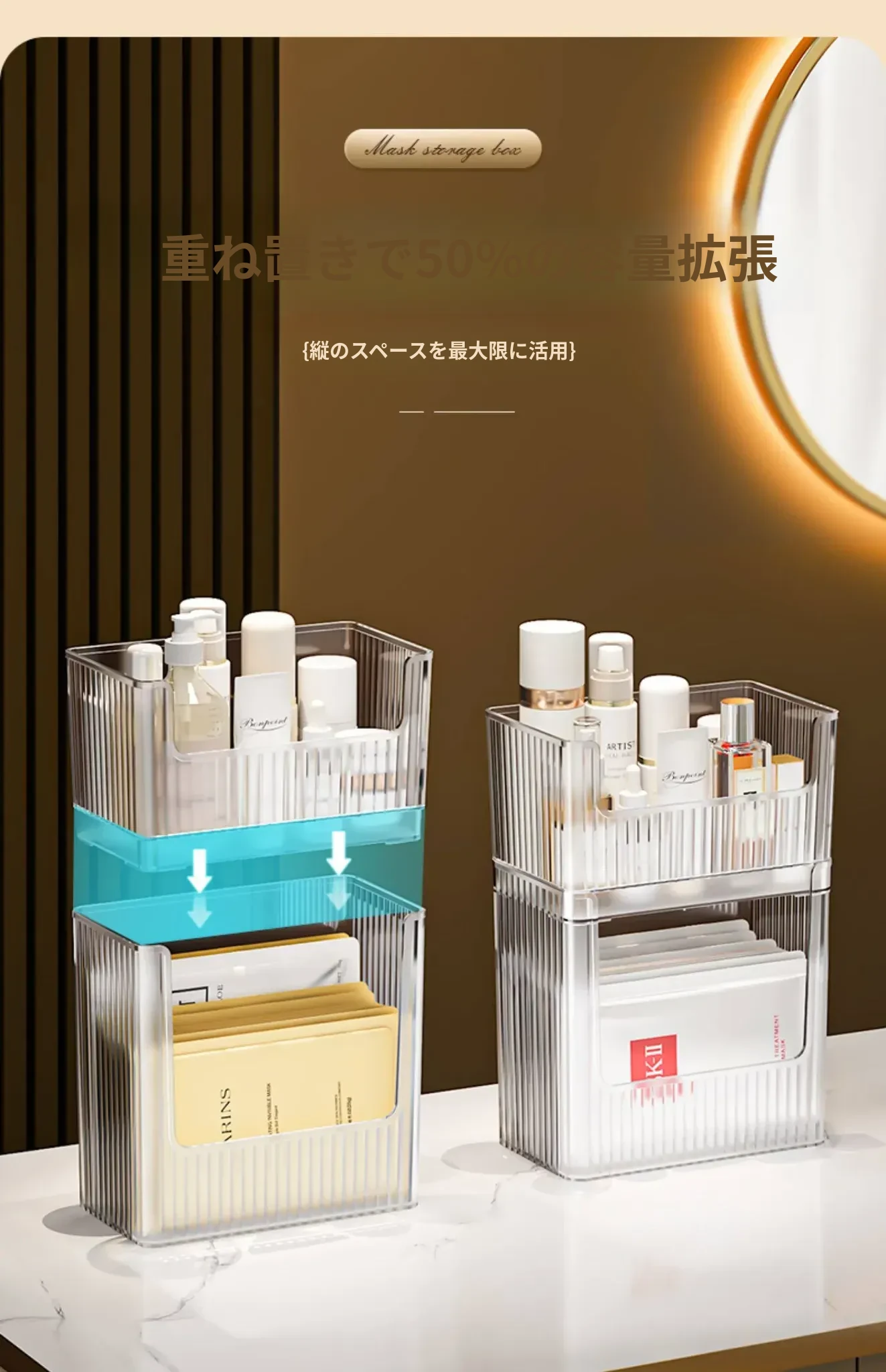 アイスクリスタルカラー二層A型❤化粧品、フェイスマスクを上下重ねて収納