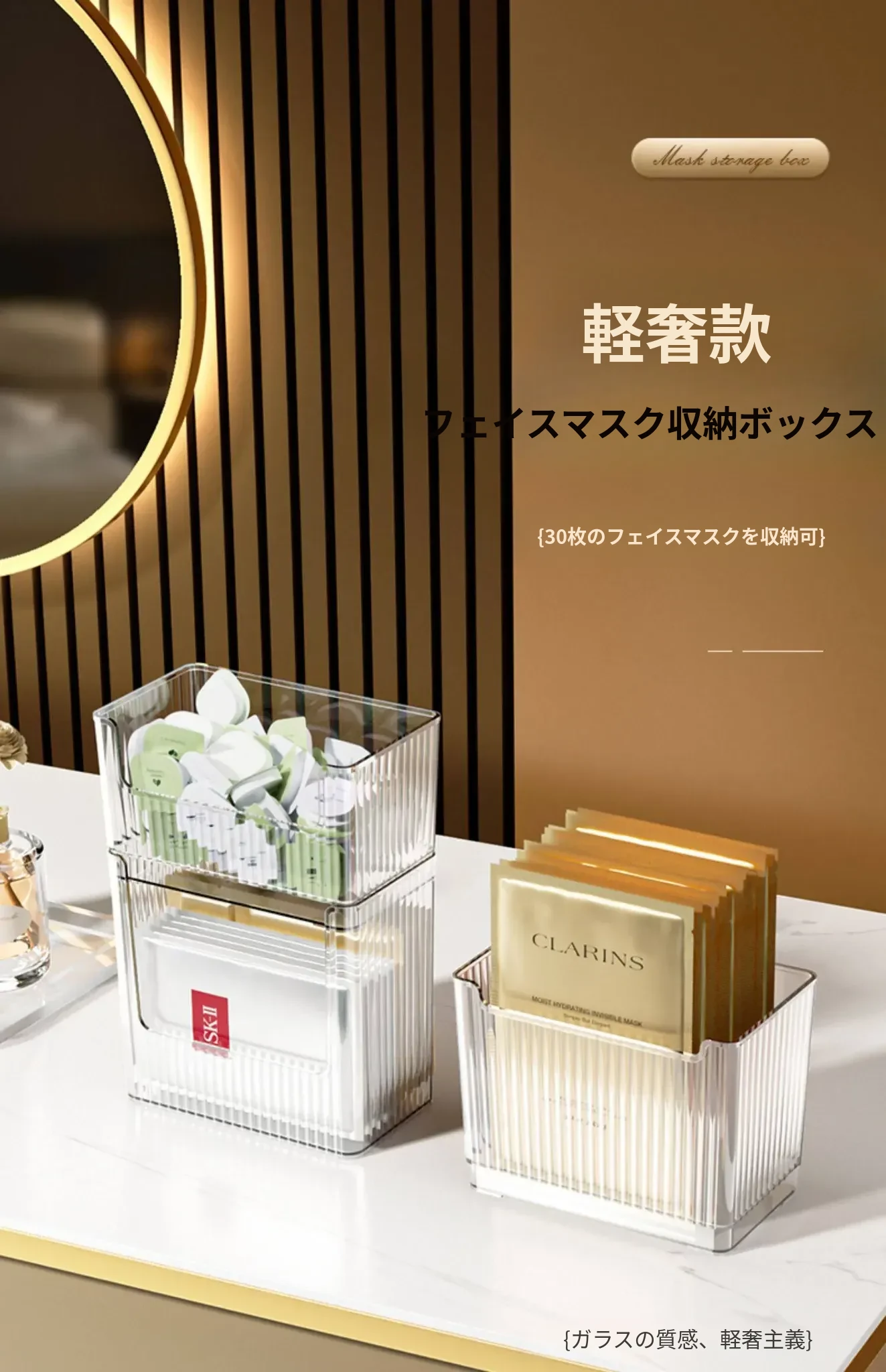フェイスマスク収納ボックス メイクアップ用リップスティックデスクオーガナイザー 寝室のドレッサーやバスルームに最適なスキンケアアイテムラック!整理整頓で美しさを引き出す!
