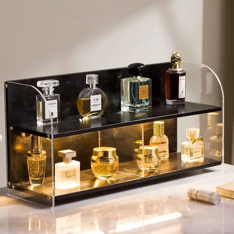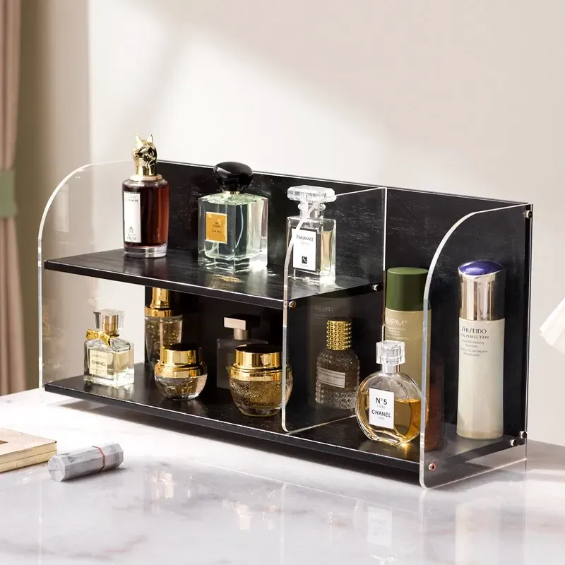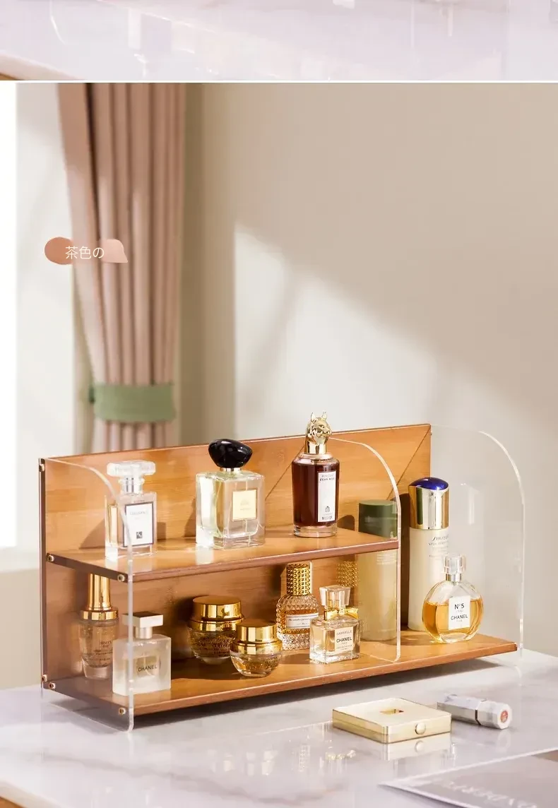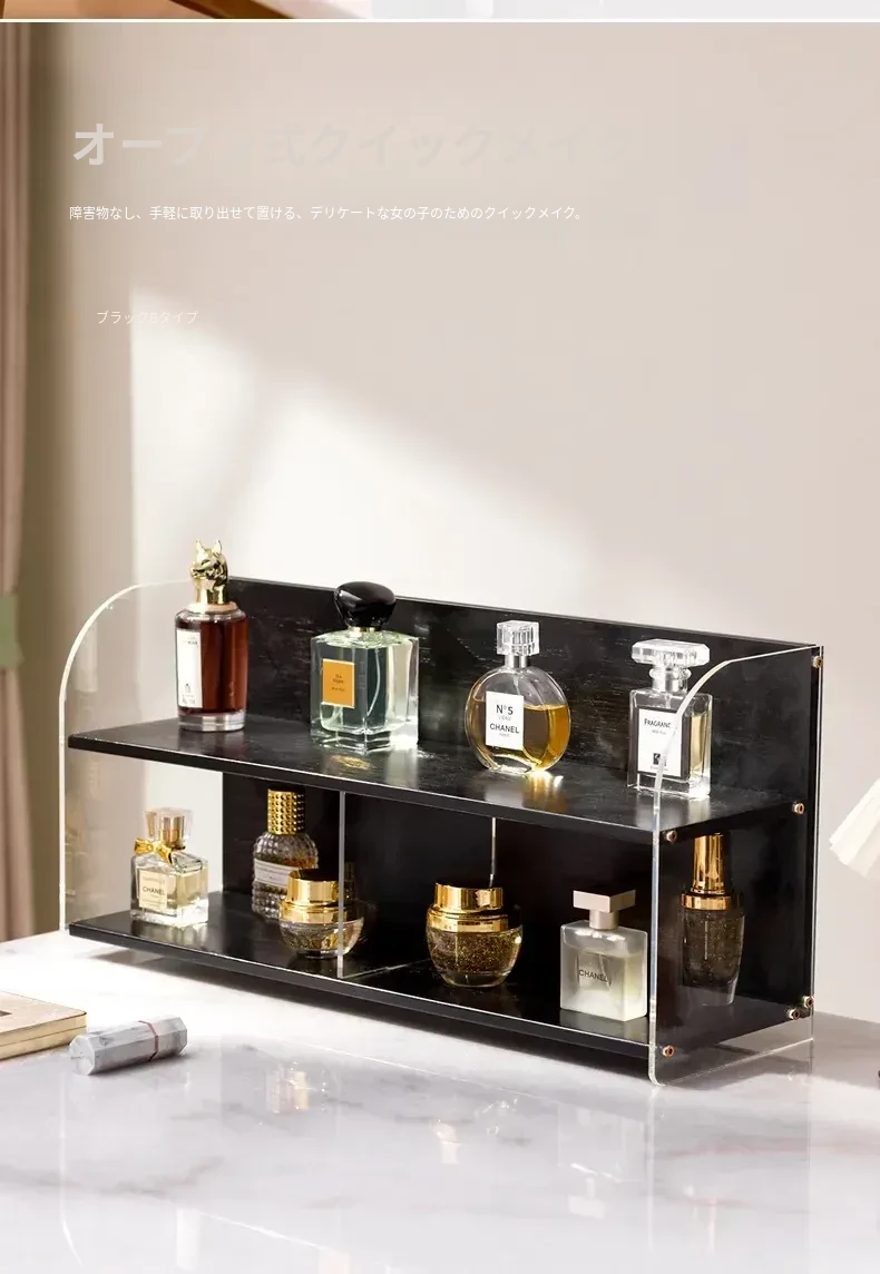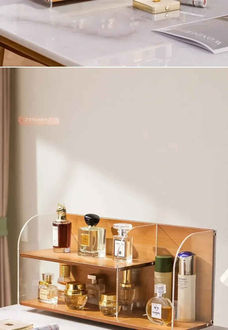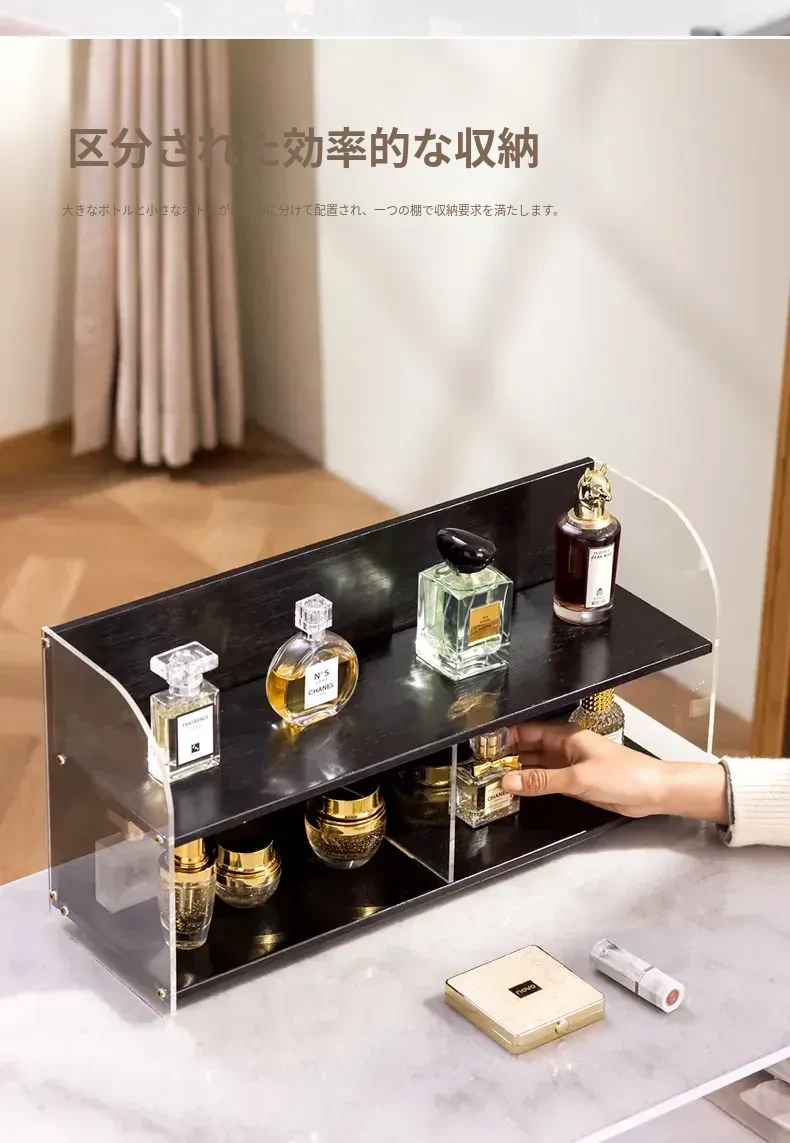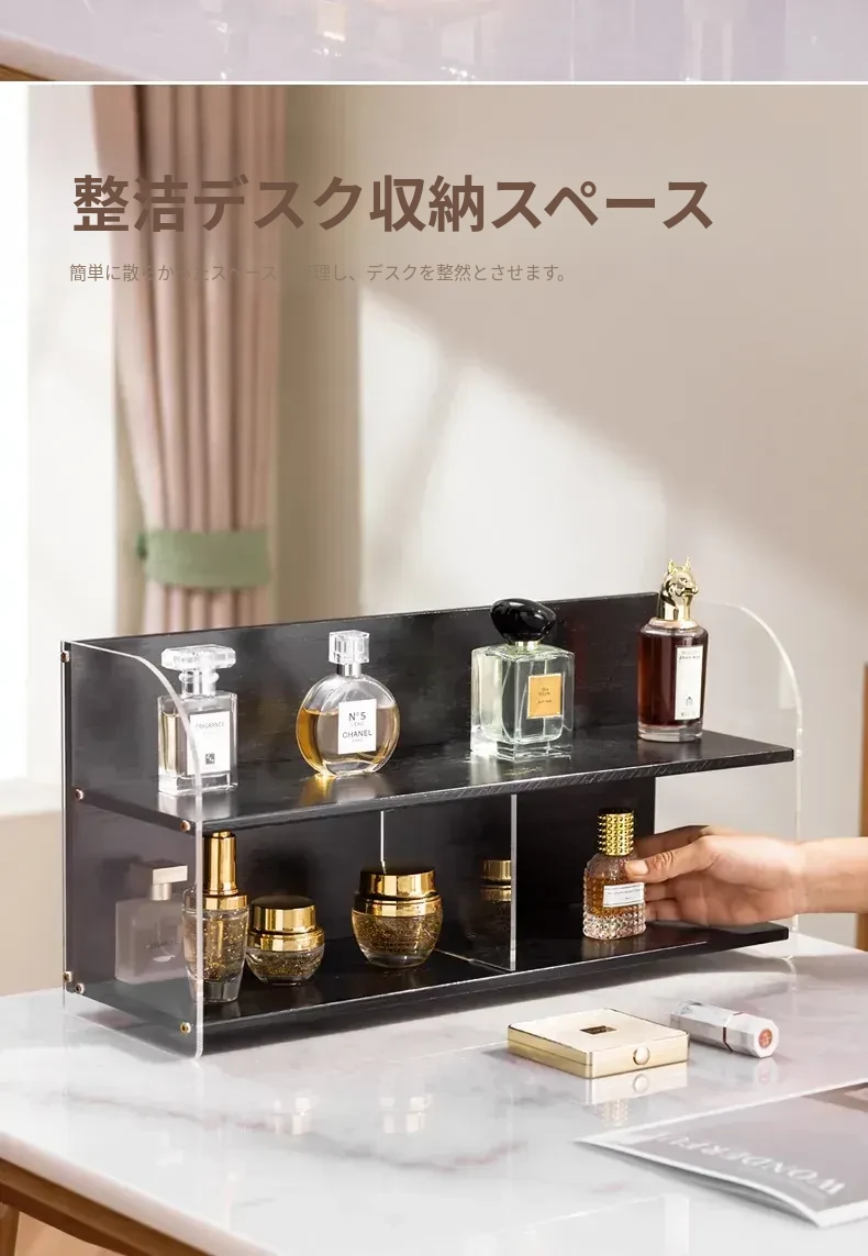 DecoHub化粧品収納ボックス - デスクトップ用スキンケア整理トレイ、口紅置き、アクリル透明ブラシで美しさを引き立てる!おしゃれで機能的なメイク道具収納、あなたのビューティースペースをグレードアップ!