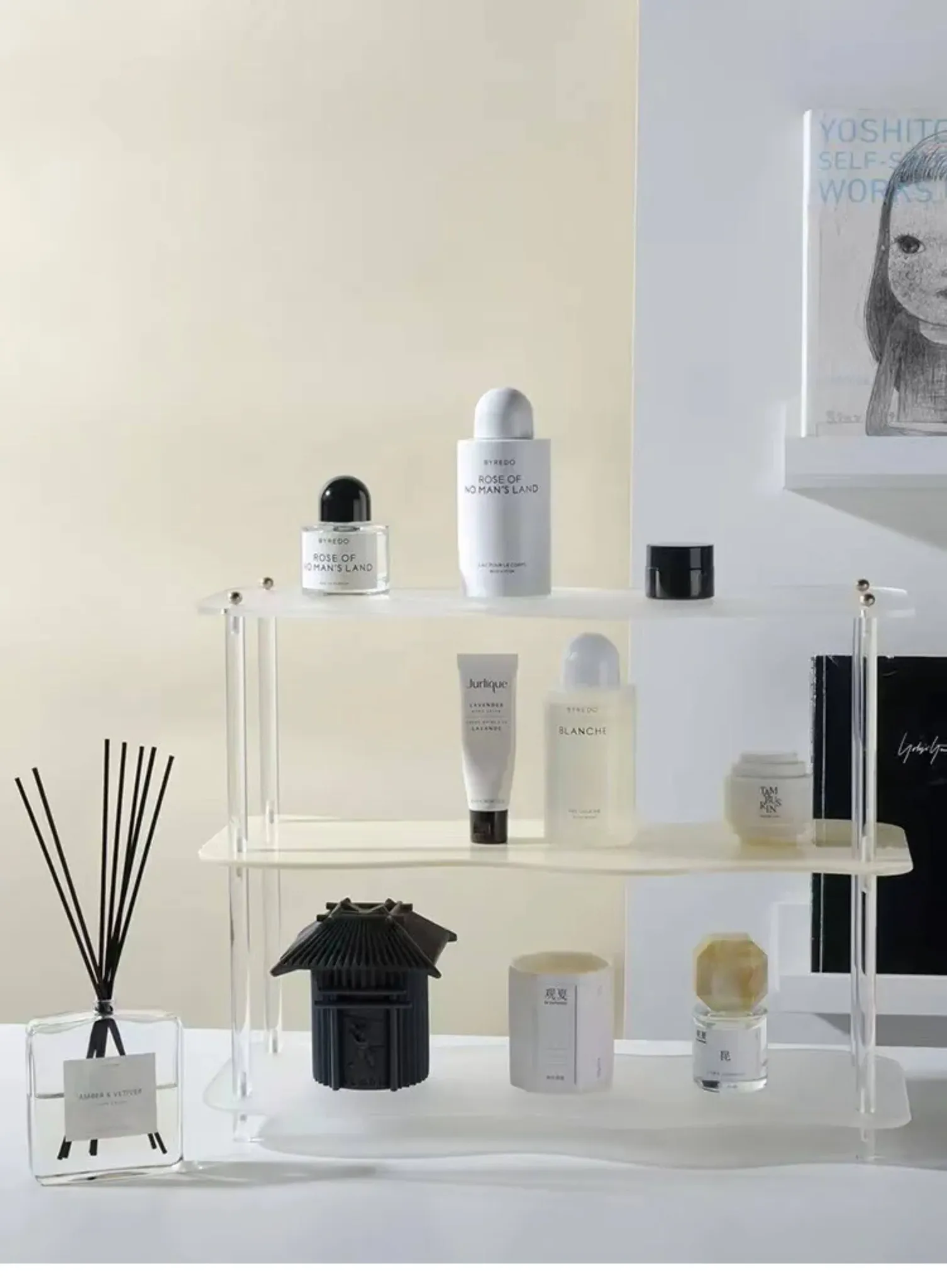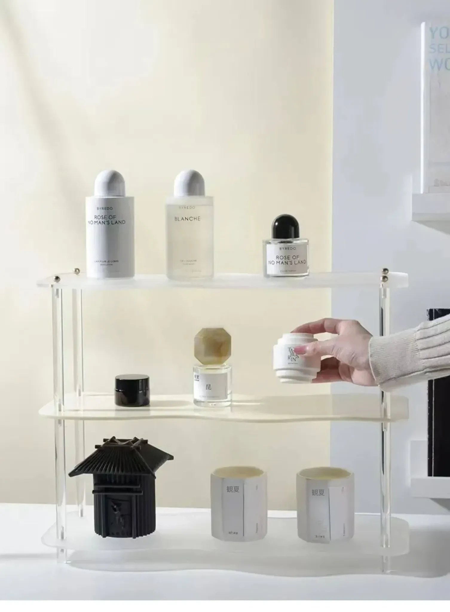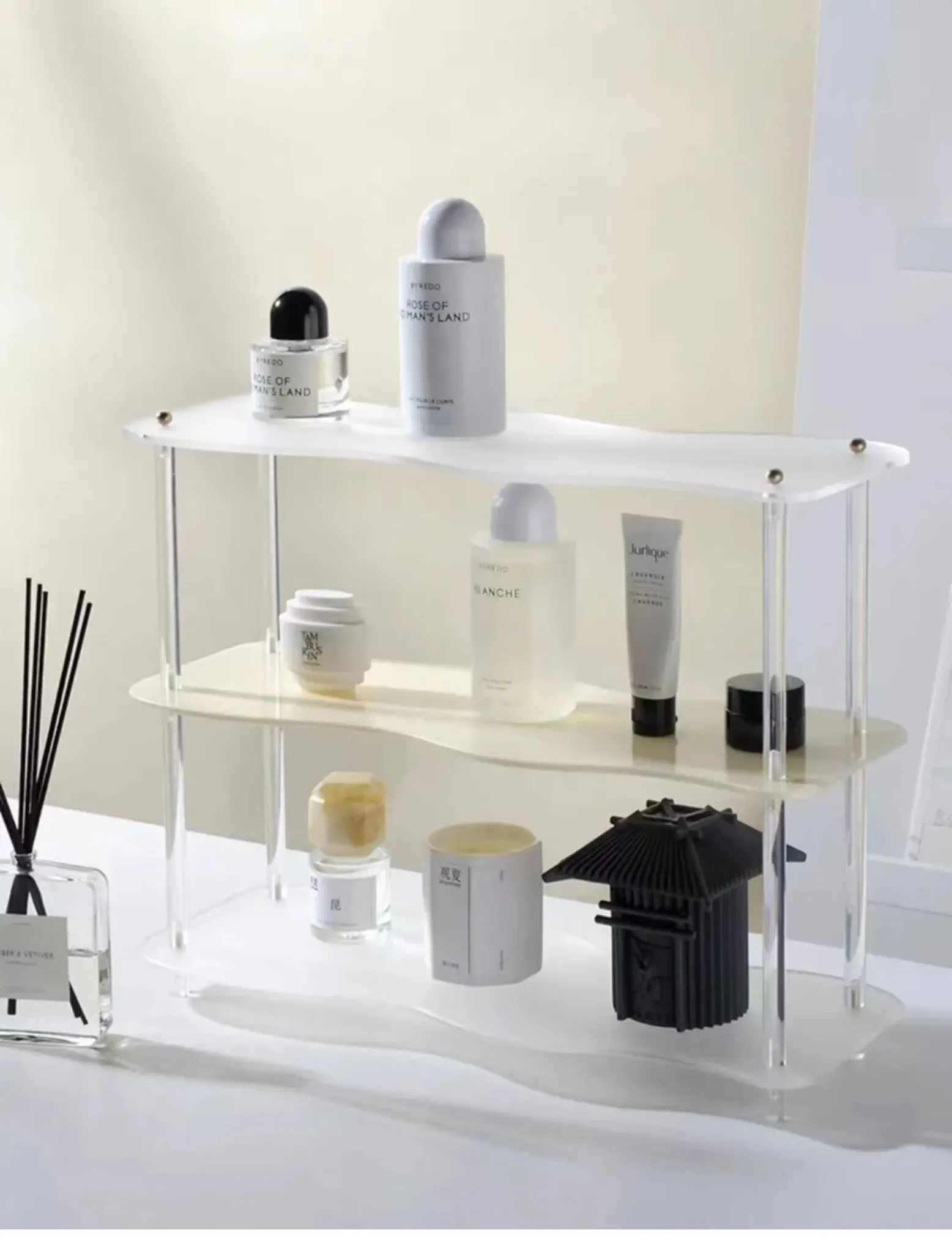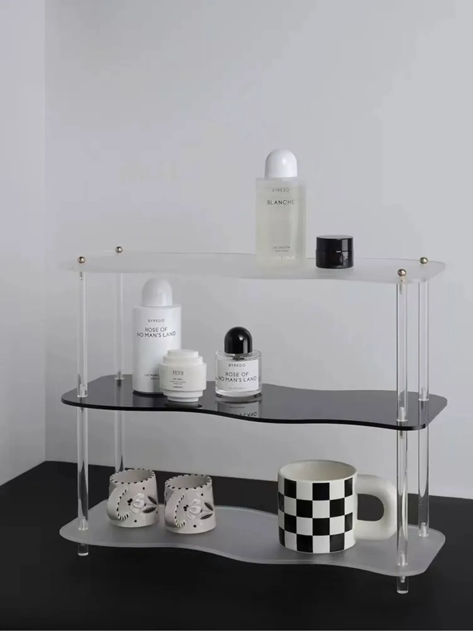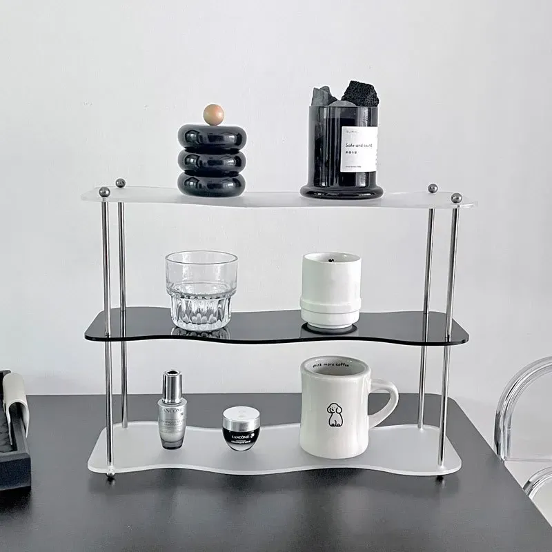 DecoHub バウハウス アクリル収納ラック - テーブル上のマグカップ、化粧品、香水、茶杯を美しく整理!バスルームやリビングに最適な多層デザインで、スタイリッシュな空間を実現します。