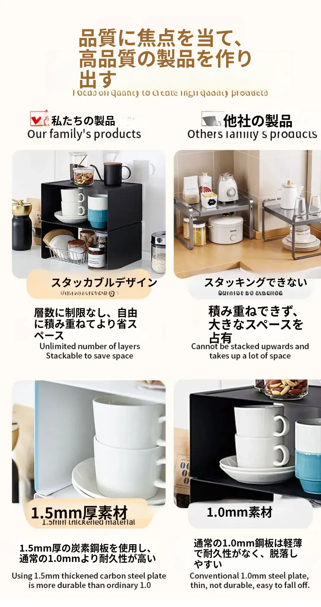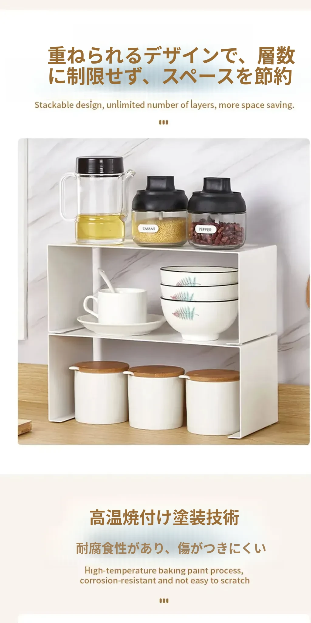 デコハブ キッチン スパイスラック 角型多機能テーブル収納 コーヒーカップ オーガナイザー 重ねて使えるマグカップ収納!使いやすさとスタイルを兼ね備えたキッチンアイテムで、あなたの料理空間を彩ります!