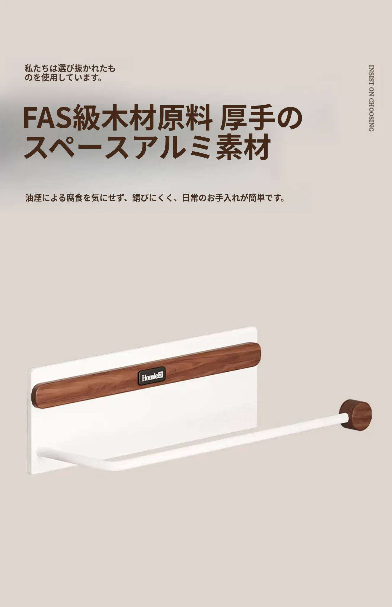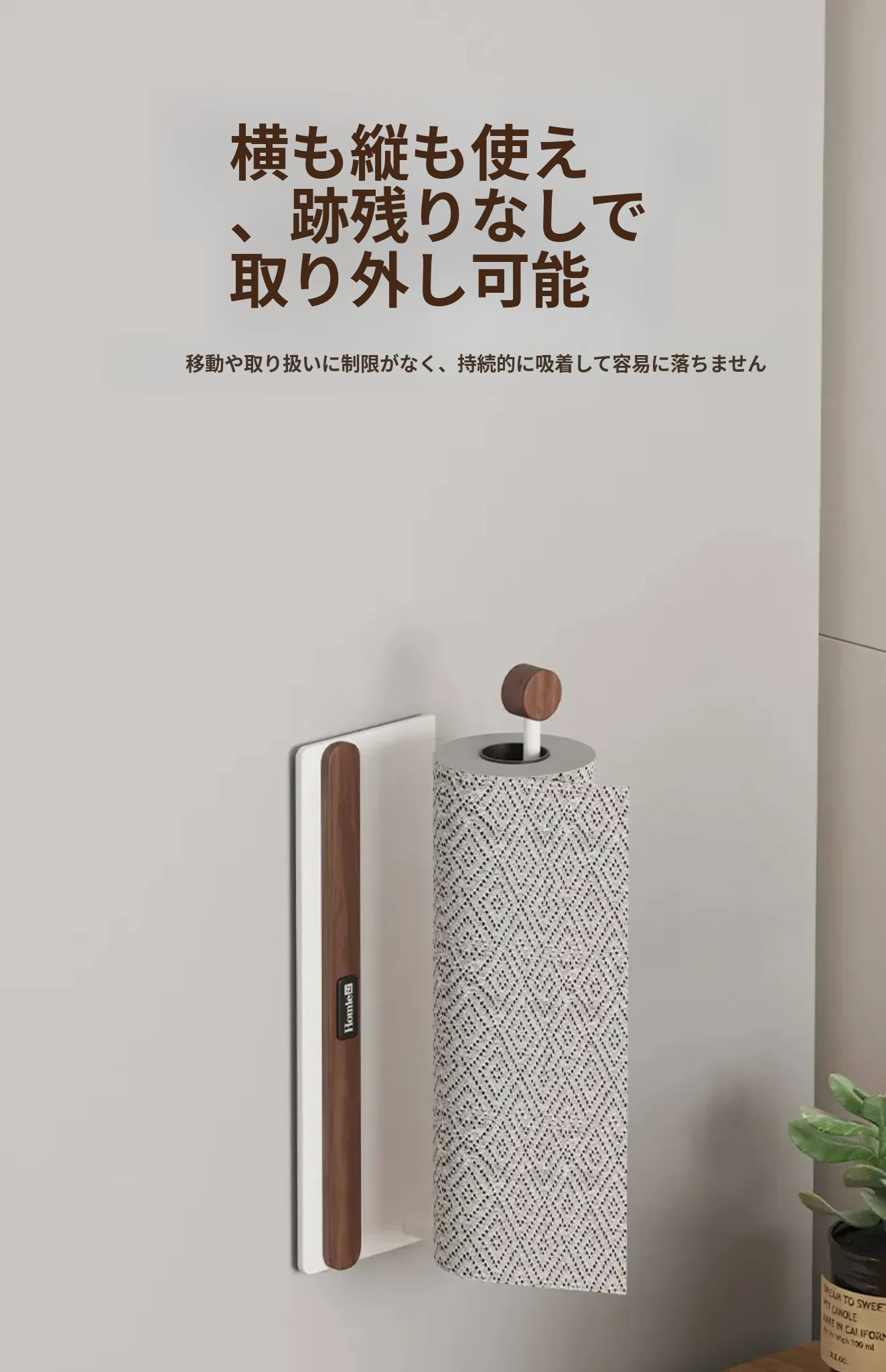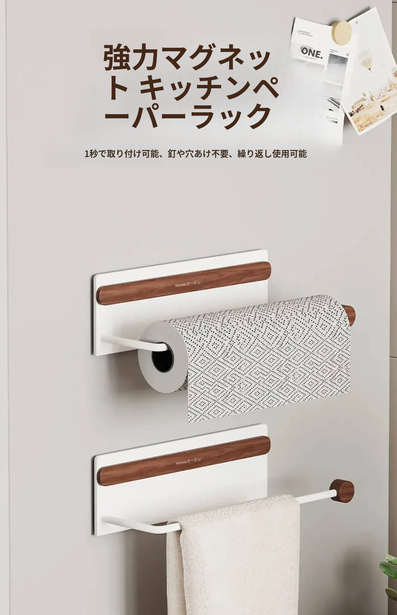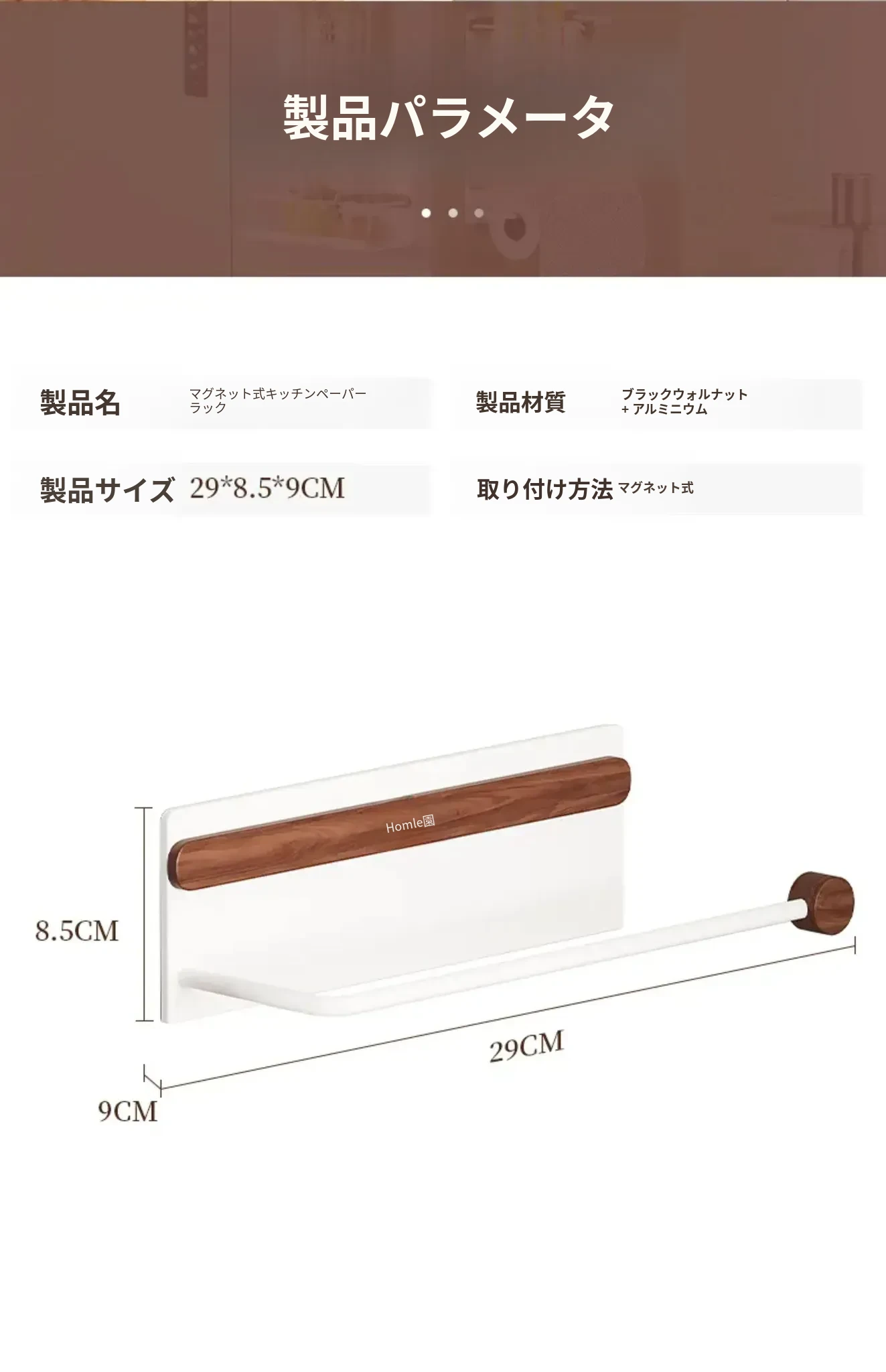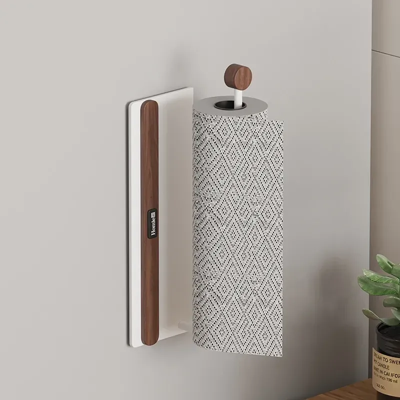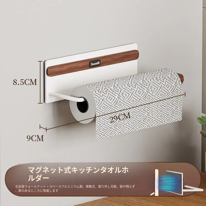 【北米ウォールナット+宇宙アルミ】マグネット吸着キッチンペーパーラック