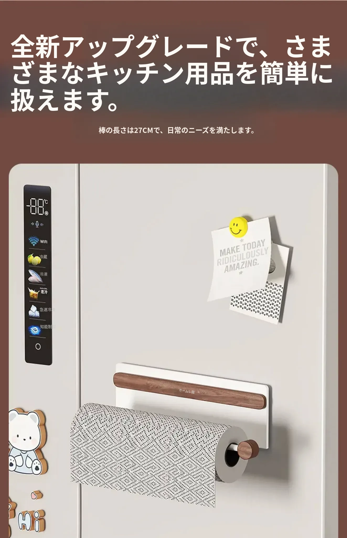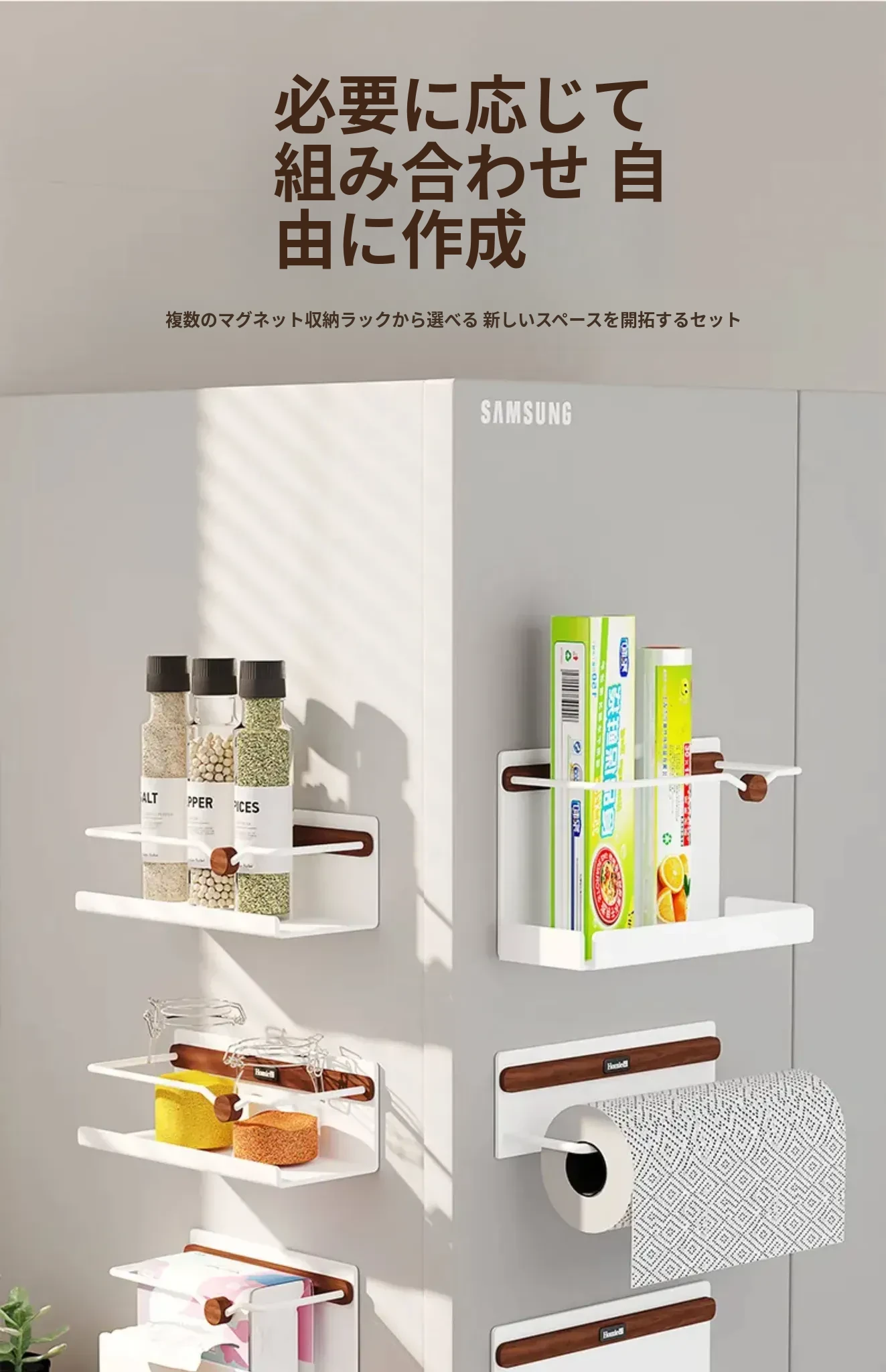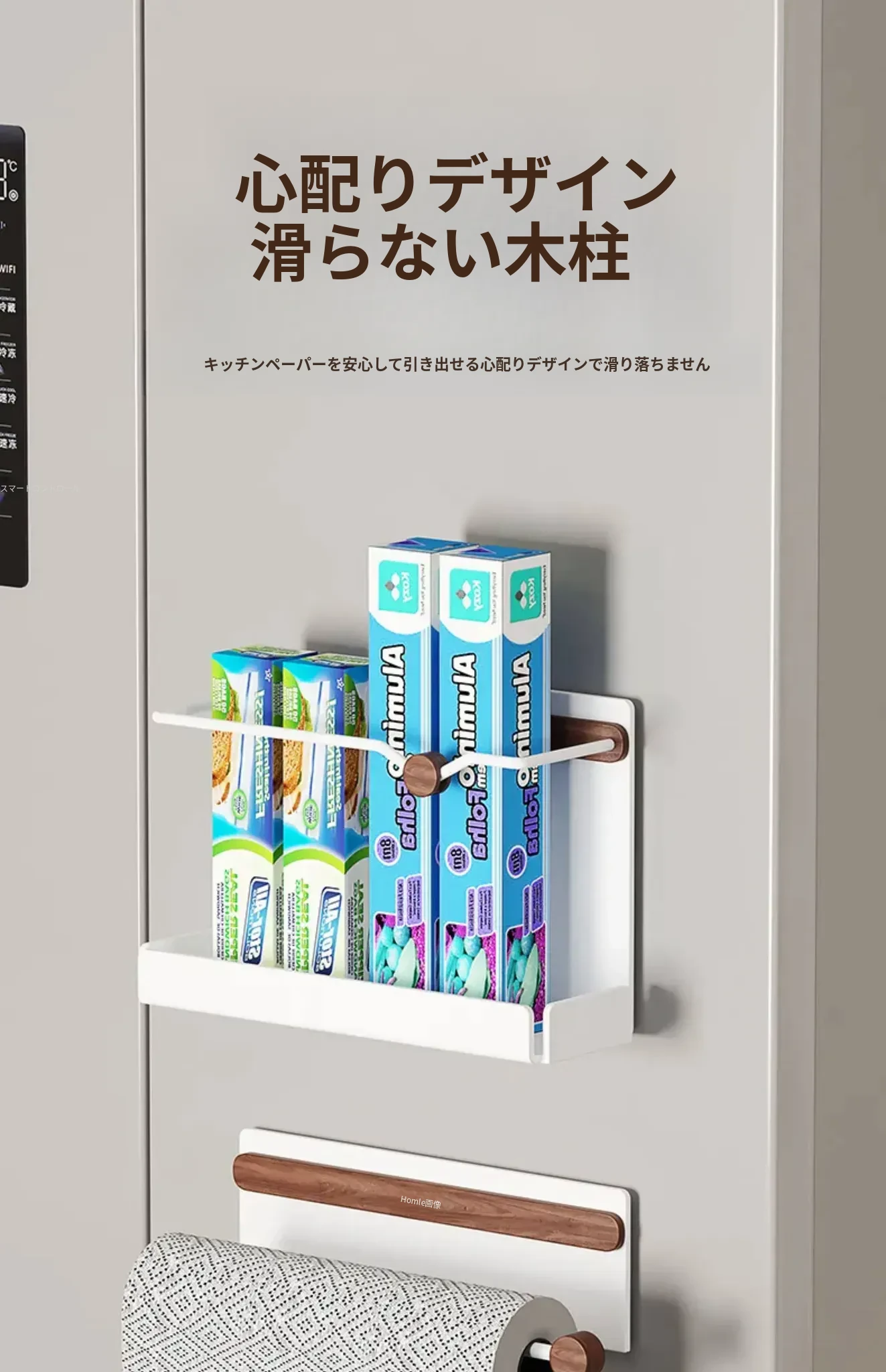 デコハブ キッチン冷蔵庫用 マグネット式 キッチンペーパー ホルダー 壁掛けタイプ キャビネットサイド 収納棚 サランラップも整理整頓!使いやすさ抜群の便利アイテム!