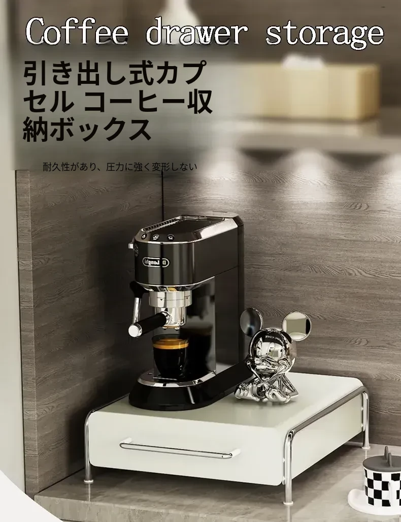 DecoHub中古風侘寂スタイルのカプセルコーヒー&ティーバッグ収納ボックス - おしゃれなコーヒーメーカー用引き出し&オーガナイザーで、キッチンをスッキリ整頓!