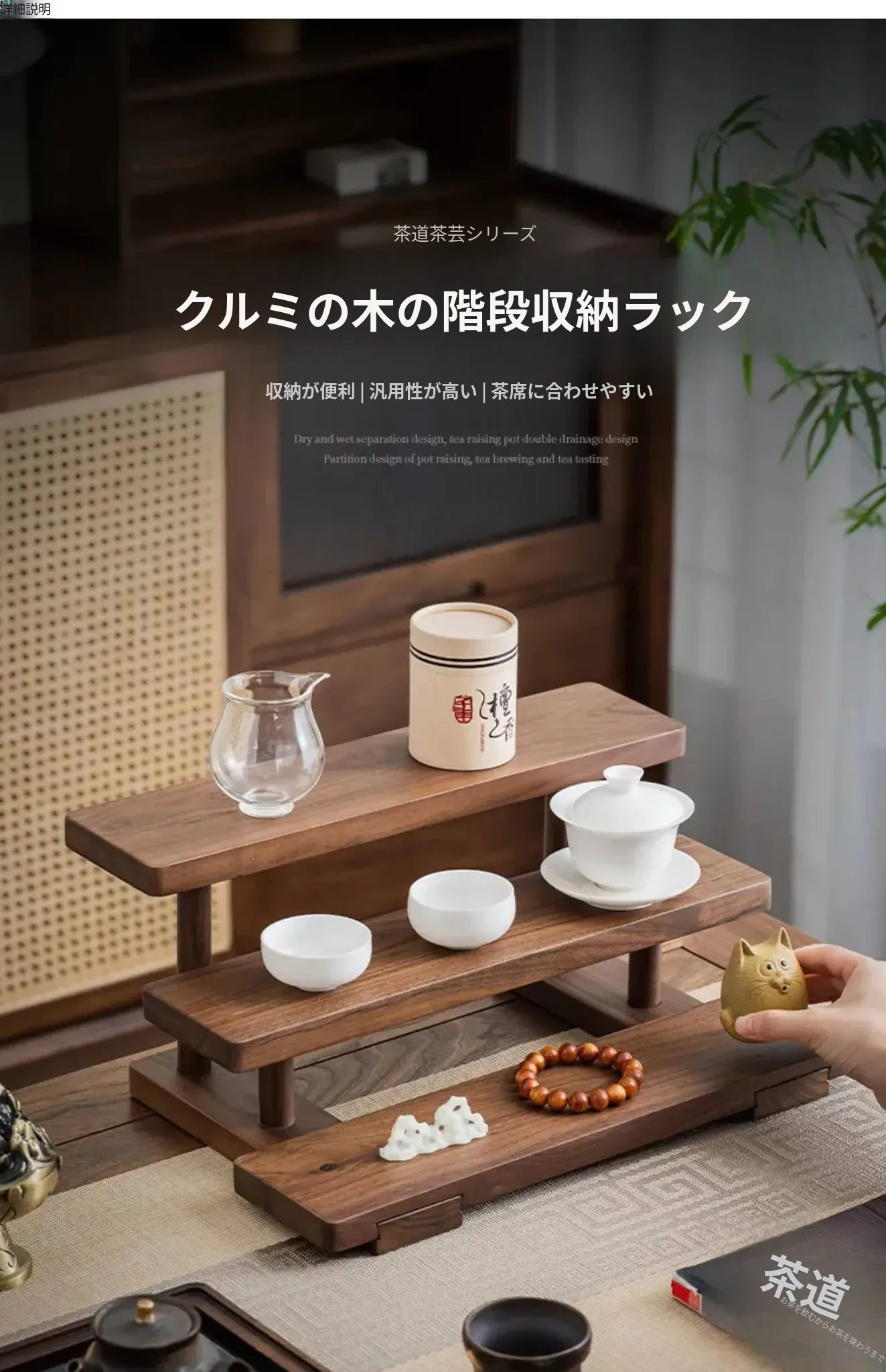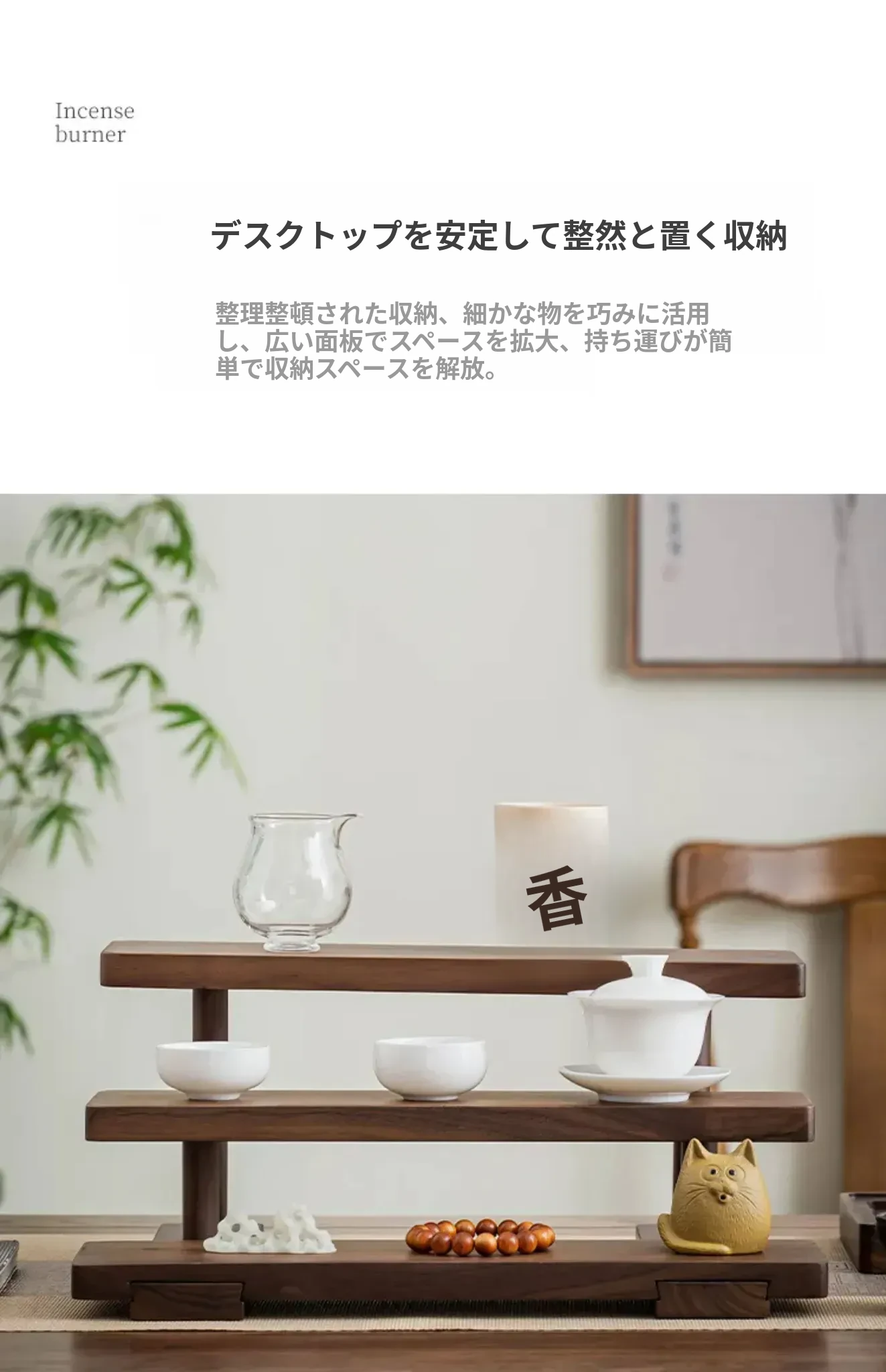 デコハブ ウォールナット製 ティーカップスタンド おしゃれなティー用品収納ラック 高級感溢れるデザインの実木製 小型テーブル用 茶葉整理に最適!