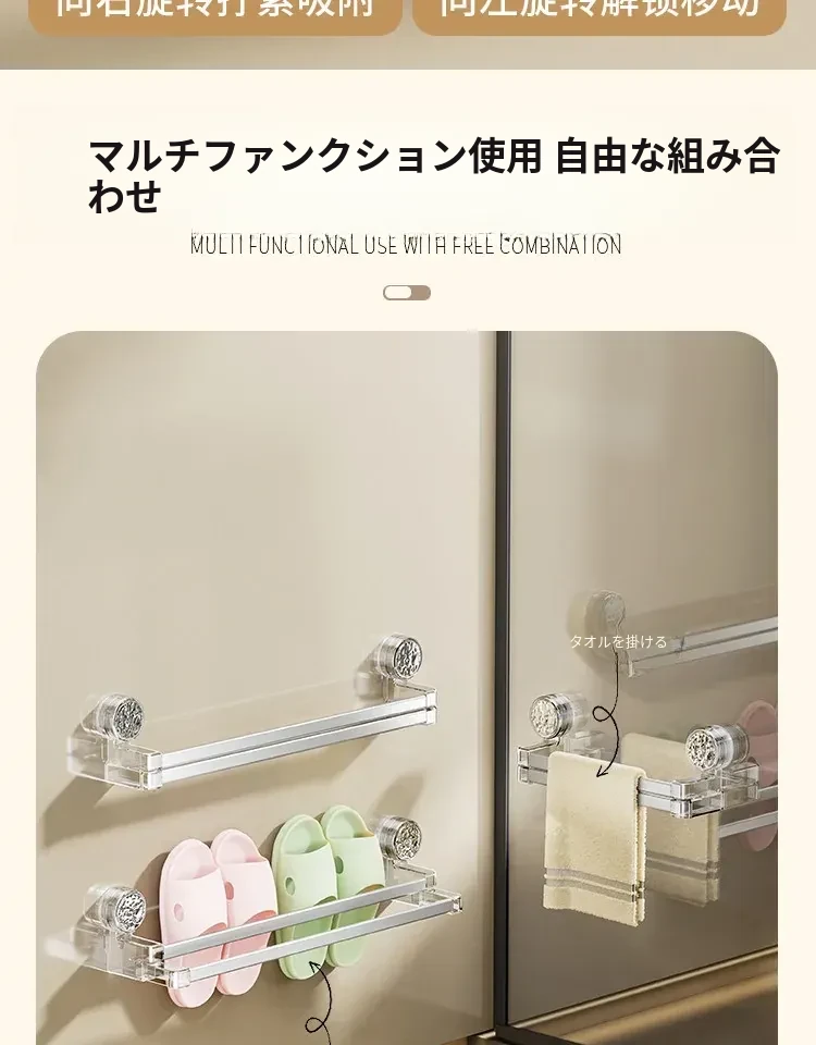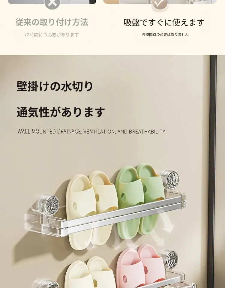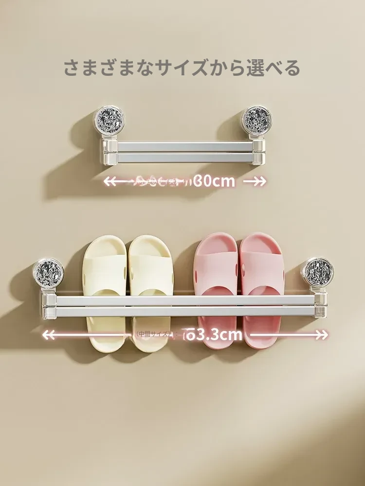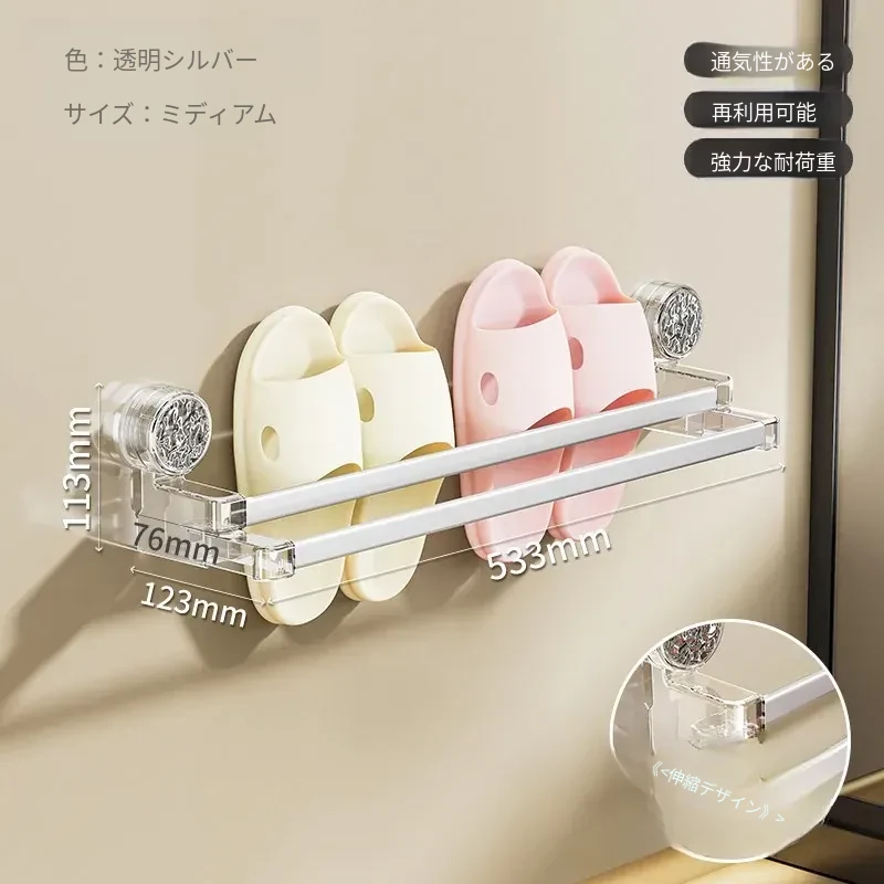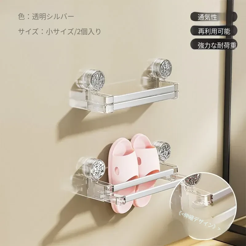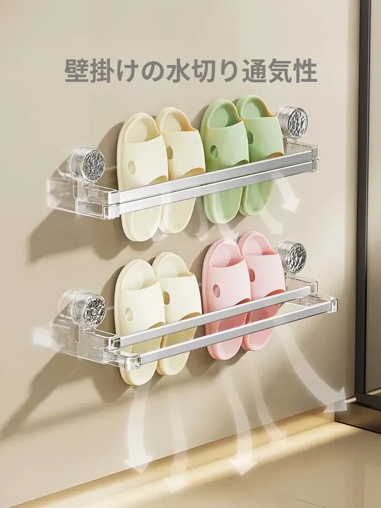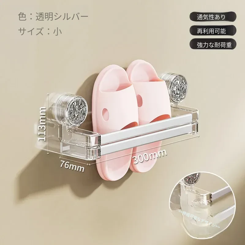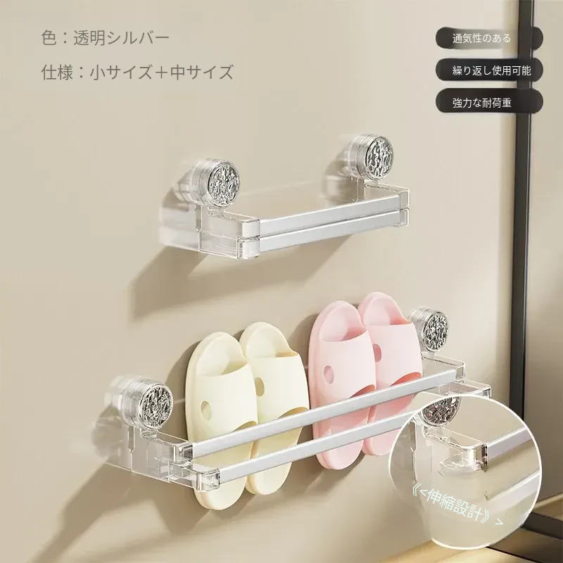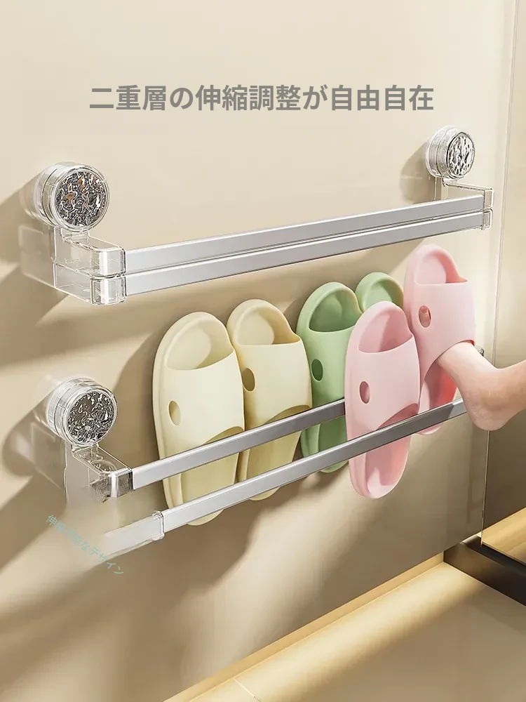吸盤付きバスルームスリッパハンガー - 伸縮可能な二段式トイレ用壁掛け、穴あけ不要で水切り効果抜群!清潔で便利な衛生管理を実現します。