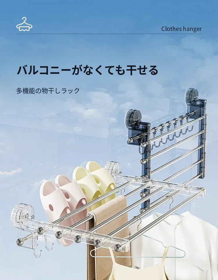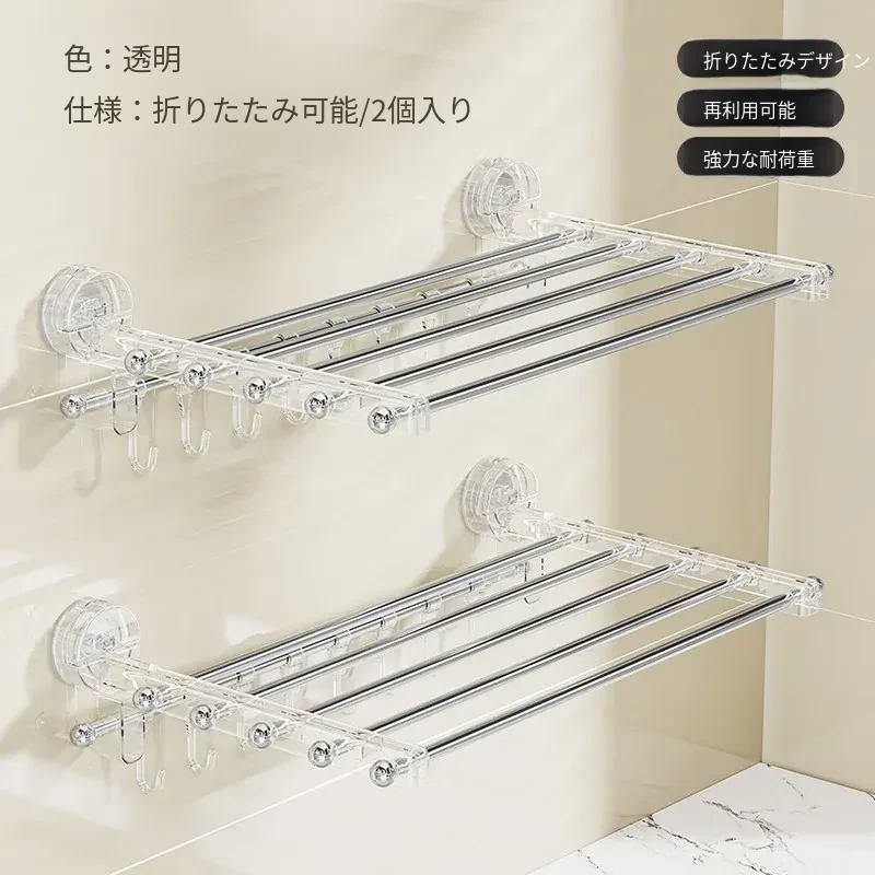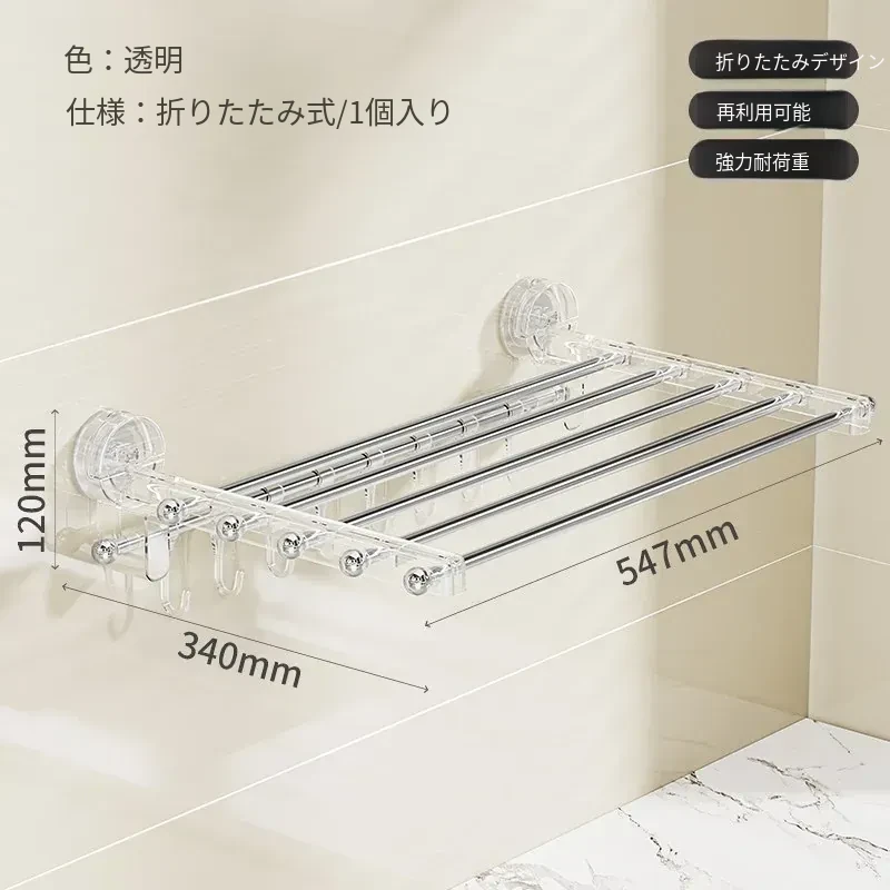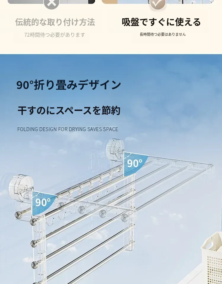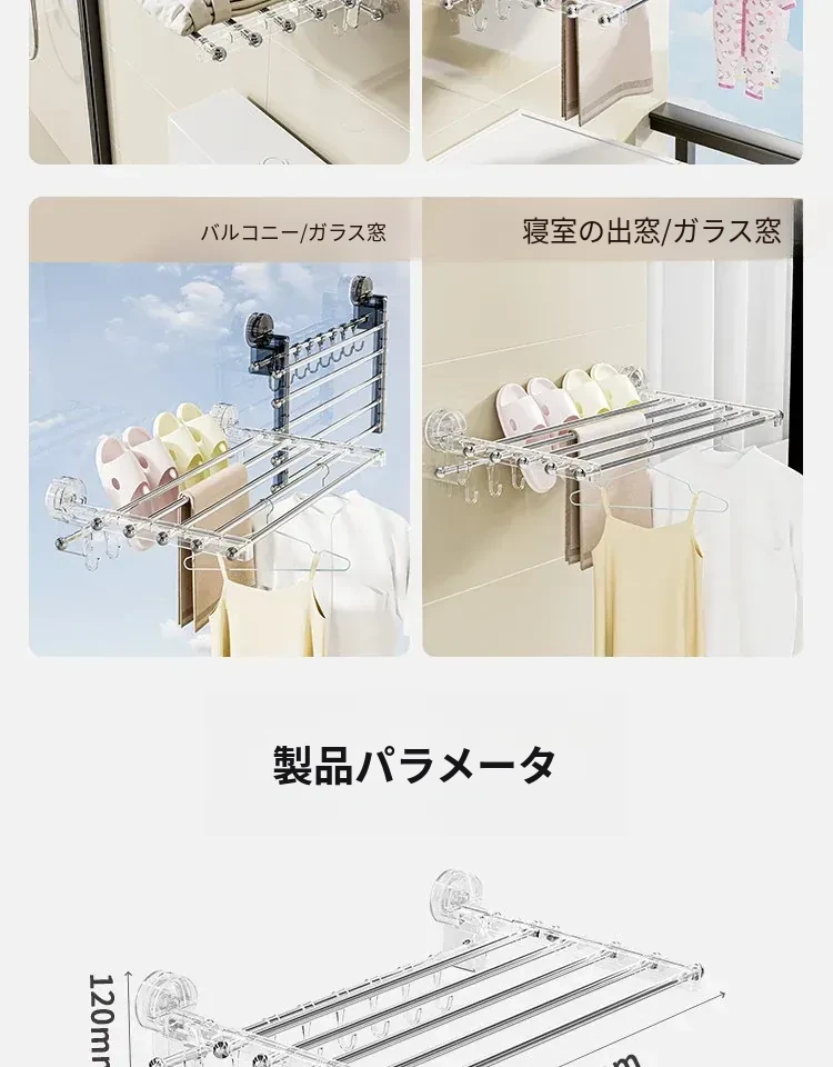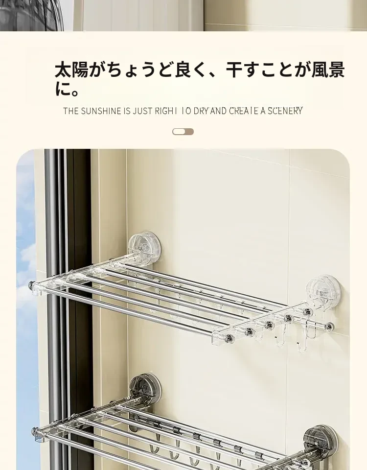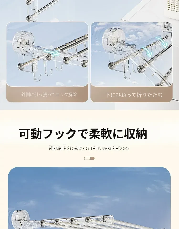 吸盤式折りたたみ物干しハンガー - 穴を開けずに使える家庭用インナーウェア、靴下、バルコニーや窓ガラスにぴったりの便利アイテム!おしゃれな収納で、毎日の洗濯がもっと楽しくなる!