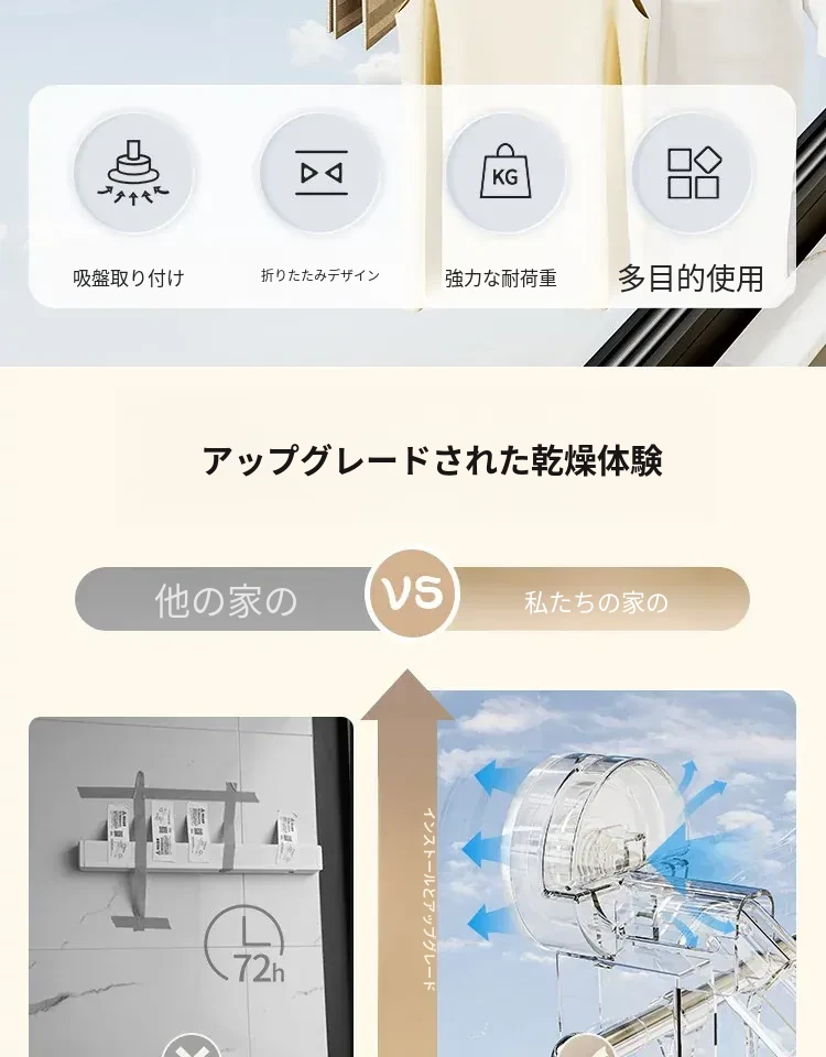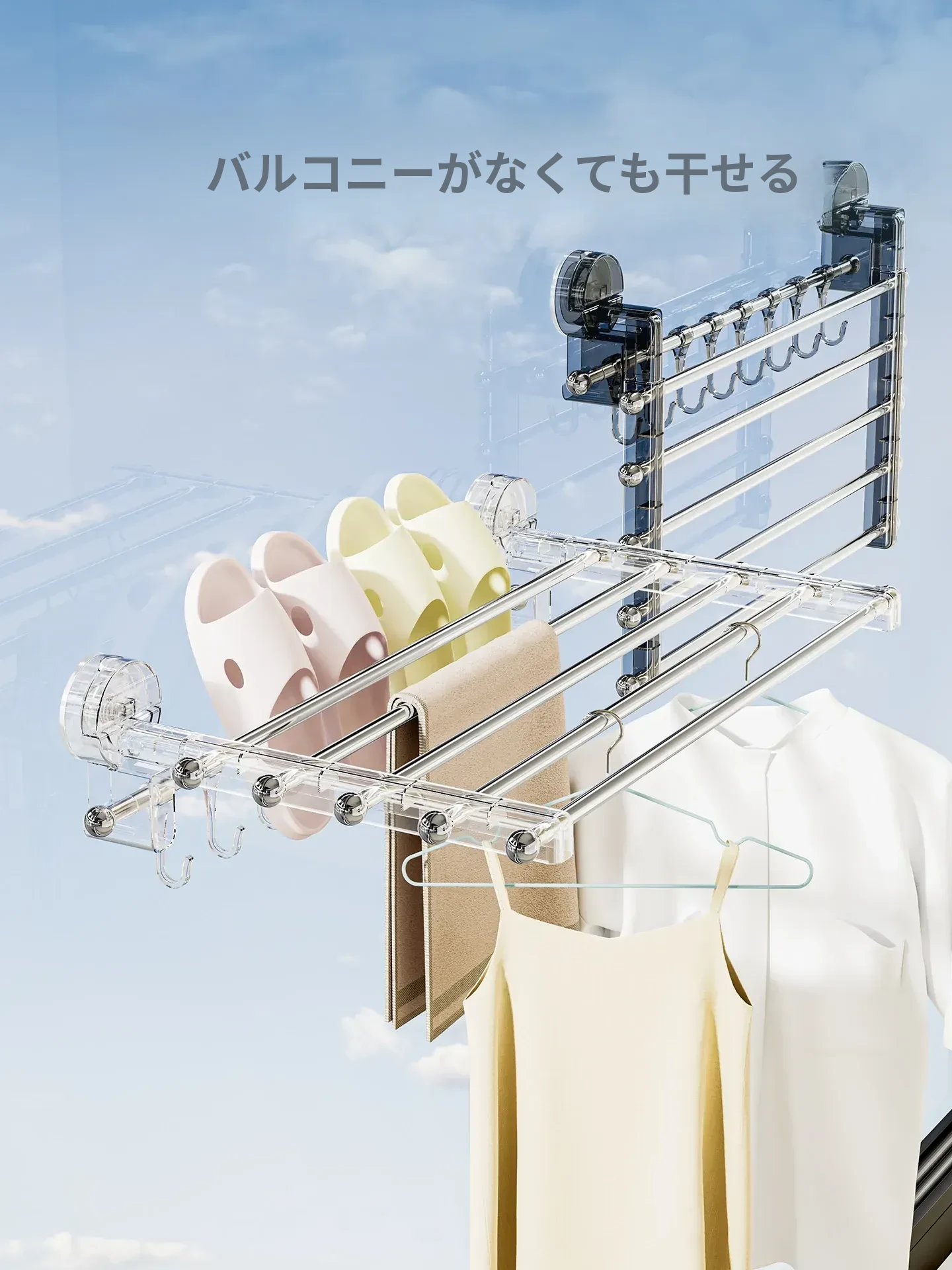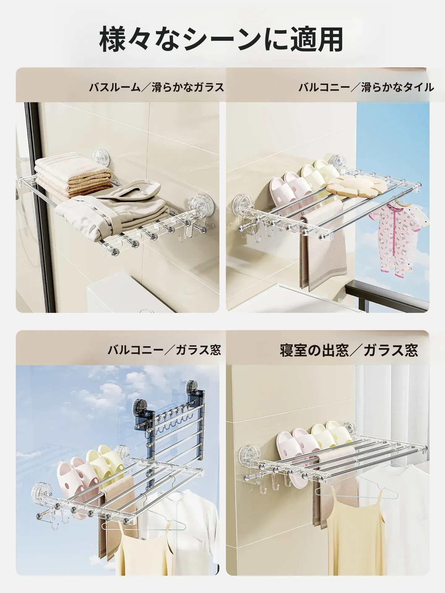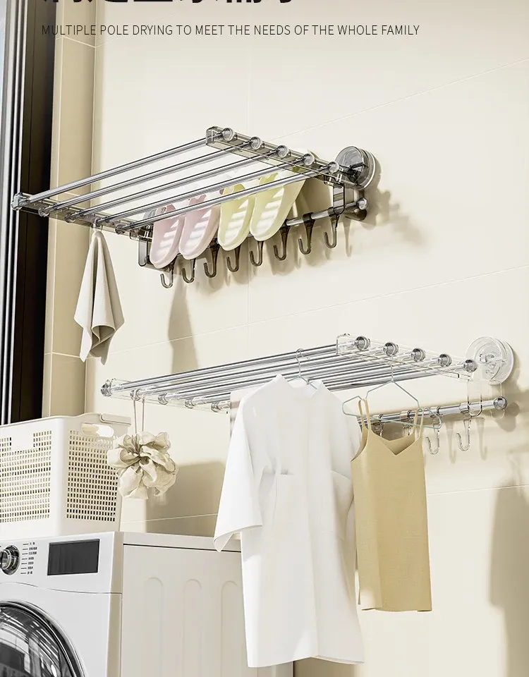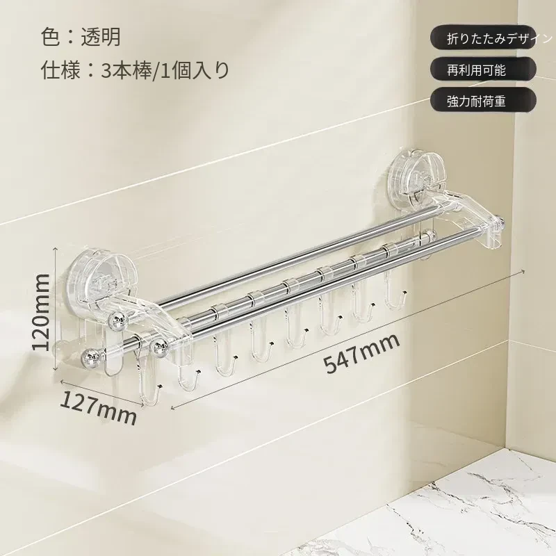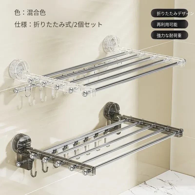 吸盤式折りたたみ物干しハンガー - 穴を開けずに使える家庭用インナーウェア、靴下、バルコニーや窓ガラスにぴったりの便利アイテム!おしゃれな収納で、毎日の洗濯がもっと楽しくなる!