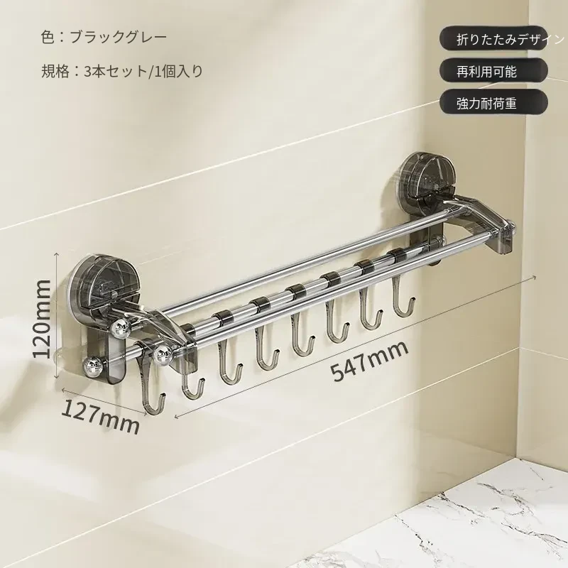 【黒灰】アップグレード3本⭐フック付き/吸盤