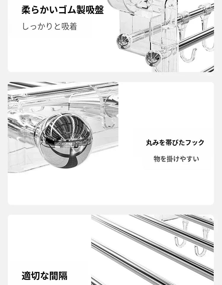 【透明】アップグレード3本⭐フック付き/吸盤