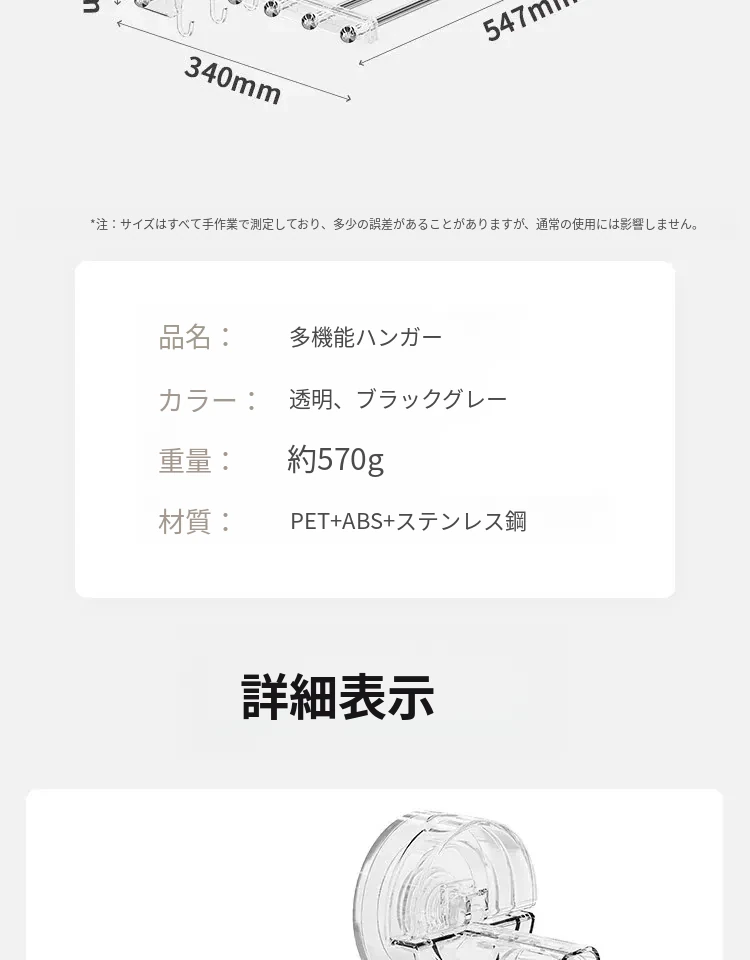 【透明】アップグレード6本⭐フック付き/折りたたみ可