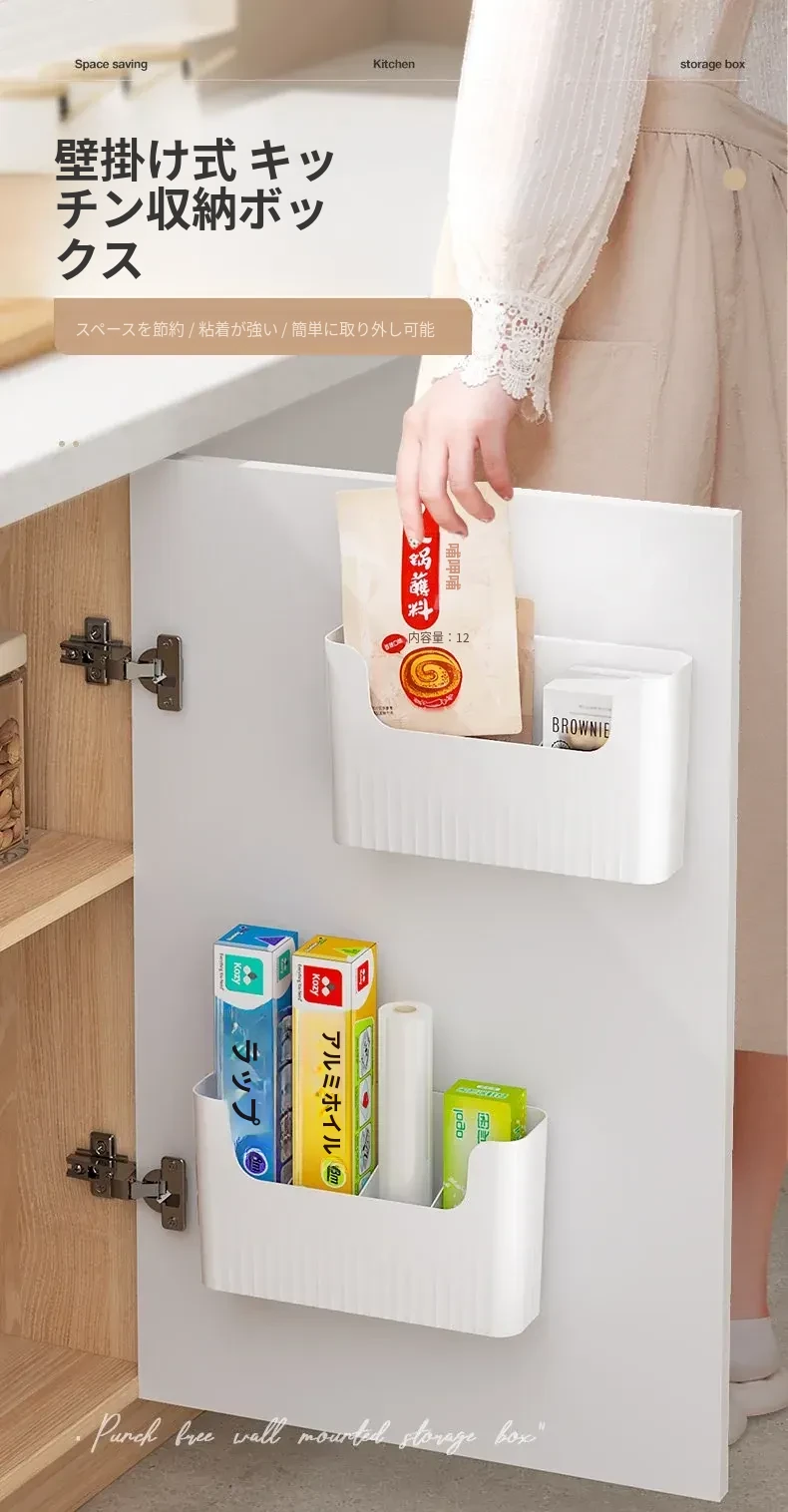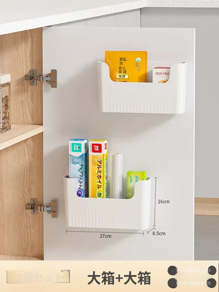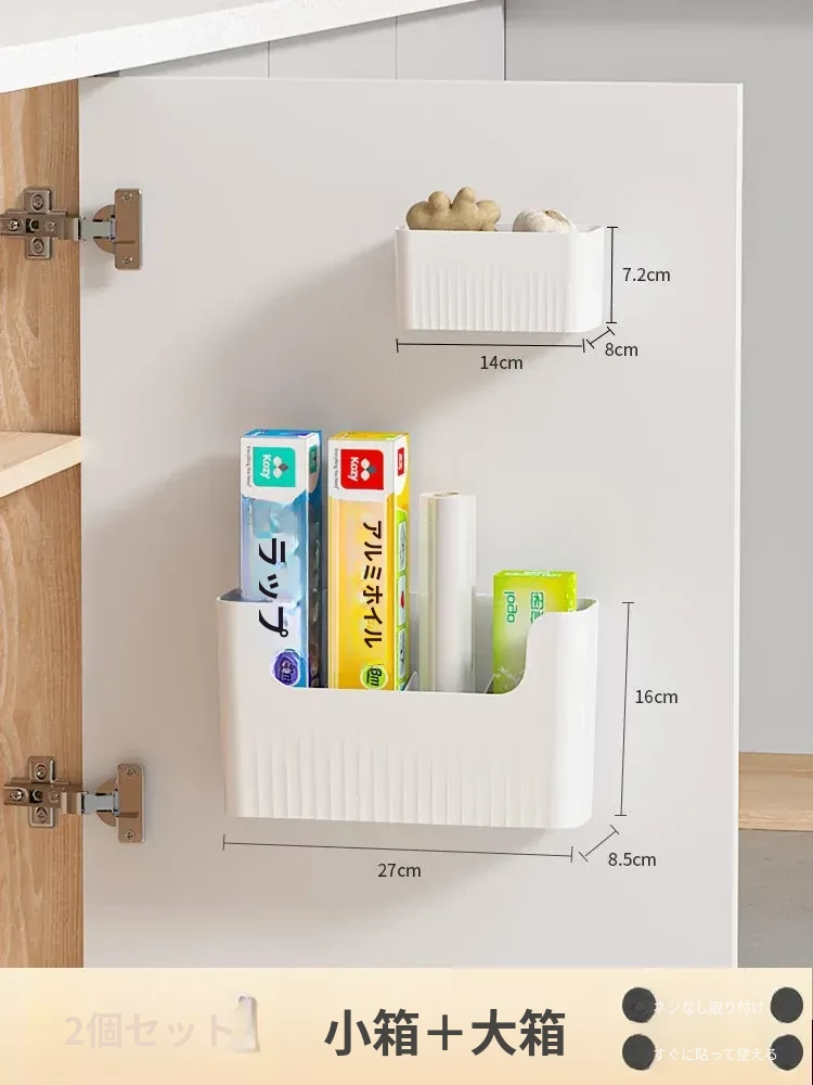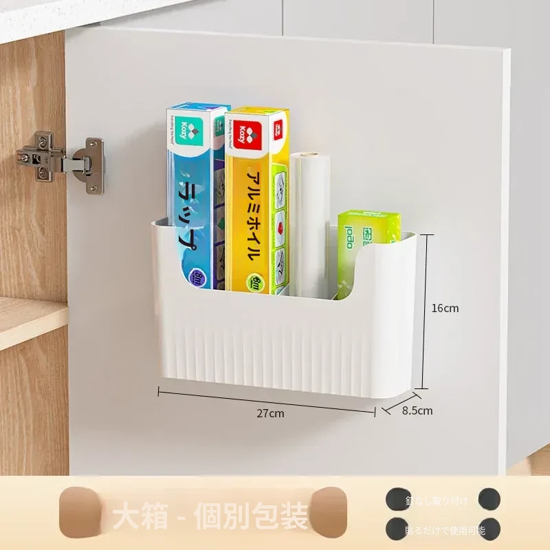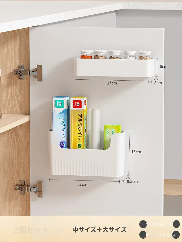 キッチン壁掛けキャビネットドア収納ラック - 穴を開けずに簡単取り付け!キャビネットドア内側のスペースを有効活用し、ラップや小物をスッキリ整理。あなたのキッチンをもっと便利に!