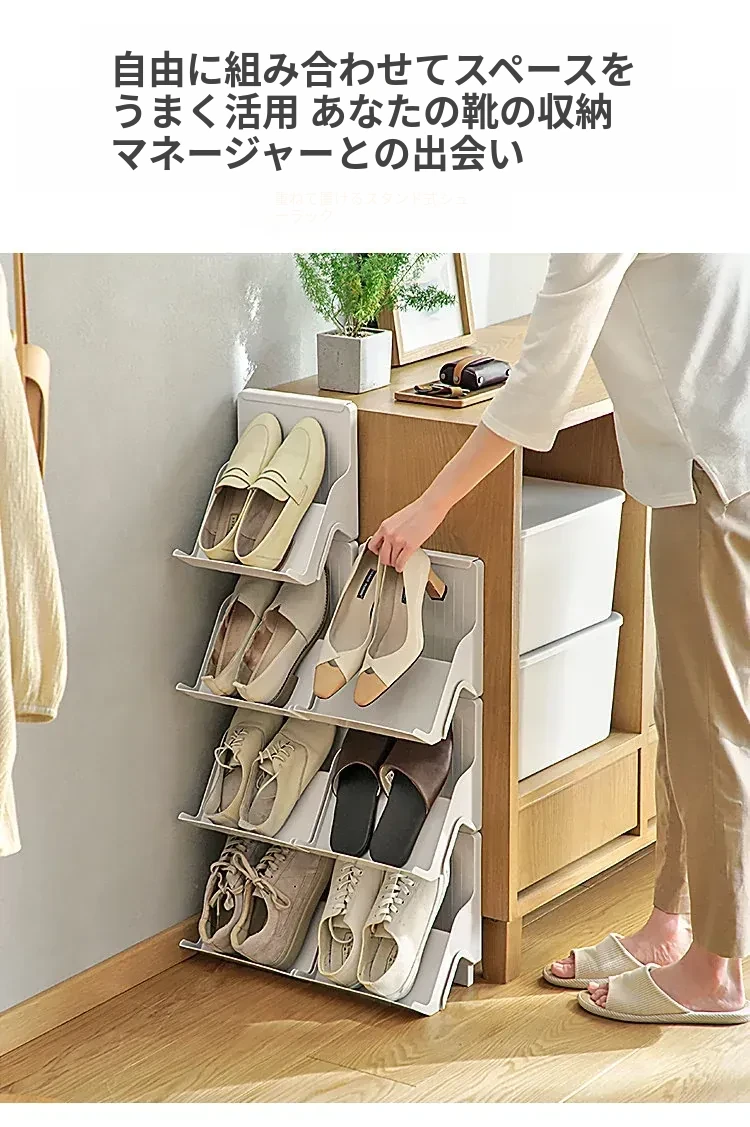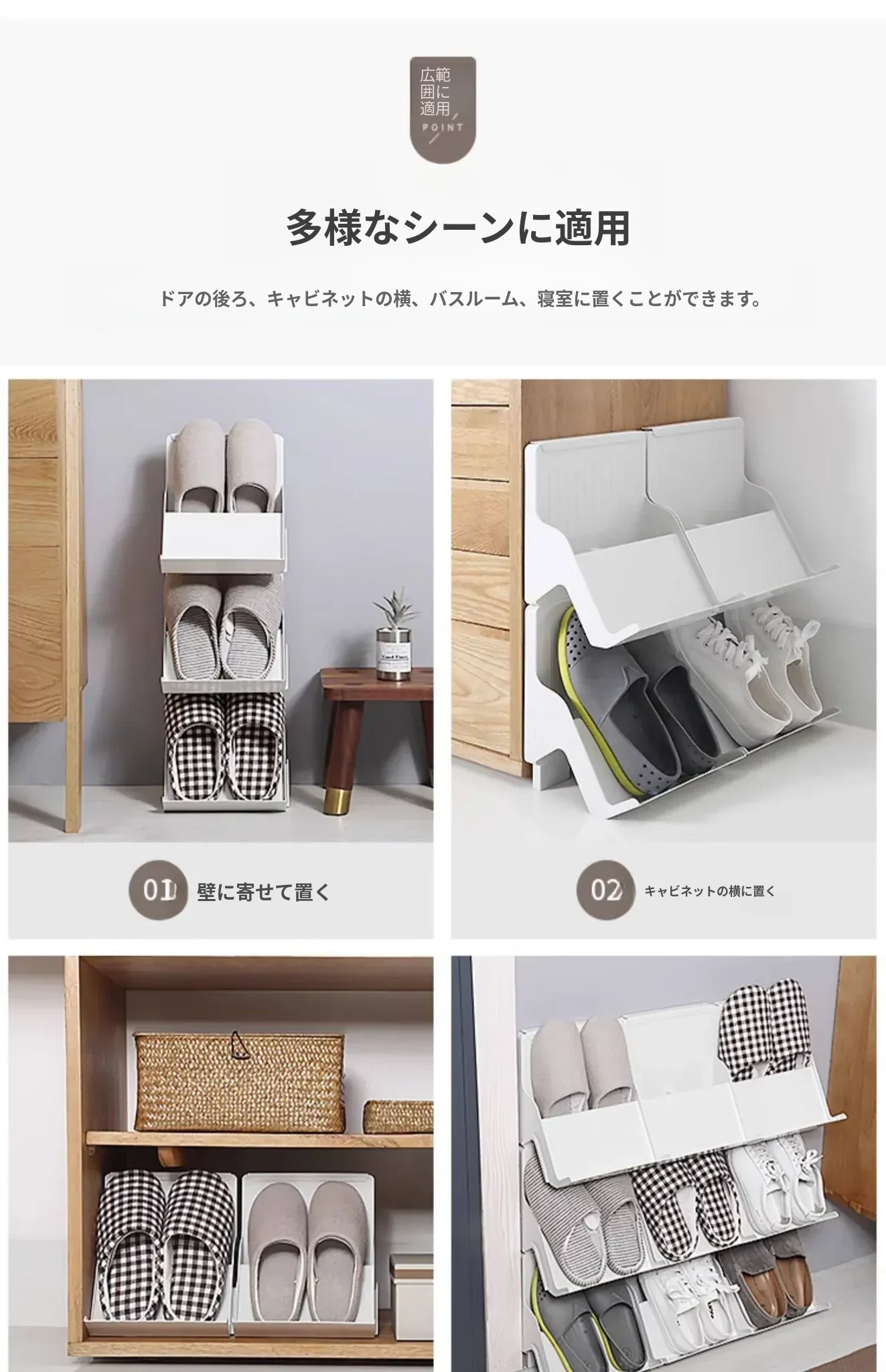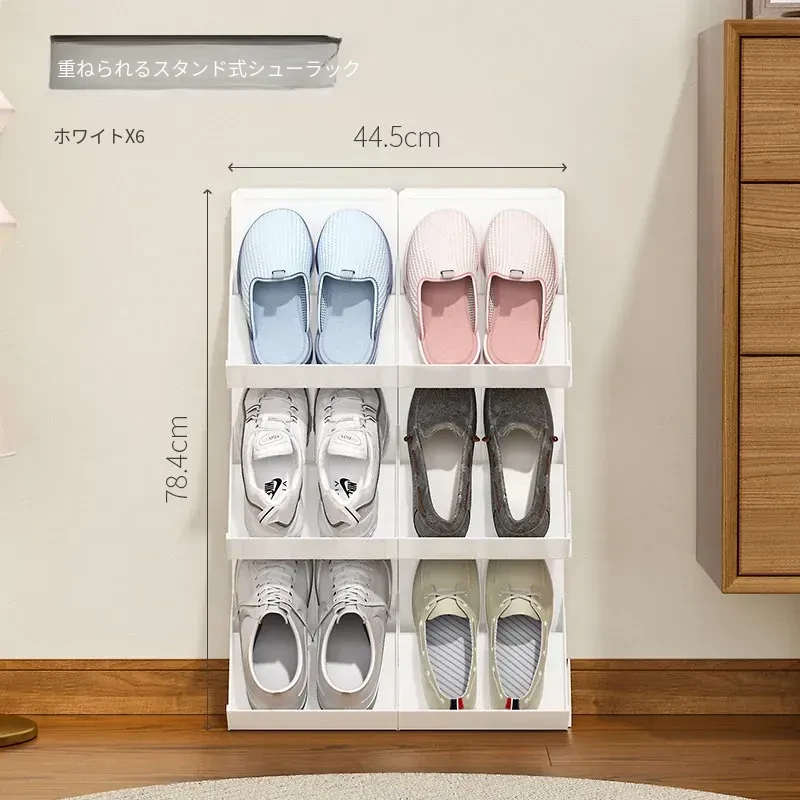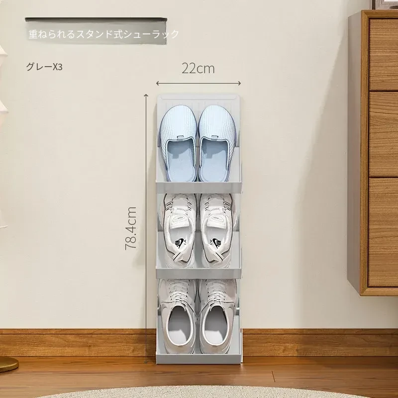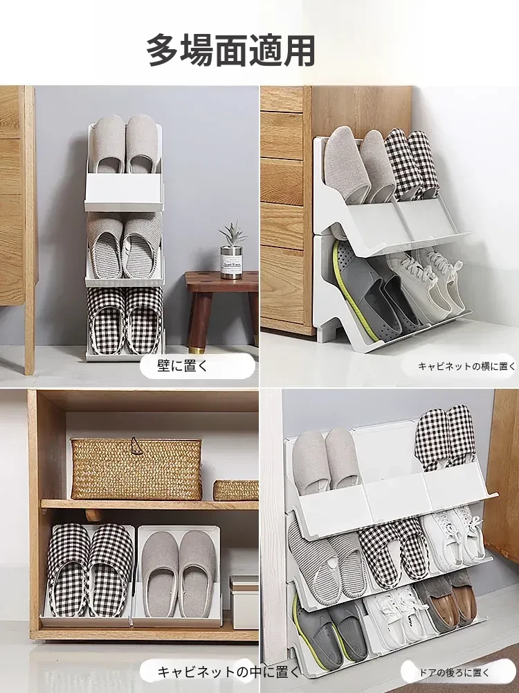 省スペース!多層重ね可能なプラスチック製シューズラック - 家庭用・玄関用・簡易型・寮や廊下に最適な収納ソリューション!