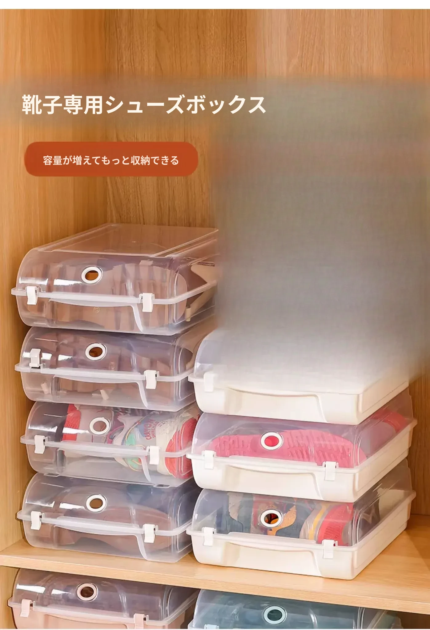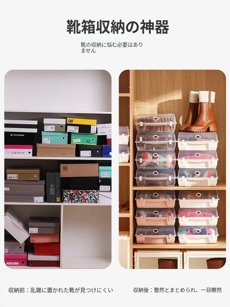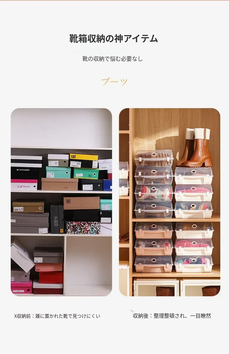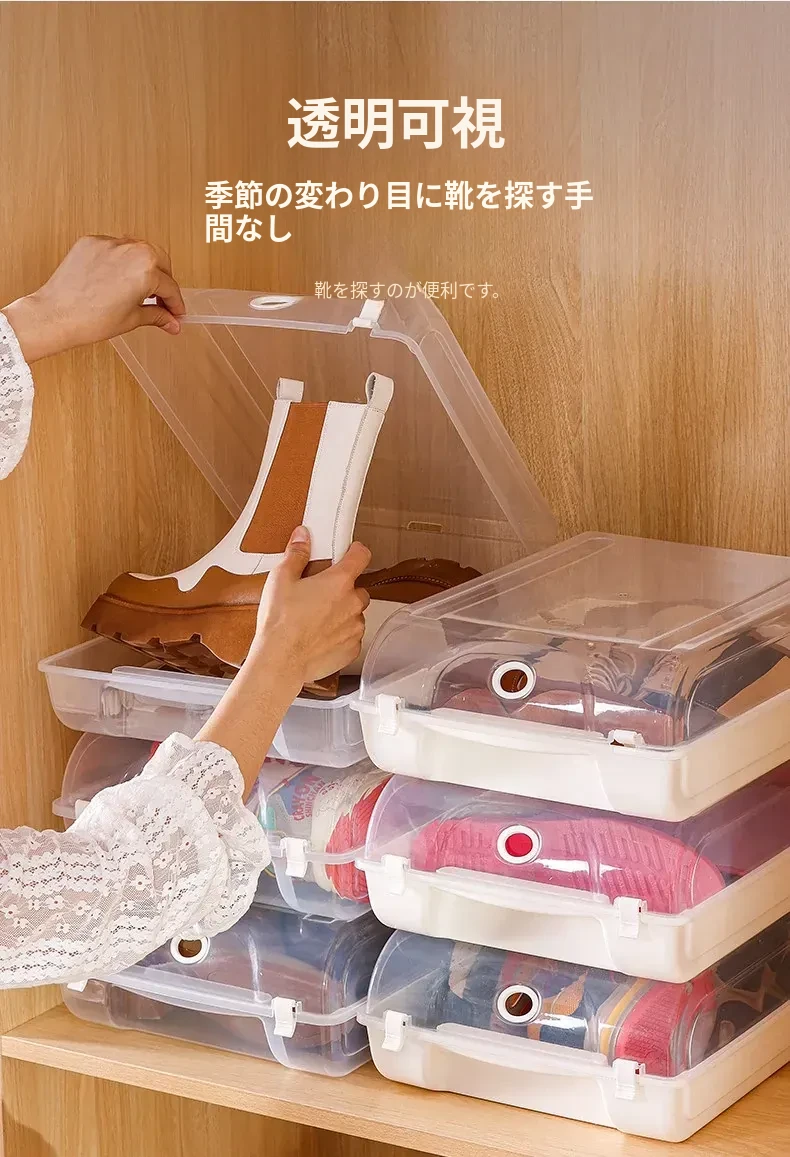 耐久性抜群!透明収納の宿舎用シューズボックス、厚手タイプでスペースを節約!大容量で個別収納可能な靴棚、整理整頓をサポートします。