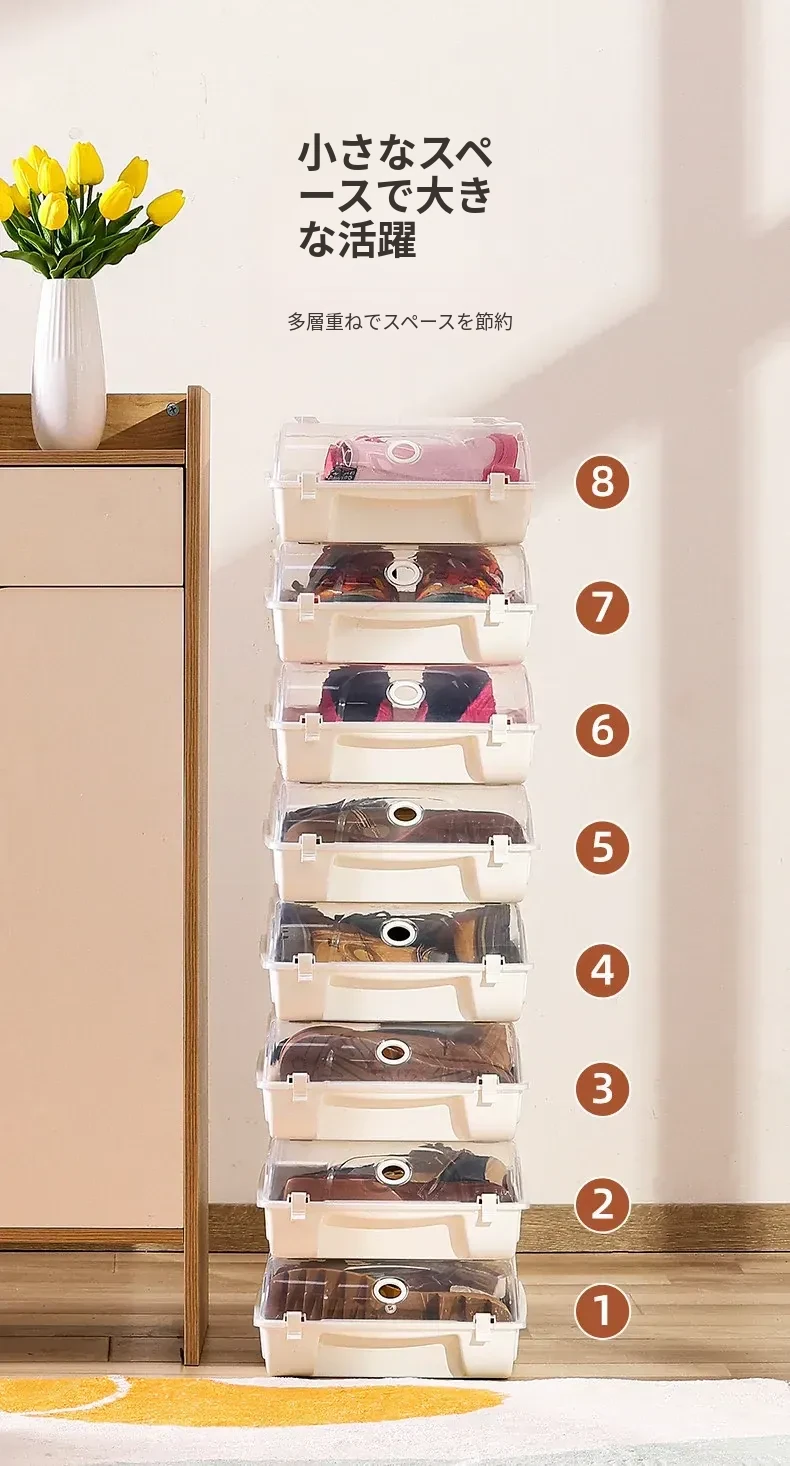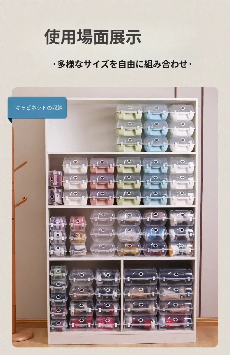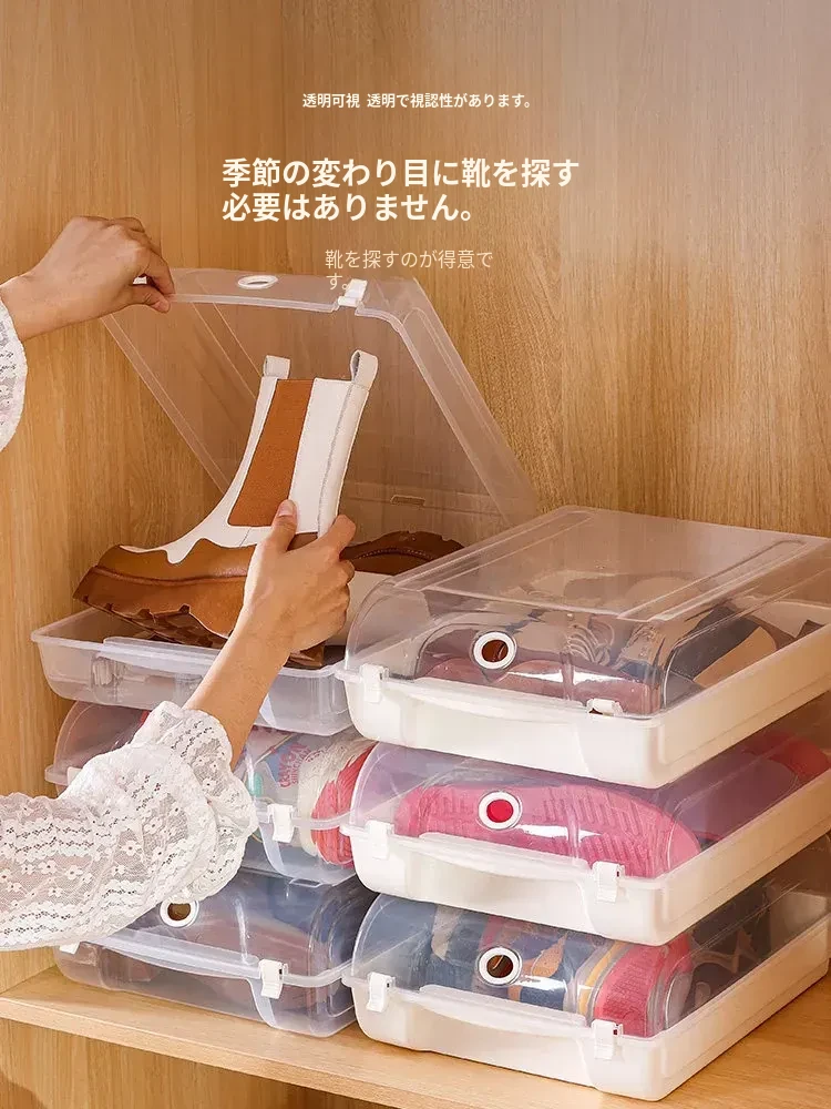 耐久性抜群!透明収納の宿舎用シューズボックス、厚手タイプでスペースを節約!大容量で個別収納可能な靴棚、整理整頓をサポートします。