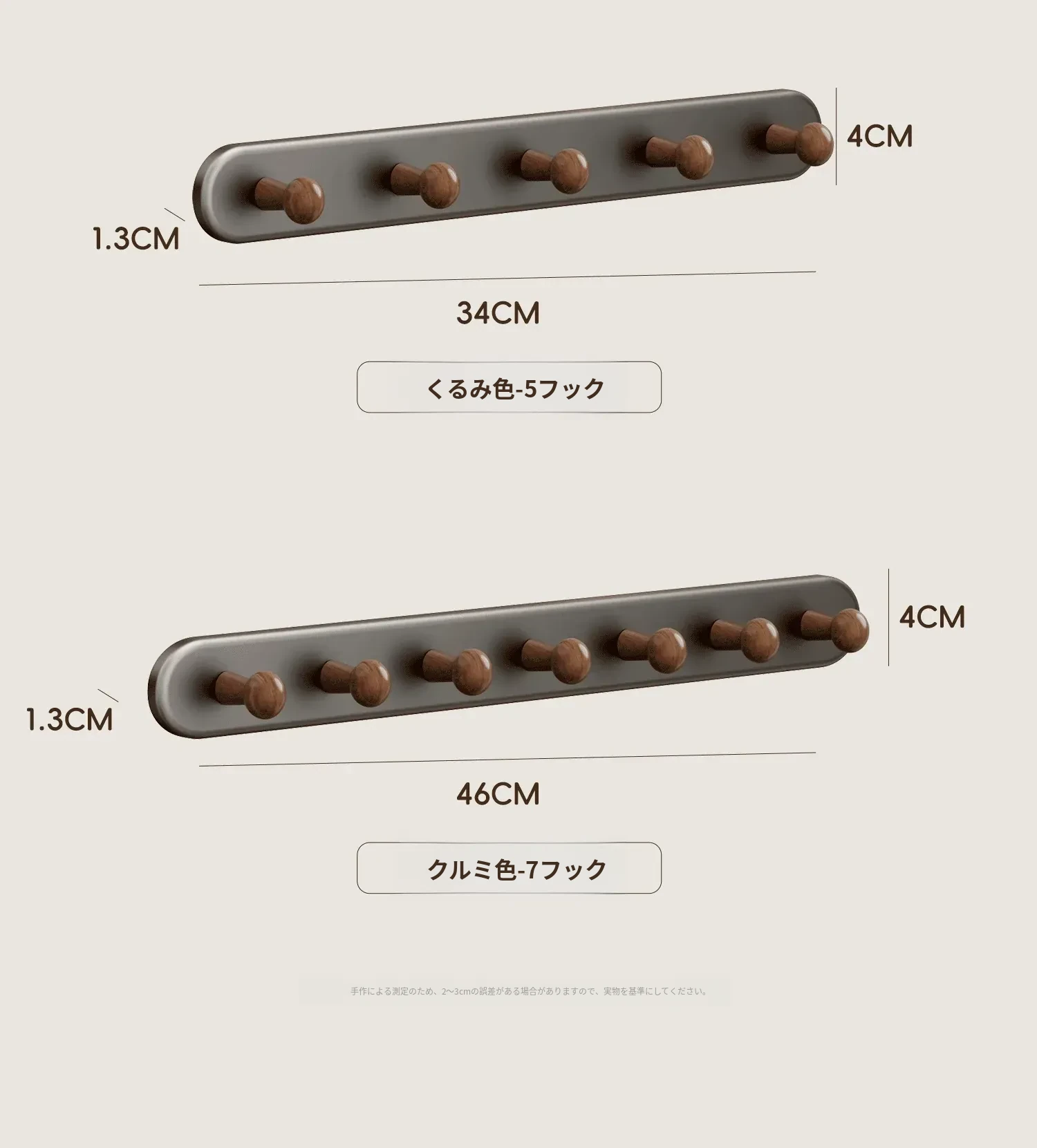 ウォールナット色-厚手7フック【穴あけ不要/ドアを傷めない】ホワイト落下プレゼント