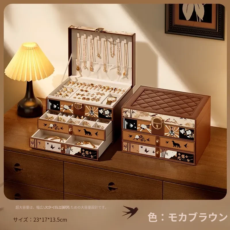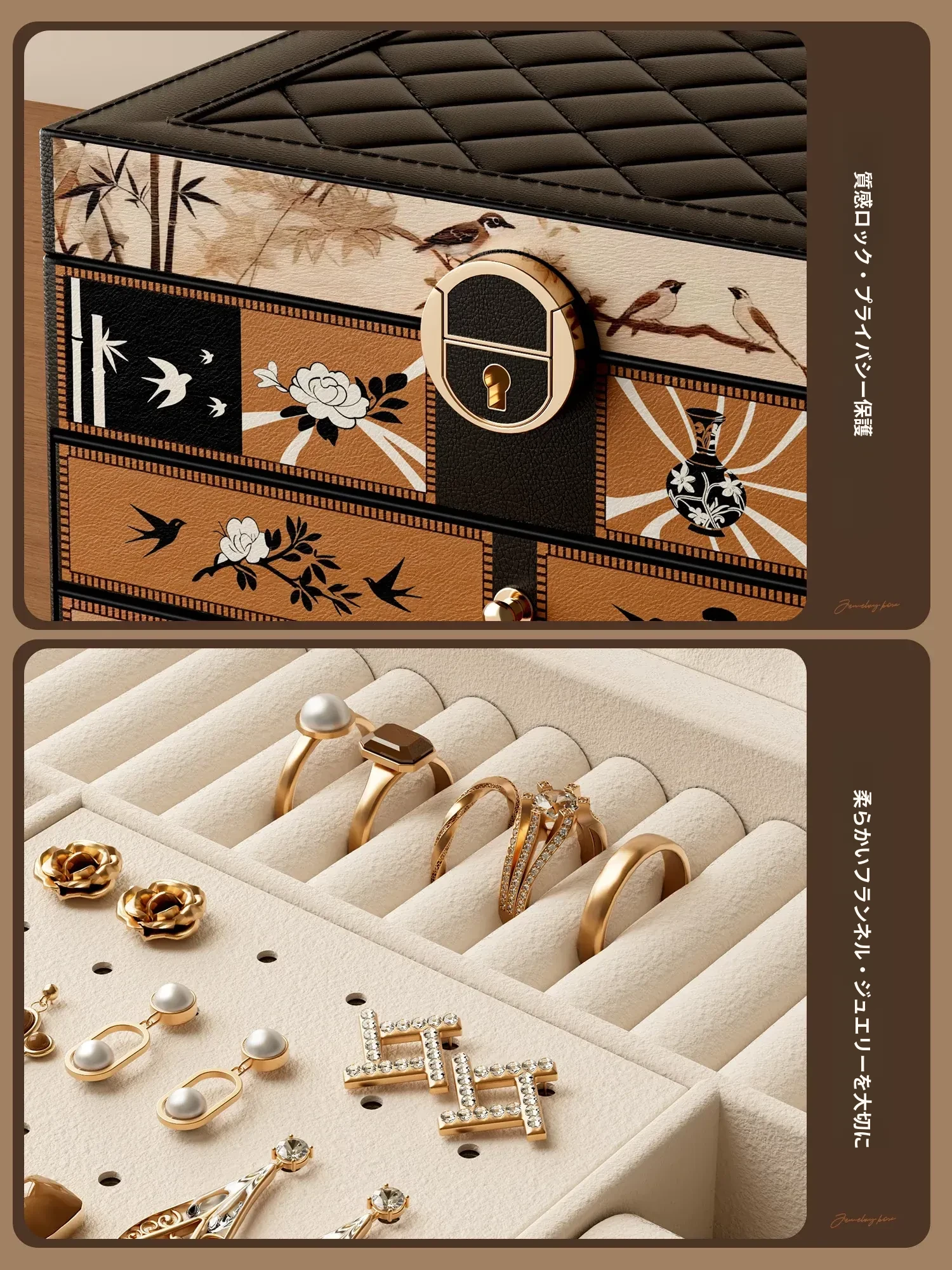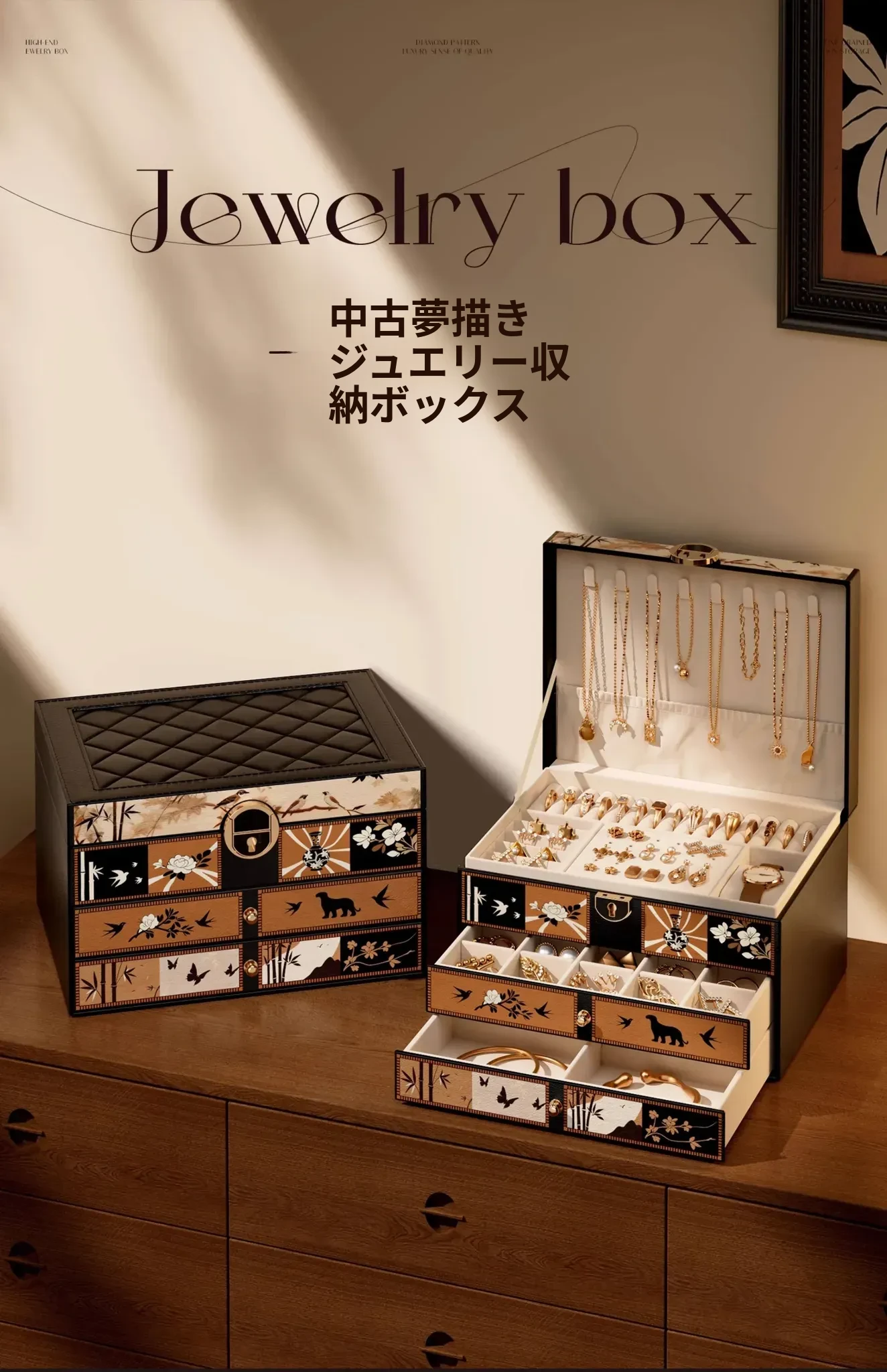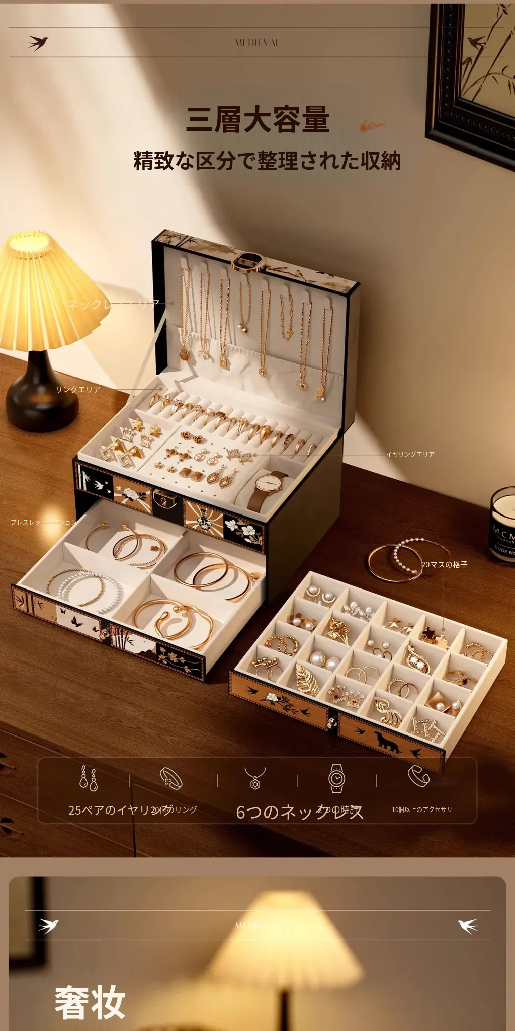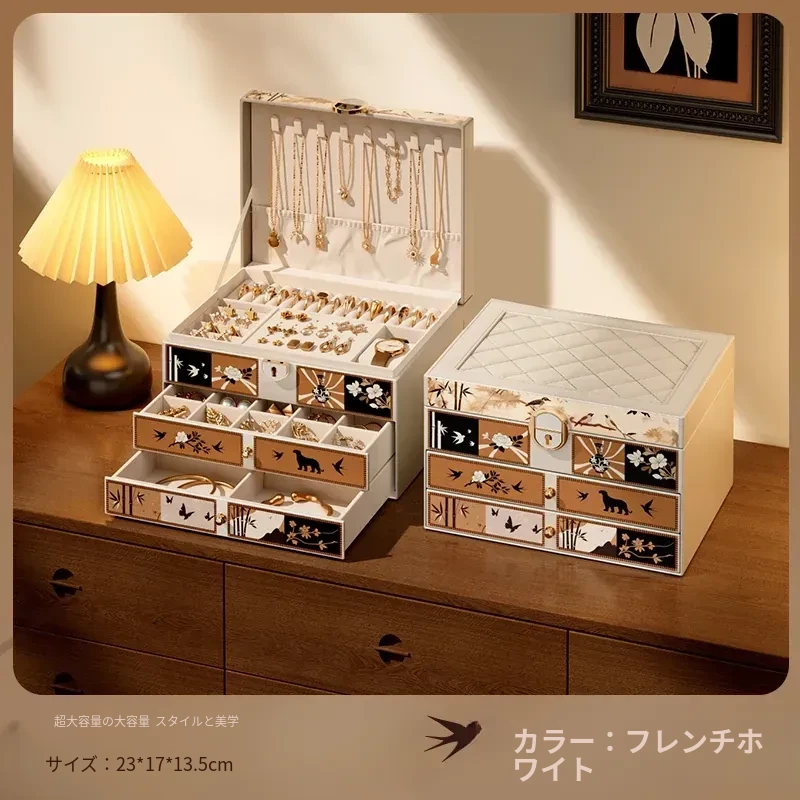 高級感溢れるジュエリーボックス!2025年新作の大容量ゴールドピアス&ネックレス収納ケース。防酸化設計で大切なアクセサリーをしっかり守ります。洗練されたデザインで、あなたの宝物を美しく収納!