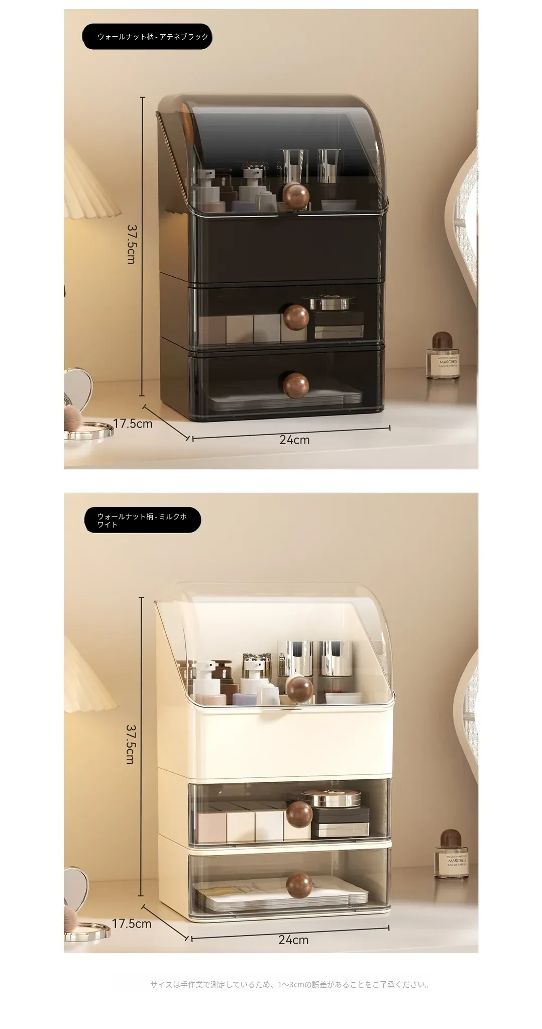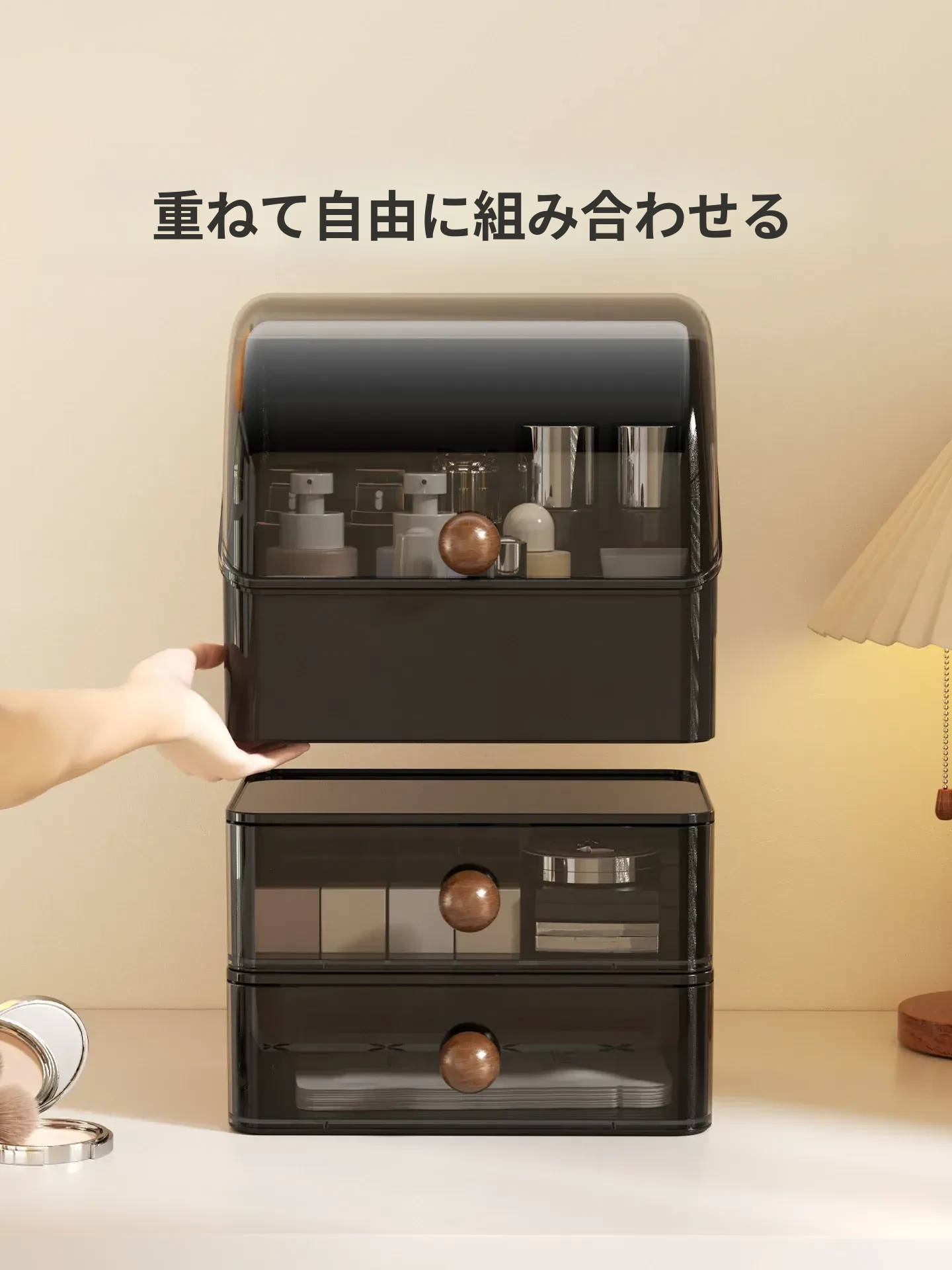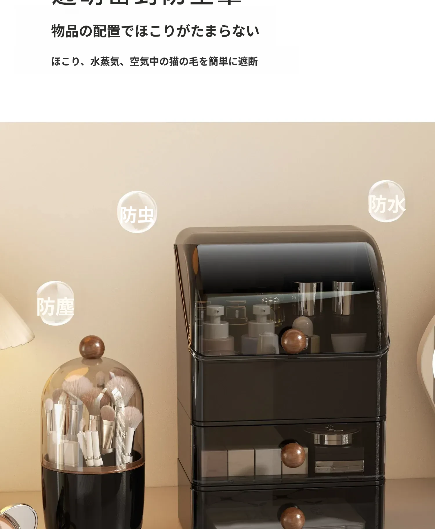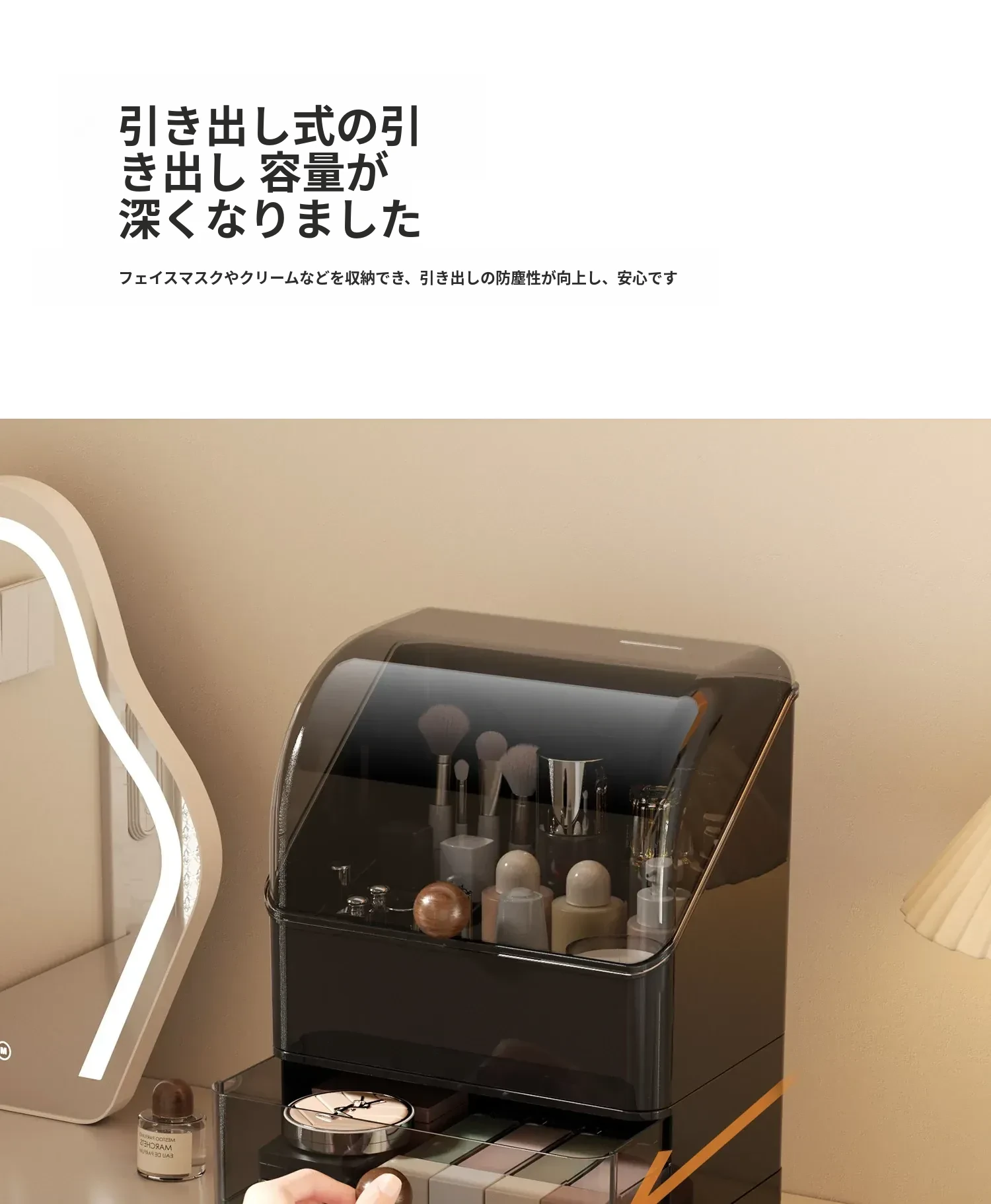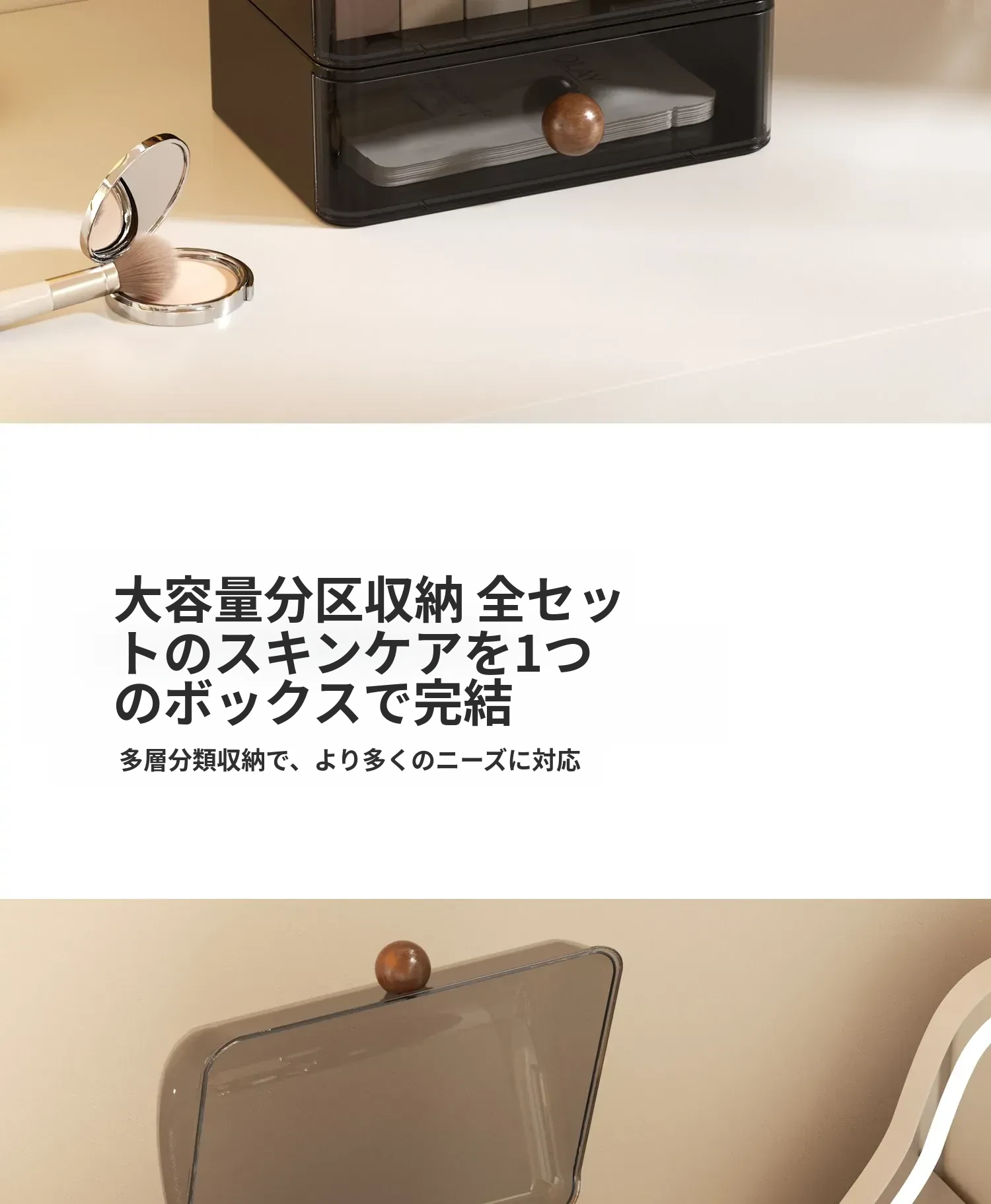 高級感あふれる大容量の化粧品収納ボックス!防塵デザインで、整理整頓も簡単。分格抽斗式で、スキンケアアイテムもすっきり収納。あなたのビューティースペースを格上げするアイテムです!
