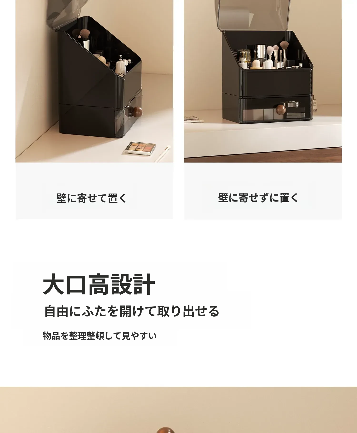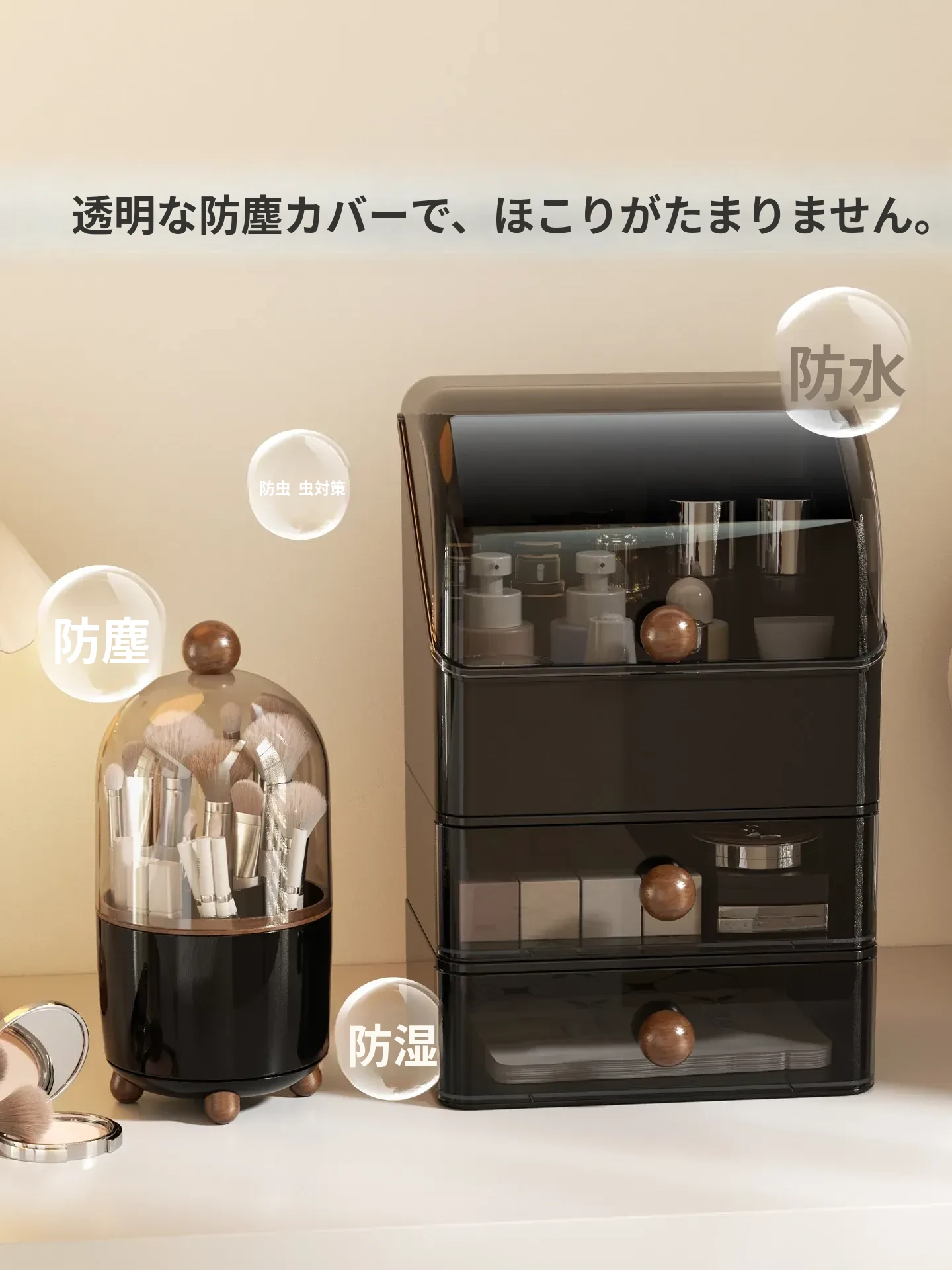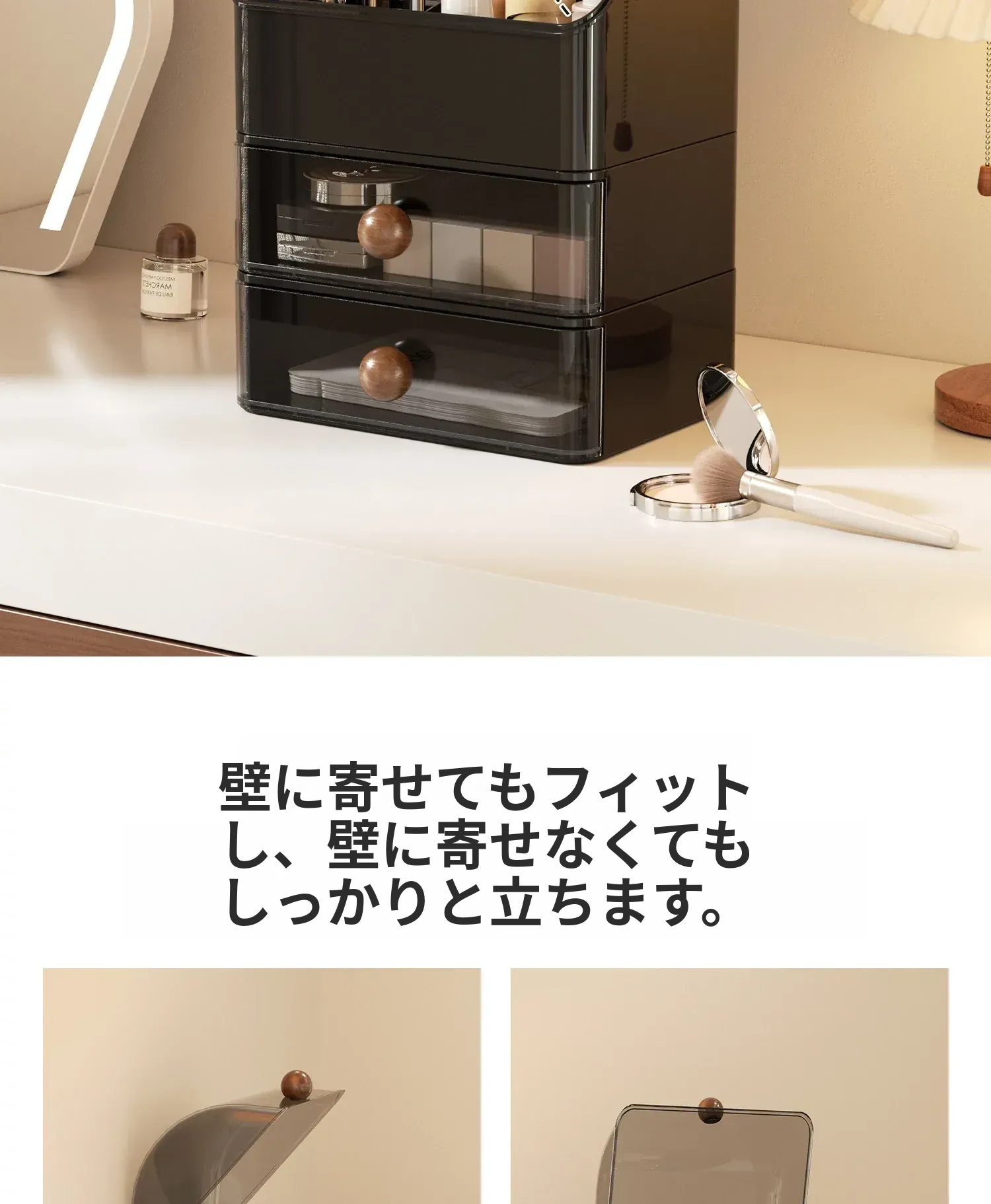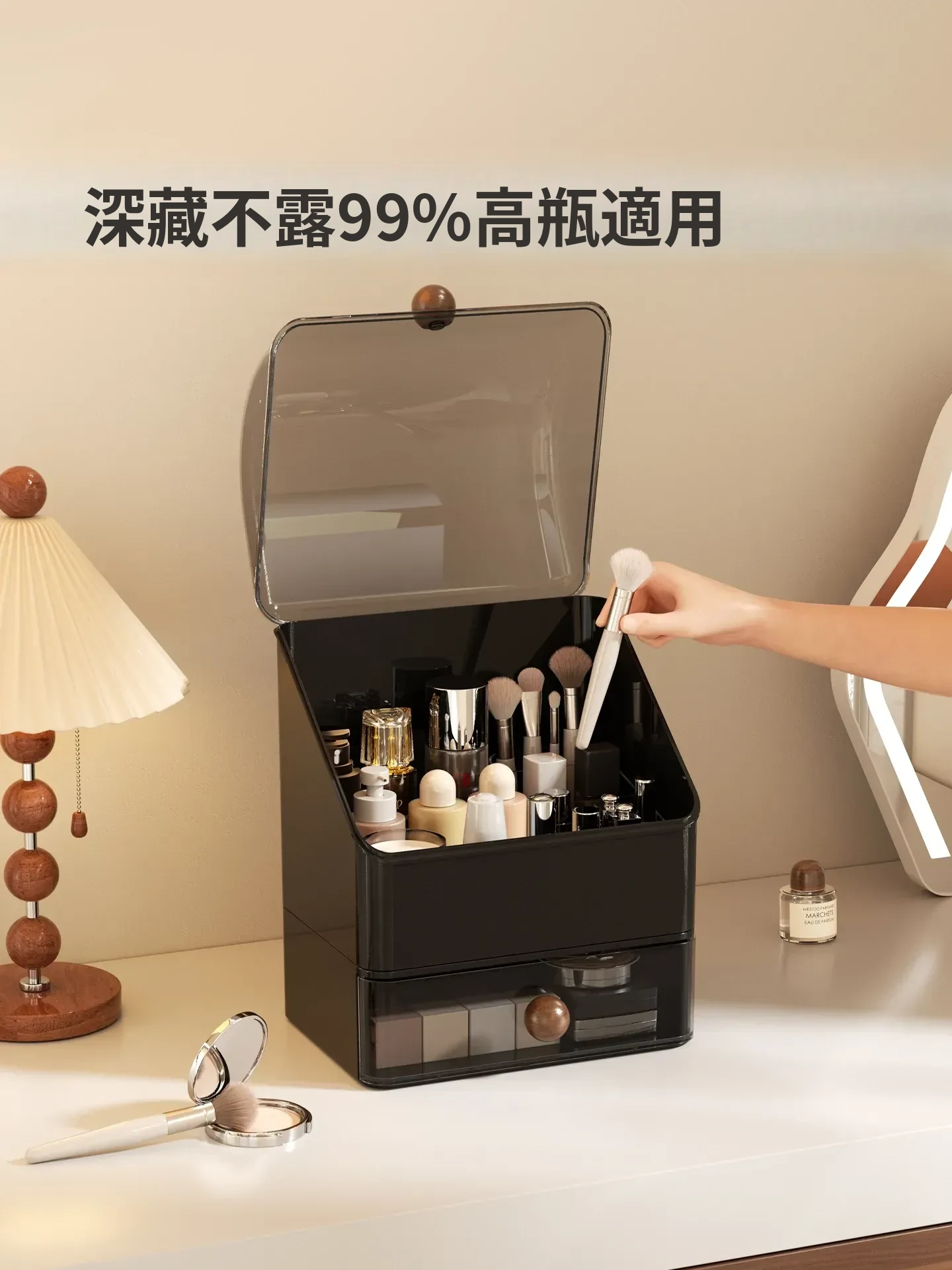 高級感あふれる大容量の化粧品収納ボックス!防塵デザインで、整理整頓も簡単。分格抽斗式で、スキンケアアイテムもすっきり収納。あなたのビューティースペースを格上げするアイテムです!