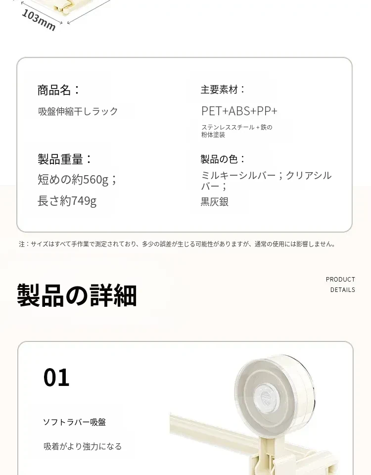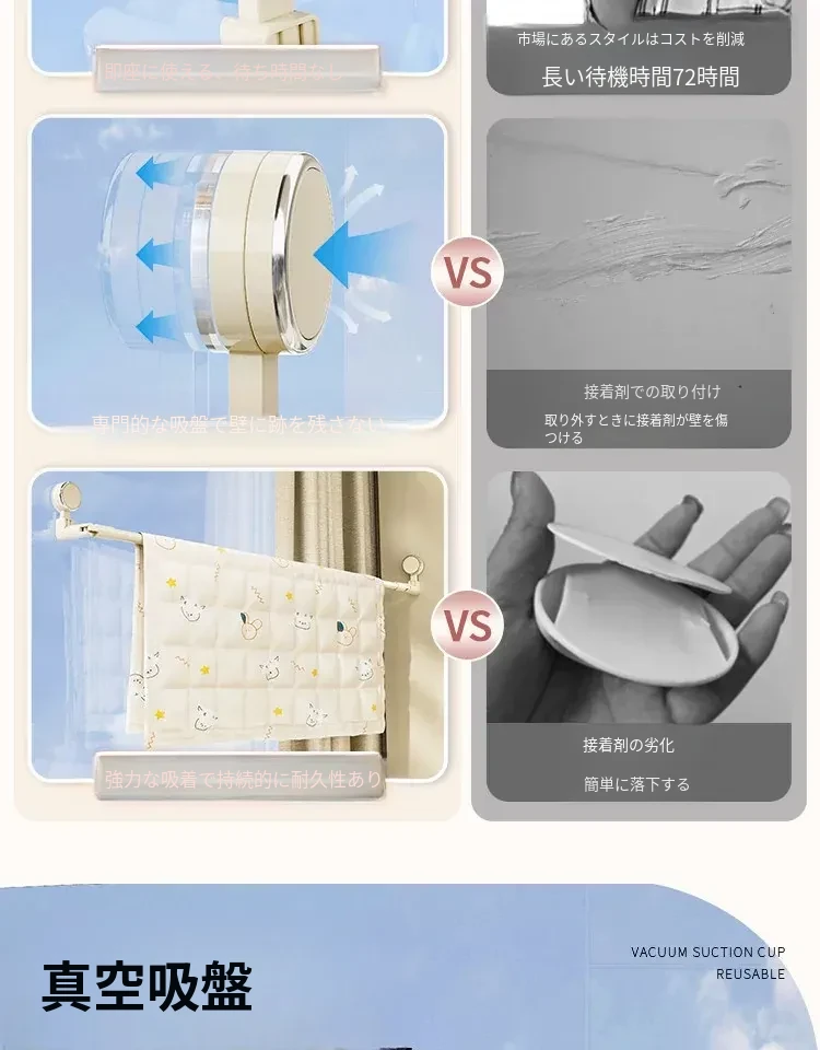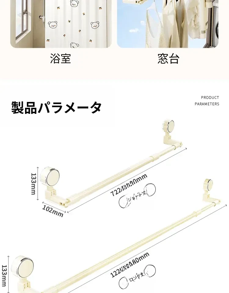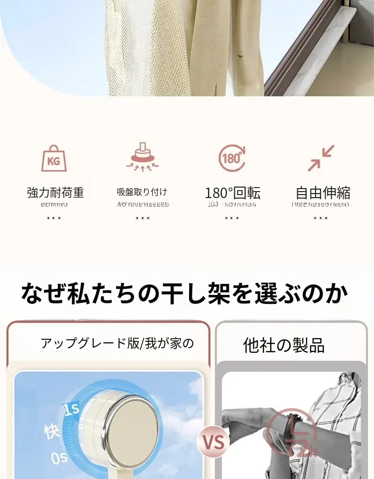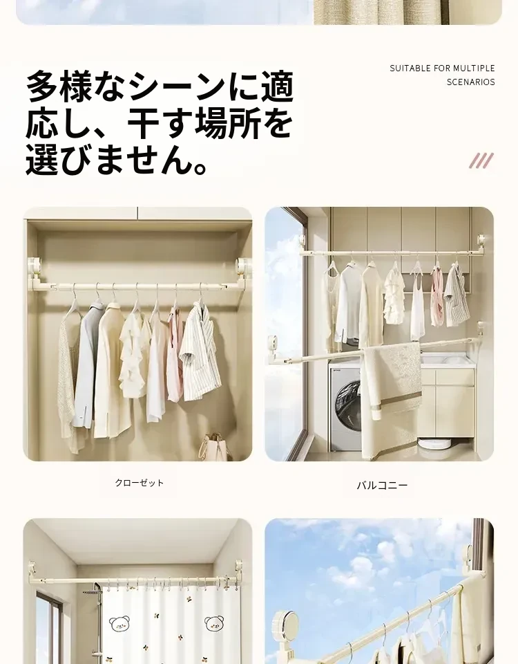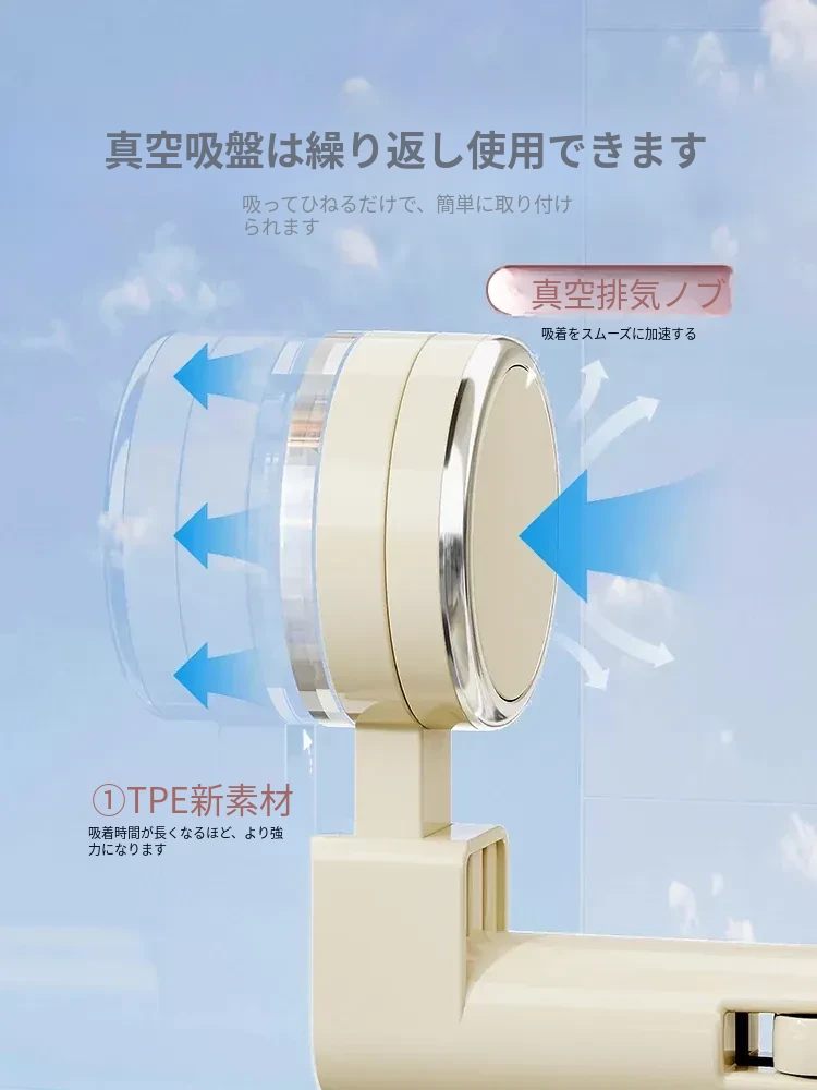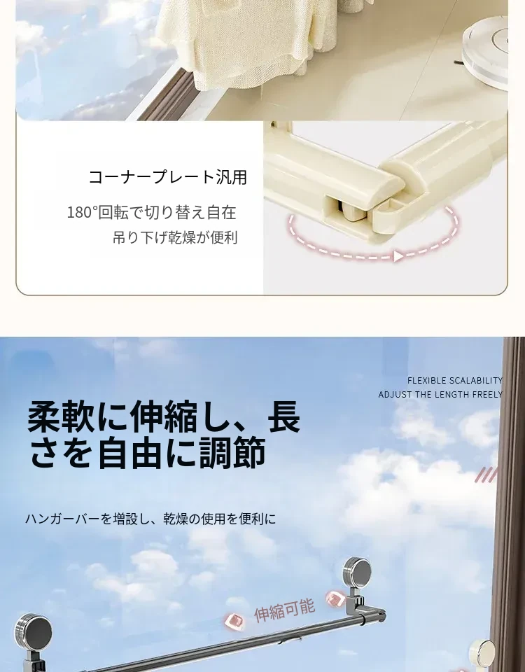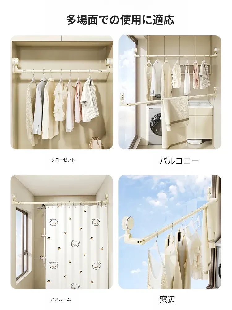 吸盤式回転衣類干しラック - 壁に穴を開けずに簡単取り付け!家庭用、無痕で窓やバルコニーに最適。伸縮可能でスペースを有効活用!あなたの生活をもっと便利にする必需品!
