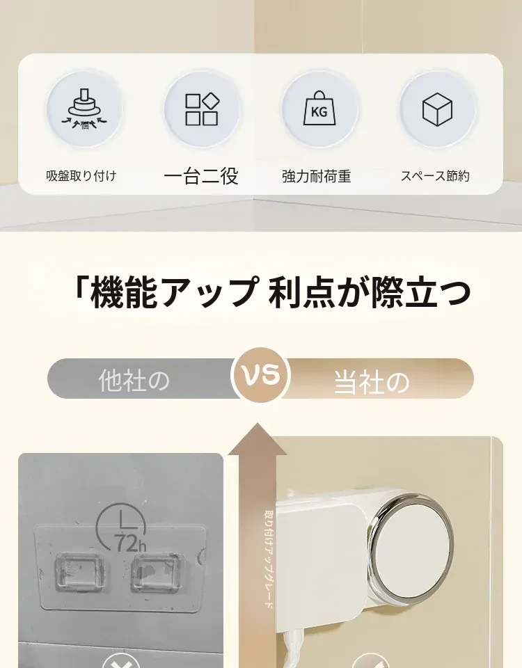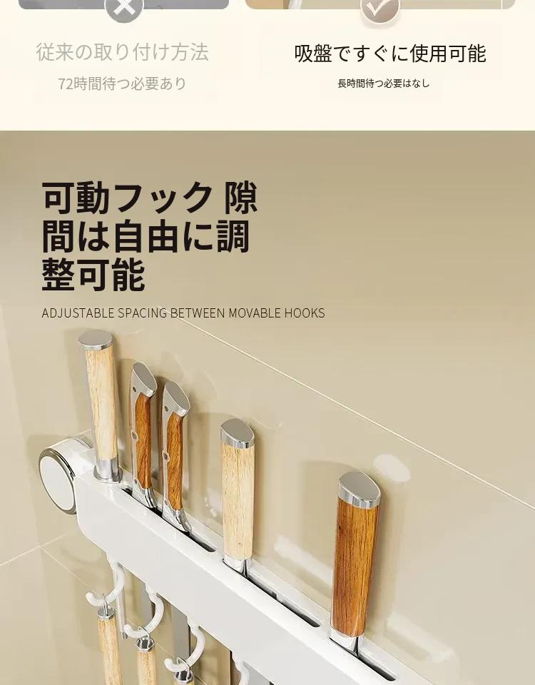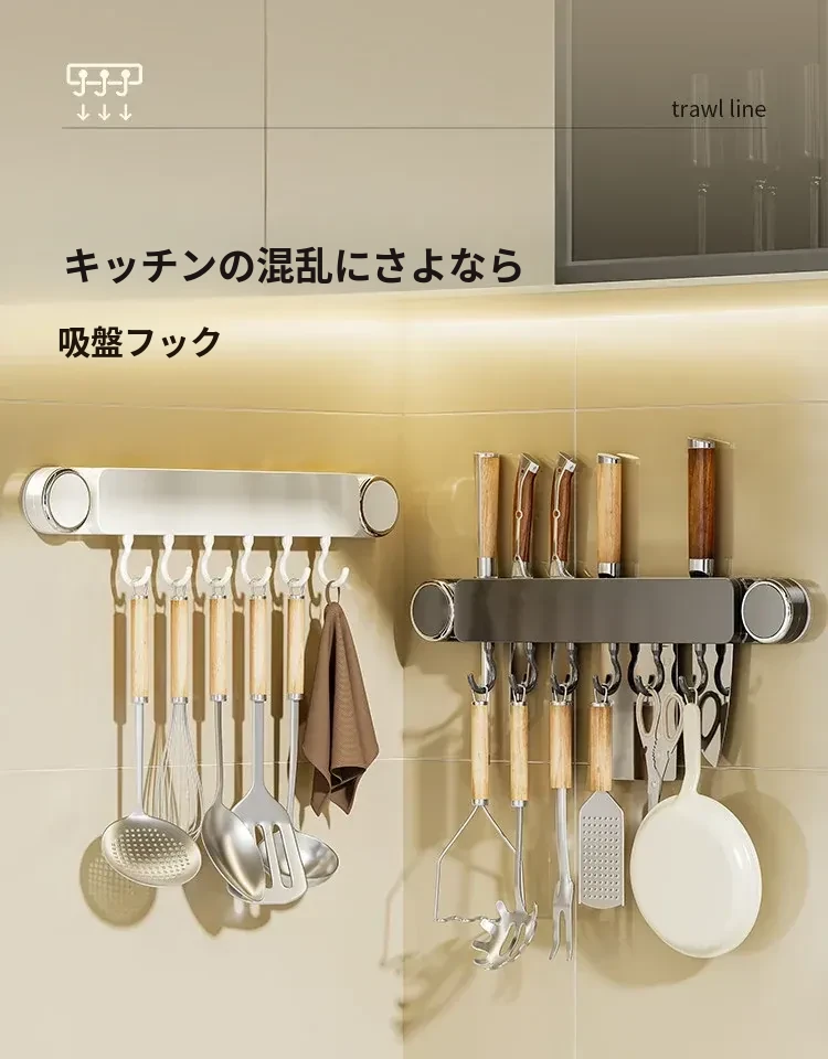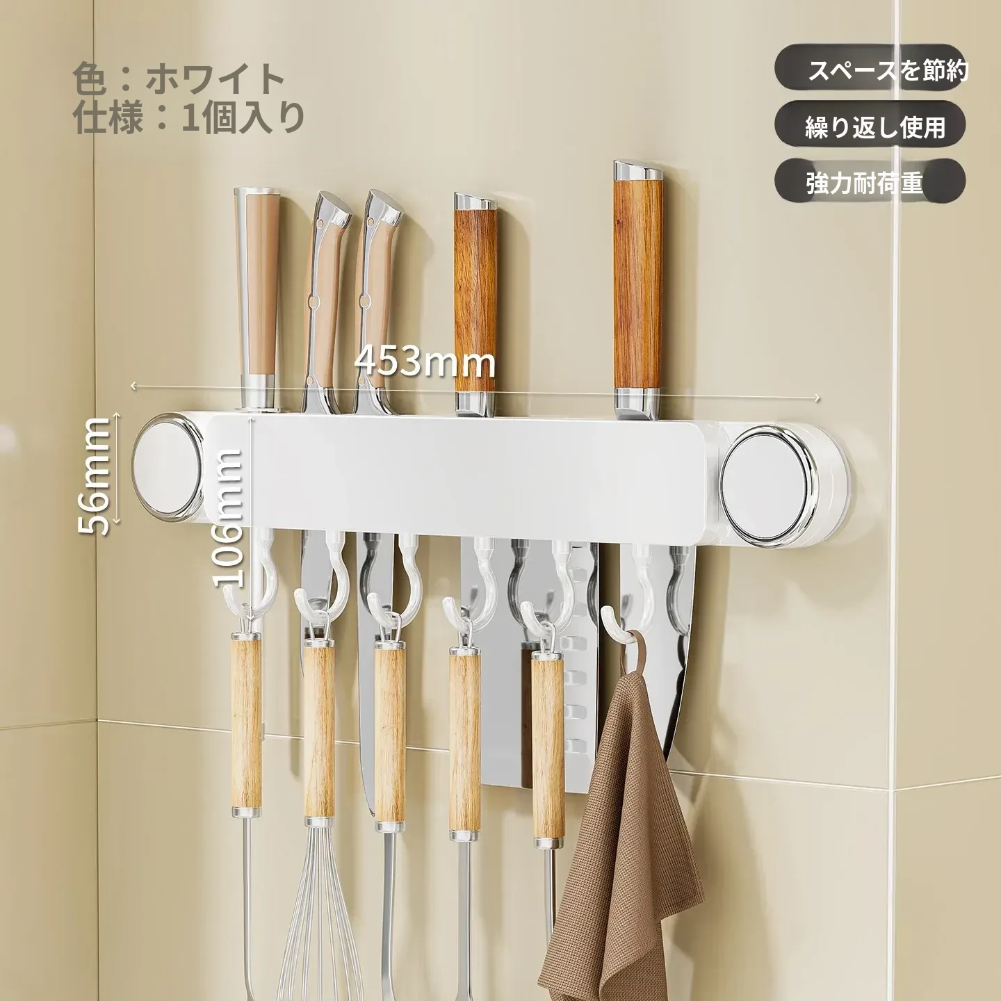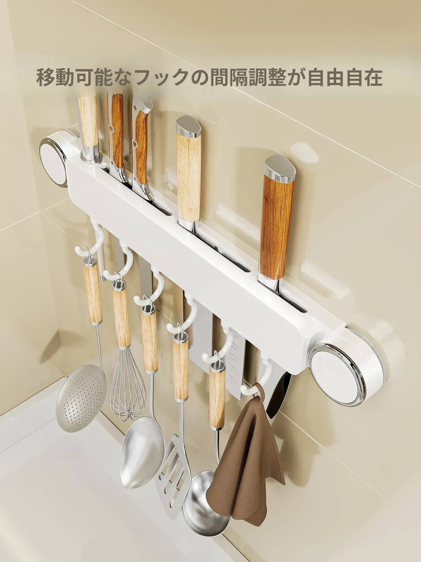 穴あけ不要!強力吸着キッチンフック - 多機能収納ハンガーでスプーンやヘラをスッキリ整理!便利でおしゃれなキッチンの必需品!