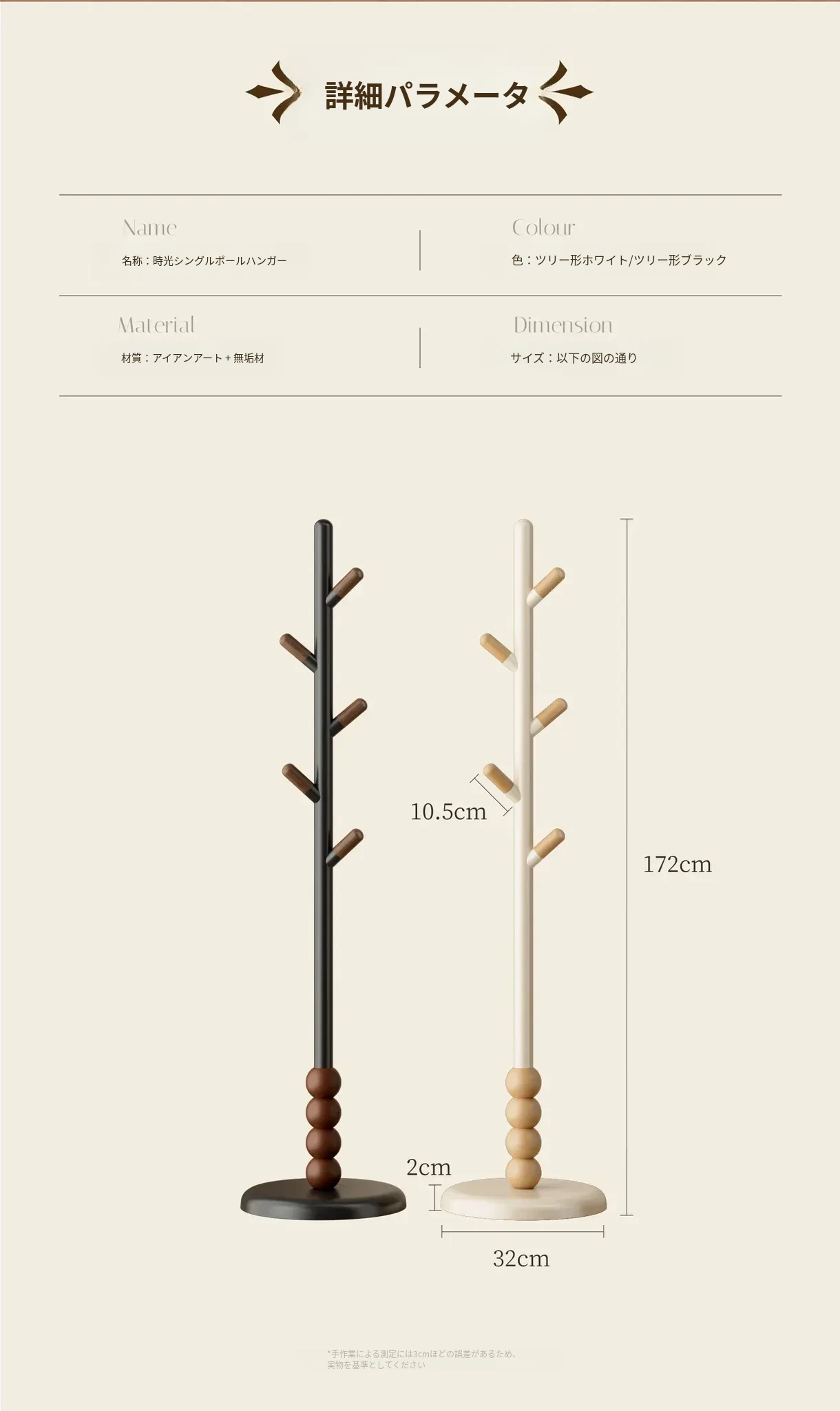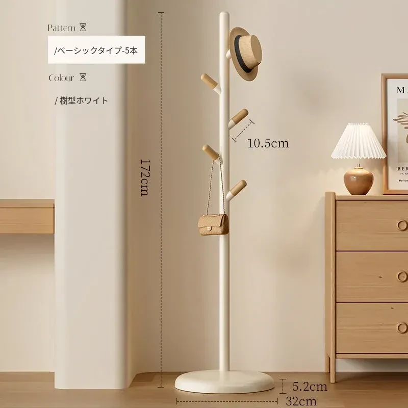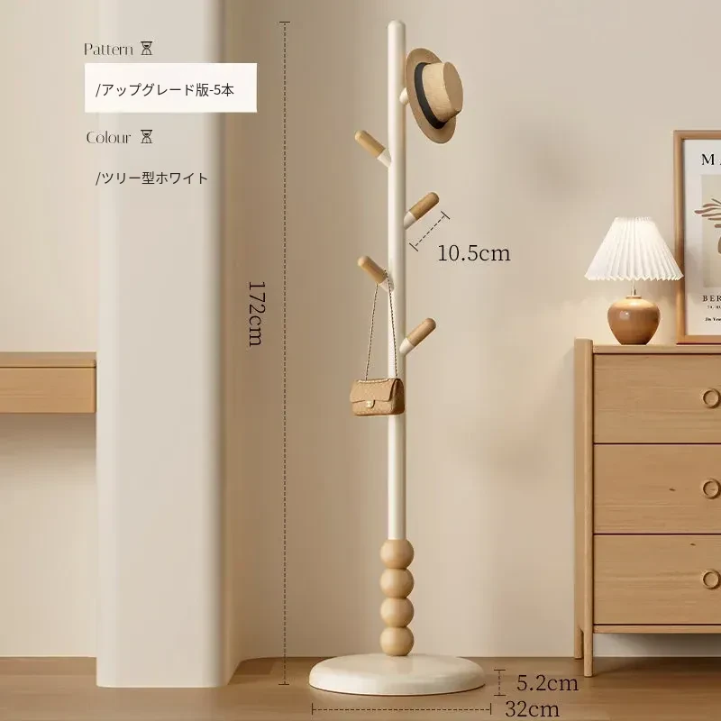 原木ホワイト-アップグレード5フック【安定した耐荷重】